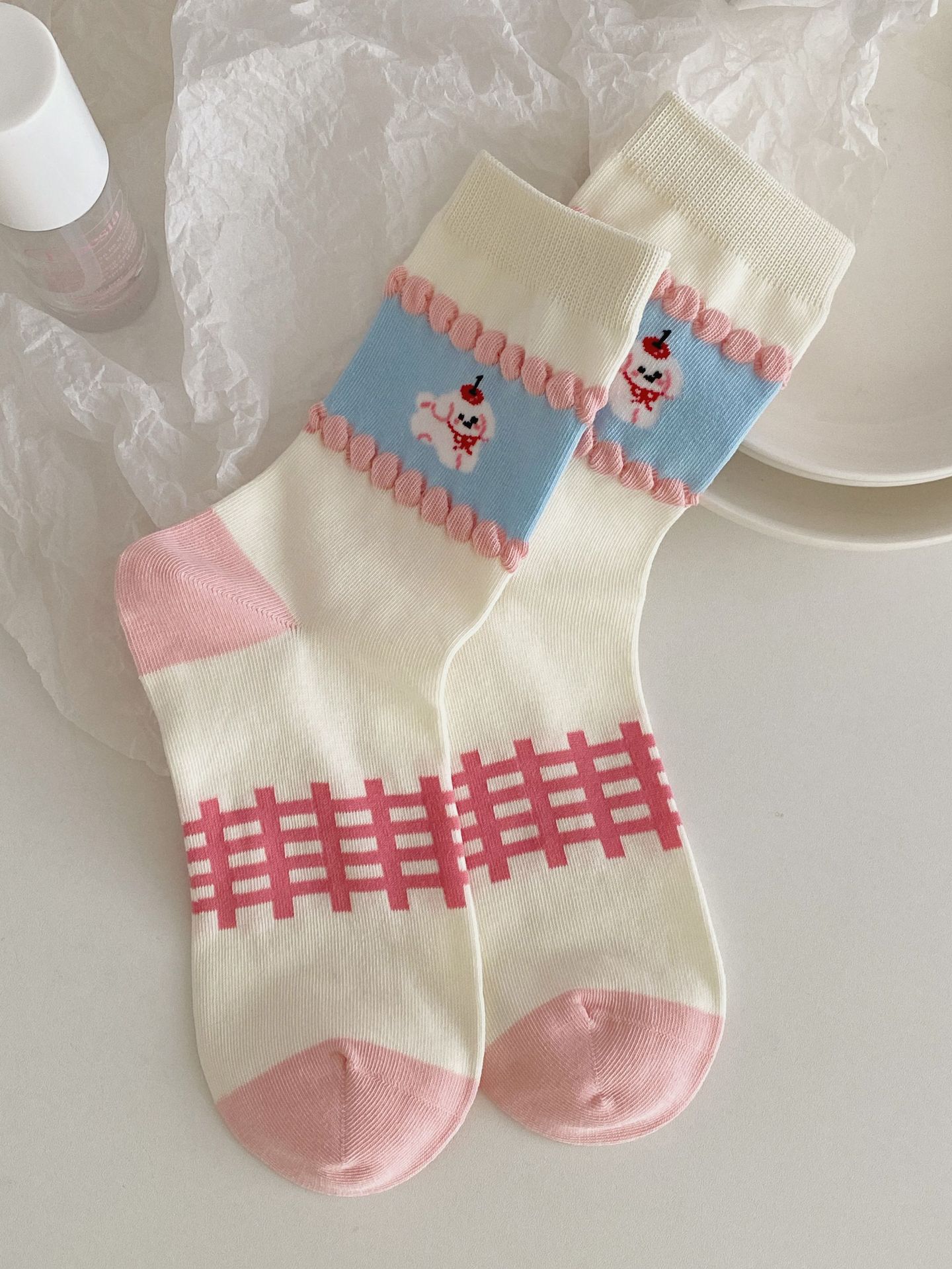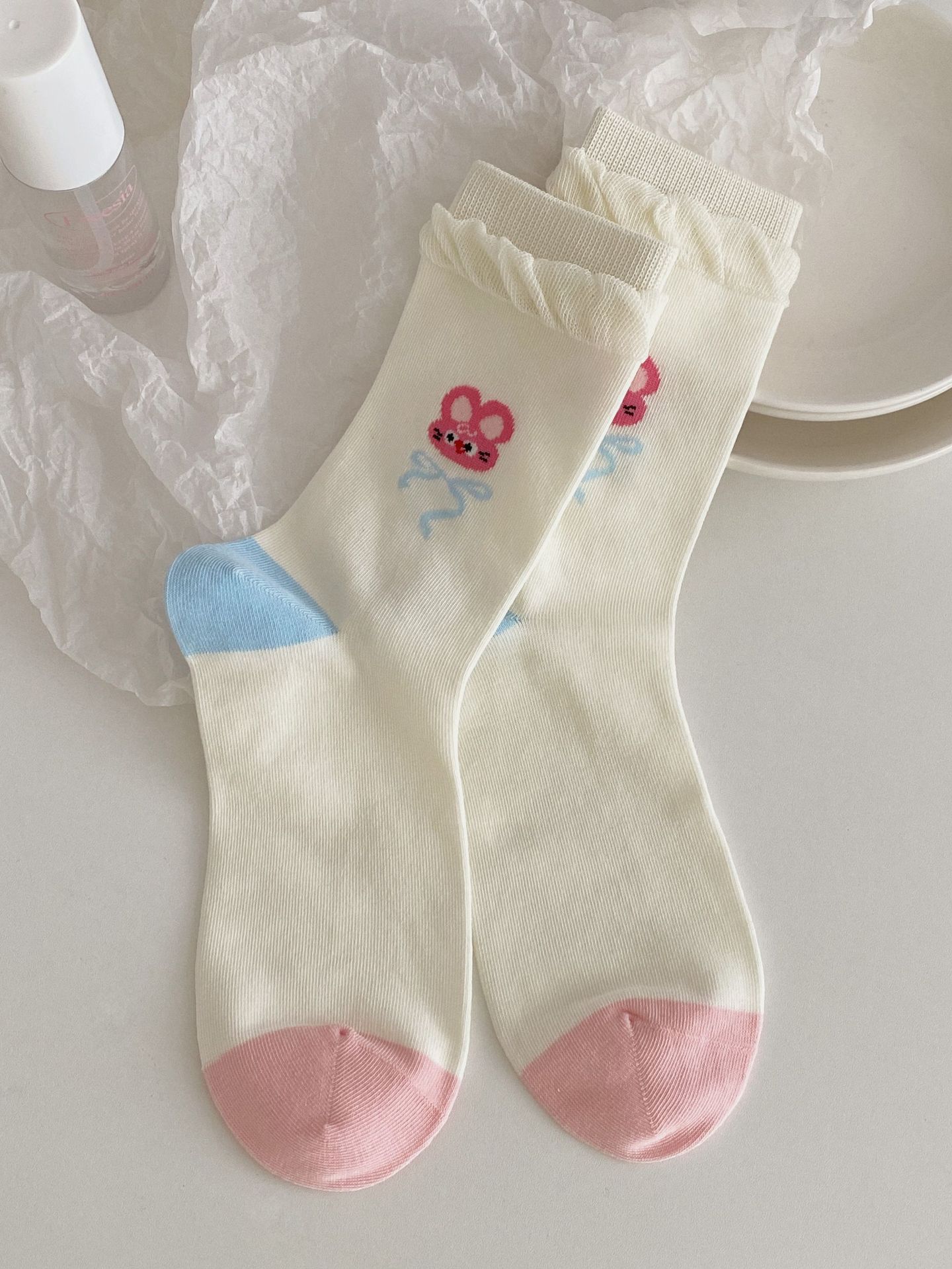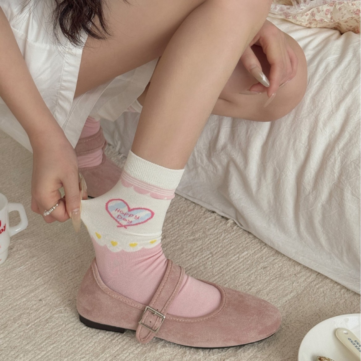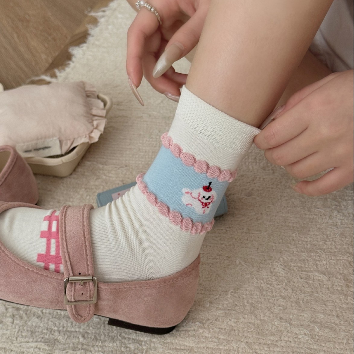 핑크 Bowknot 양말 여성용 뼈없는 미드 튜브 양말 Ins 유행 일본 스타일 귀여운 강아지 학생 사랑 소녀 양말