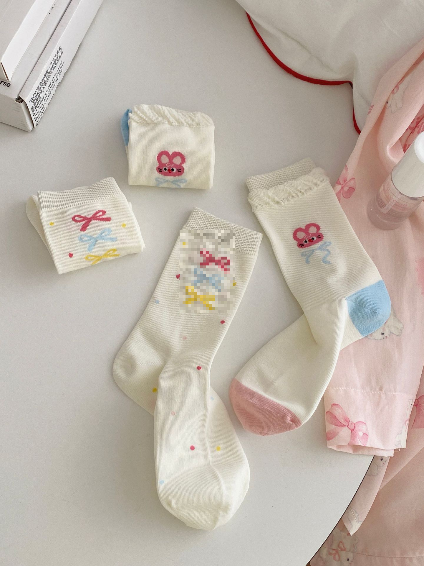 핑크 Bowknot 양말 여성용 뼈없는 미드 튜브 양말 Ins 유행 일본 스타일 귀여운 강아지 학생 사랑 소녀 양말스토어 가기