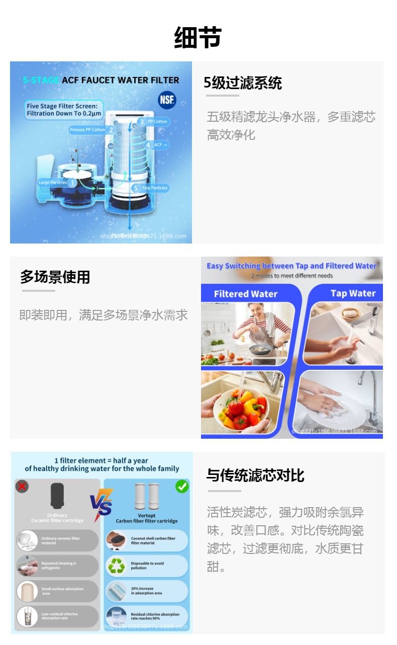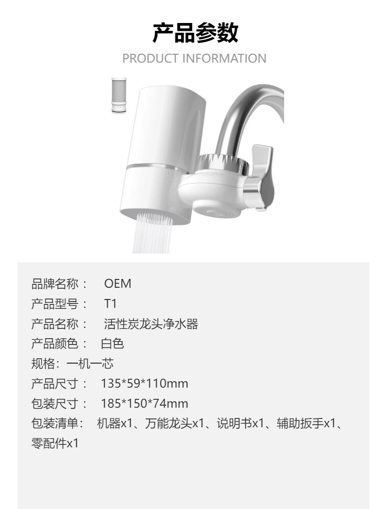 고효율 활성탄 수도꼭지 필터 정수기 식품 등급 ABS 안전 소재 범용 커넥터 교체 가능한 필터 요소