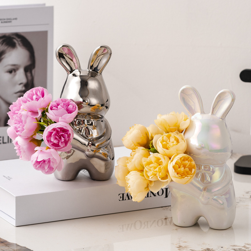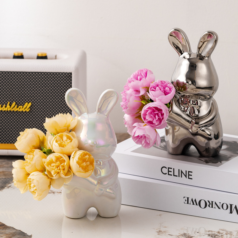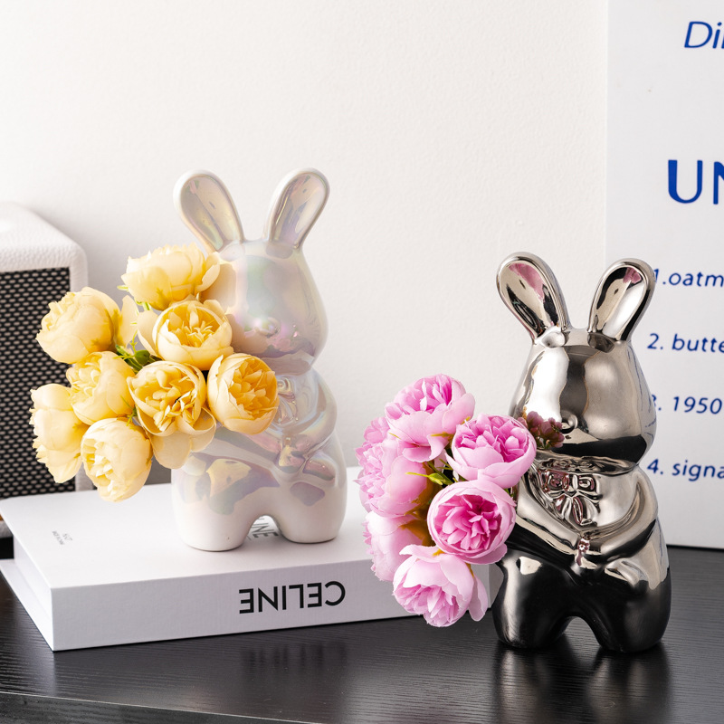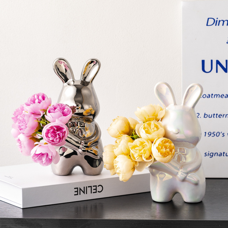 크리에이티브 아트 핸드 헬드 래빗 꽃병 감각 꽃병 장식품 거실 꽃 배열 데스크탑 장식 집들이 선물