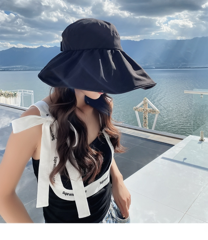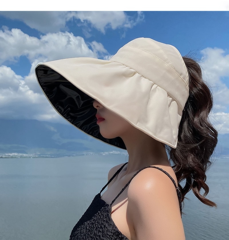 여름 반 빈 탑 선 스크린 모자 여성 더블 레이어 어부 블랙 접착제 코팅 야외 안티-UV 접이식 햇빛 모자
