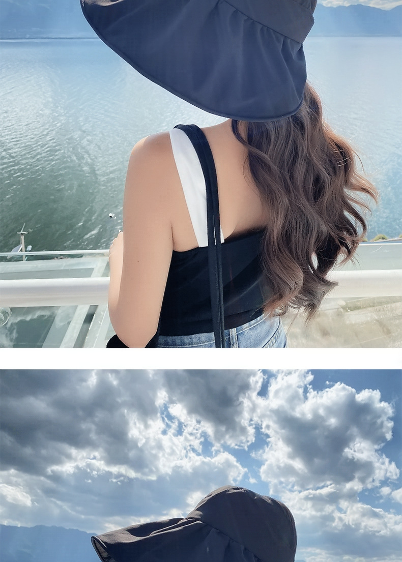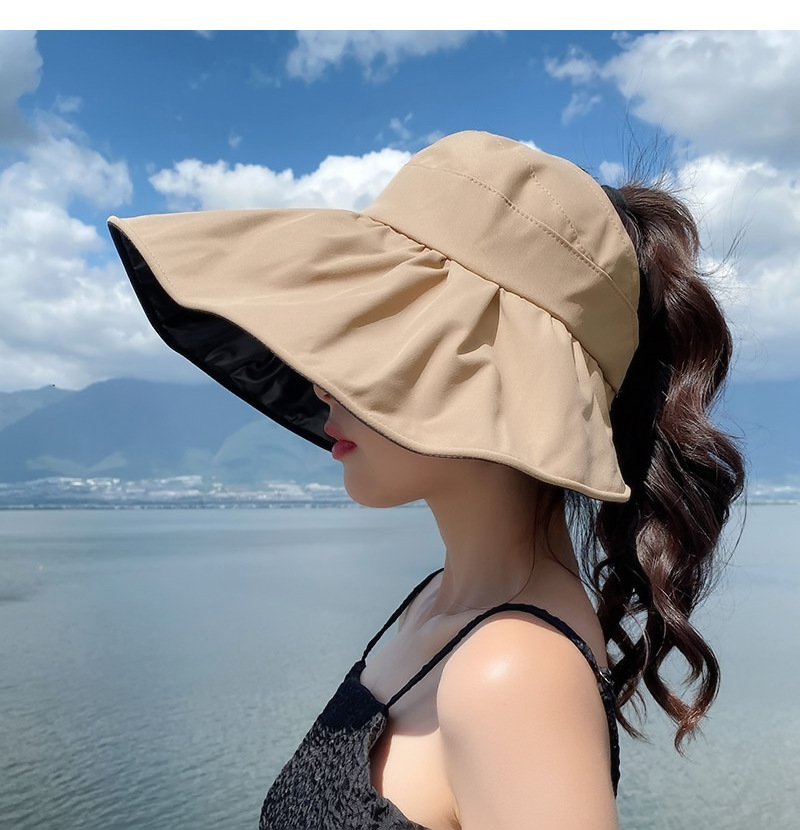 여름 반 빈 탑 선 스크린 모자 여성 더블 레이어 어부 블랙 접착제 코팅 야외 안티-UV 접이식 햇빛 모자스토어 가기