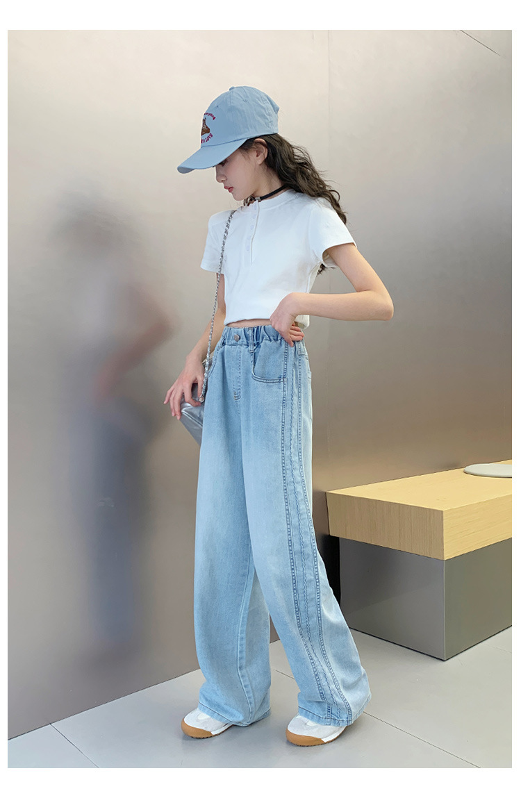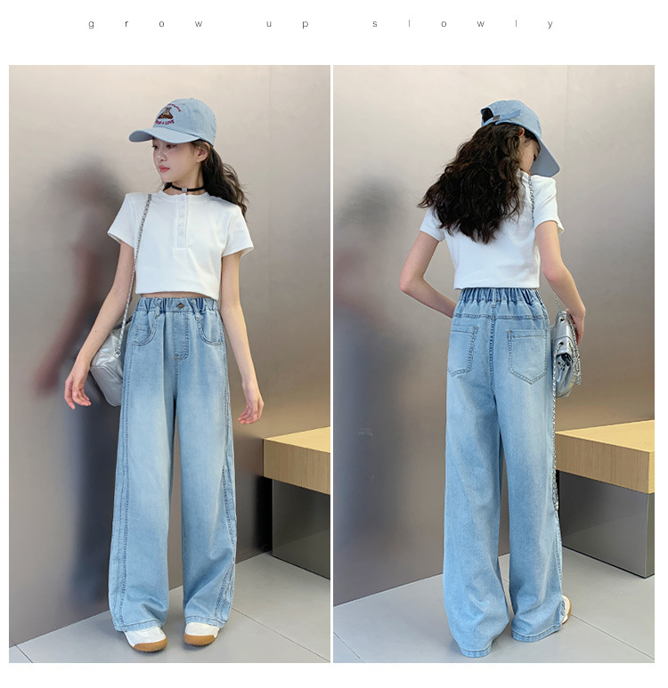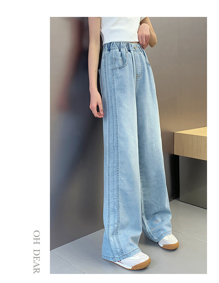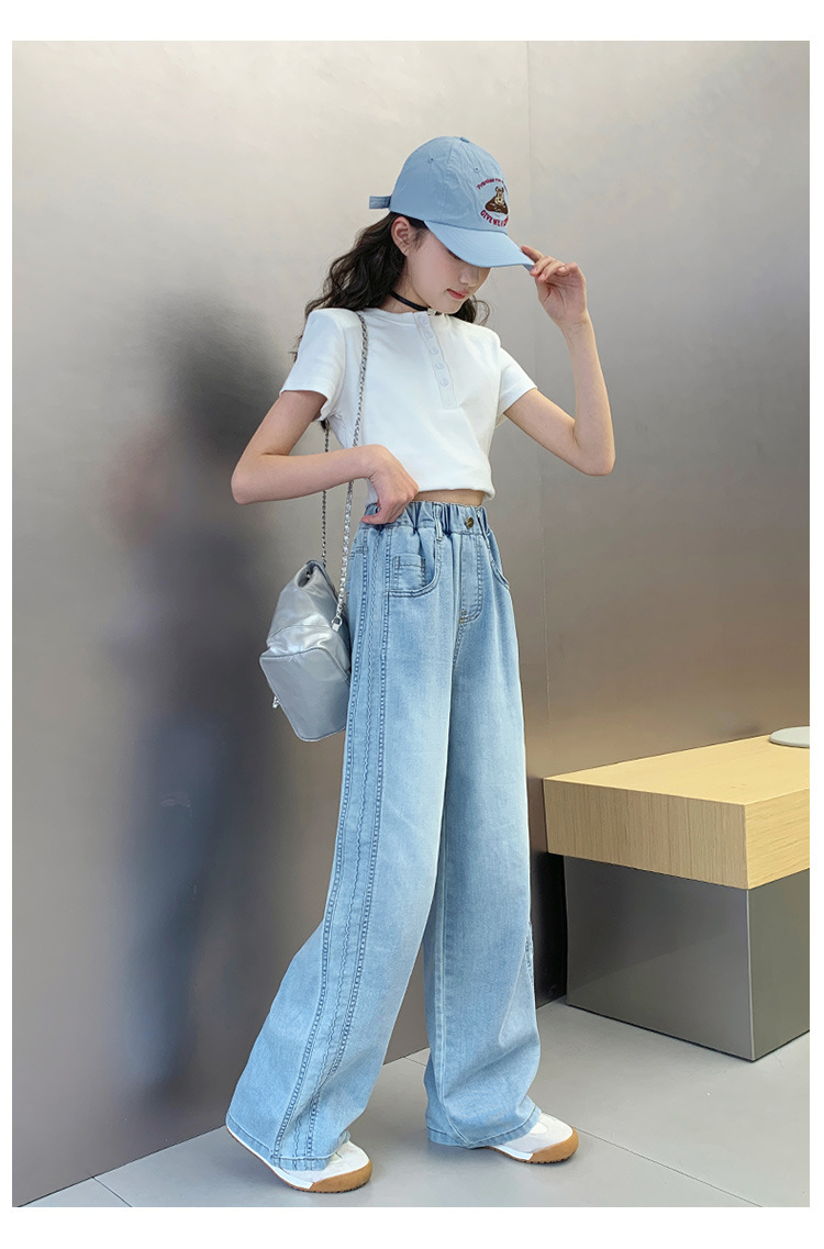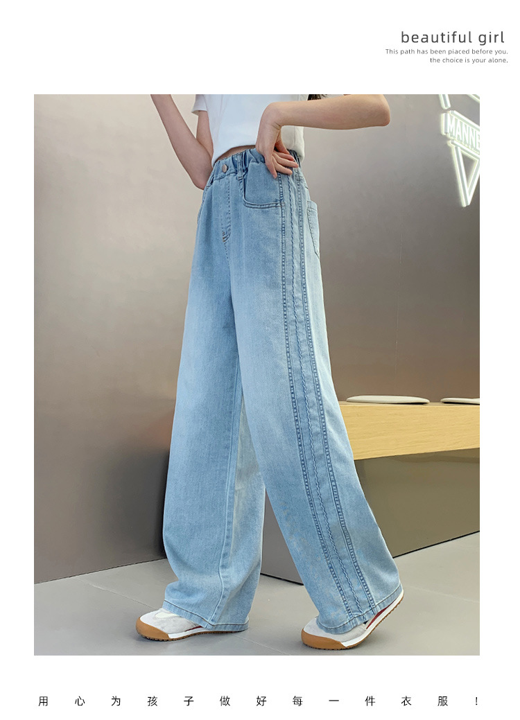 소녀 청바지 2025 새로운 스타일 중대형 어린이 넓은 다리 바지 경량 느슨한 직선 안티 모기 바지스토어 가기