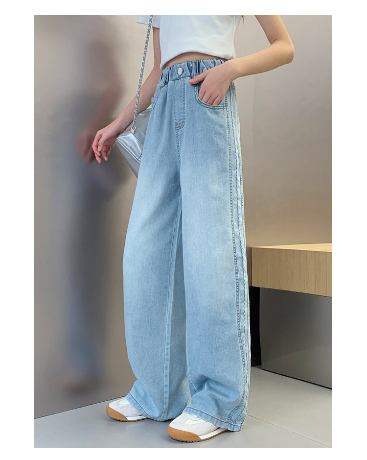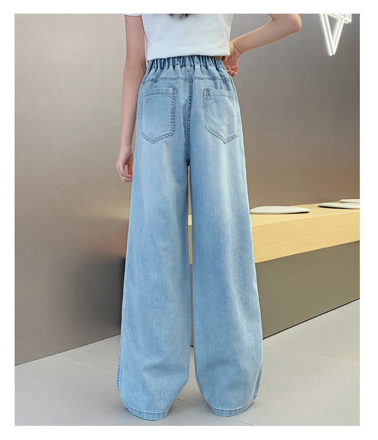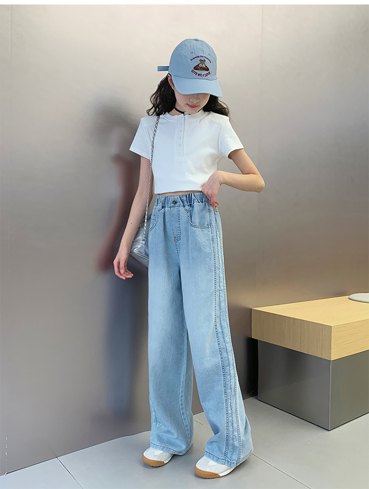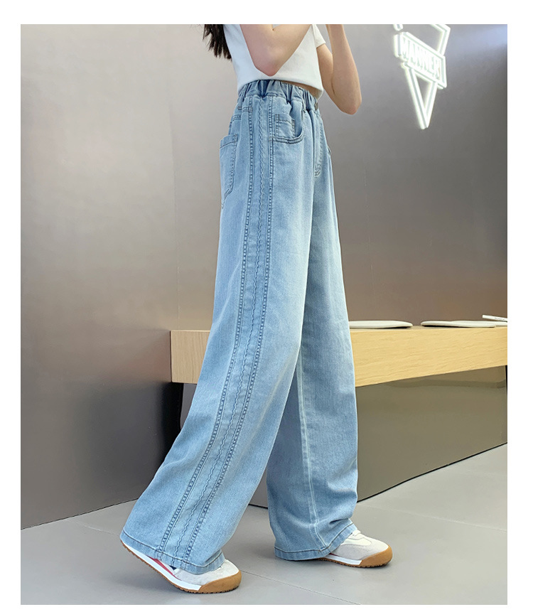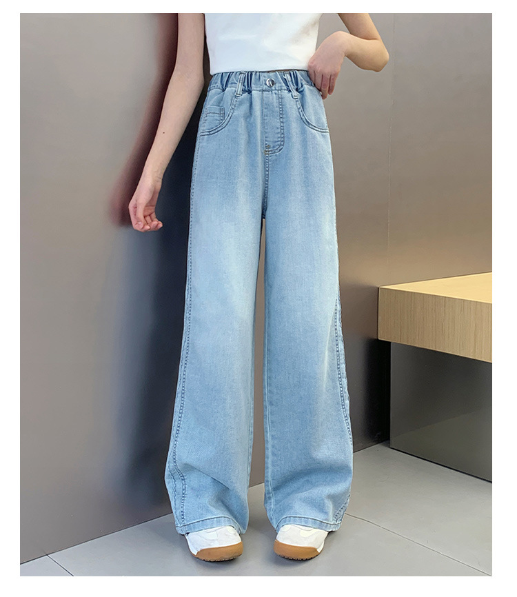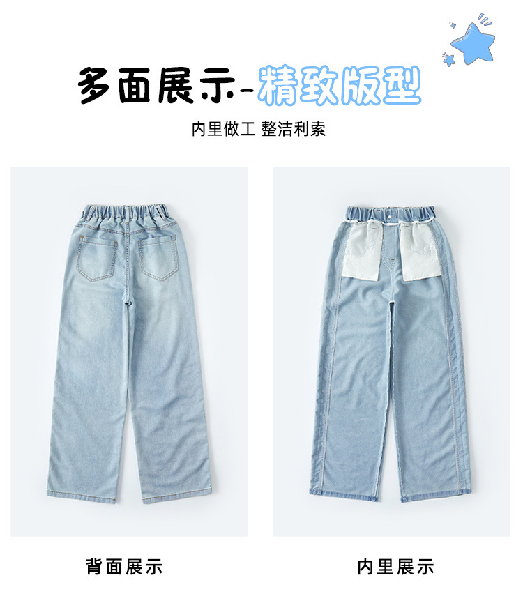 소녀 청바지 2025 새로운 스타일 중대형 어린이 넓은 다리 바지 경량 느슨한 직선 안티 모기 바지스토어 가기