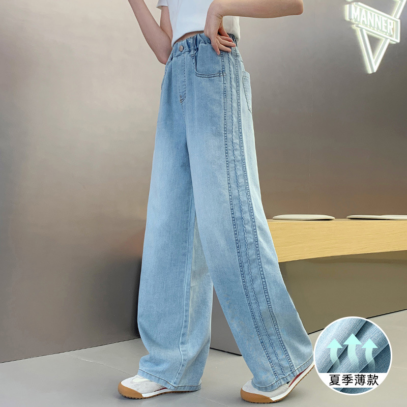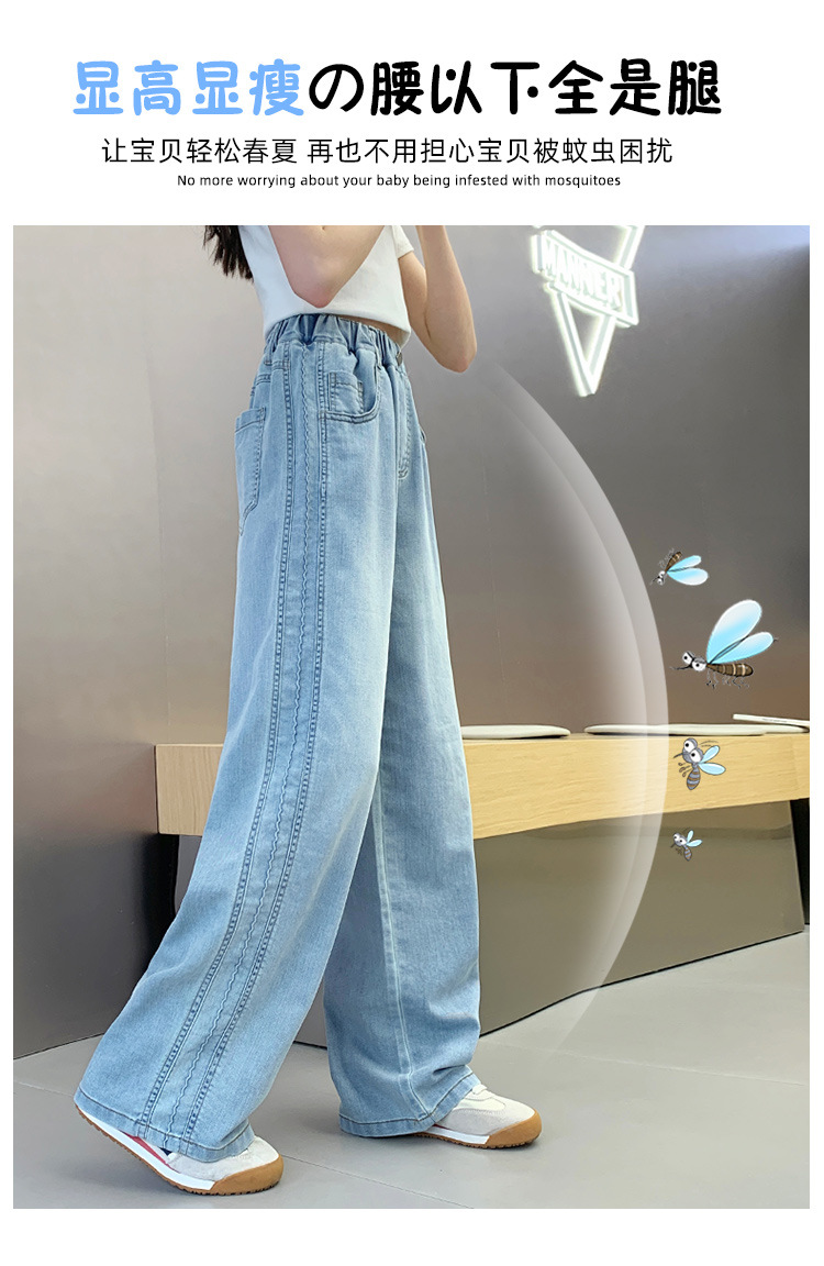 소녀 청바지 2025 새로운 스타일 중대형 어린이 넓은 다리 바지 경량 느슨한 직선 안티 모기 바지