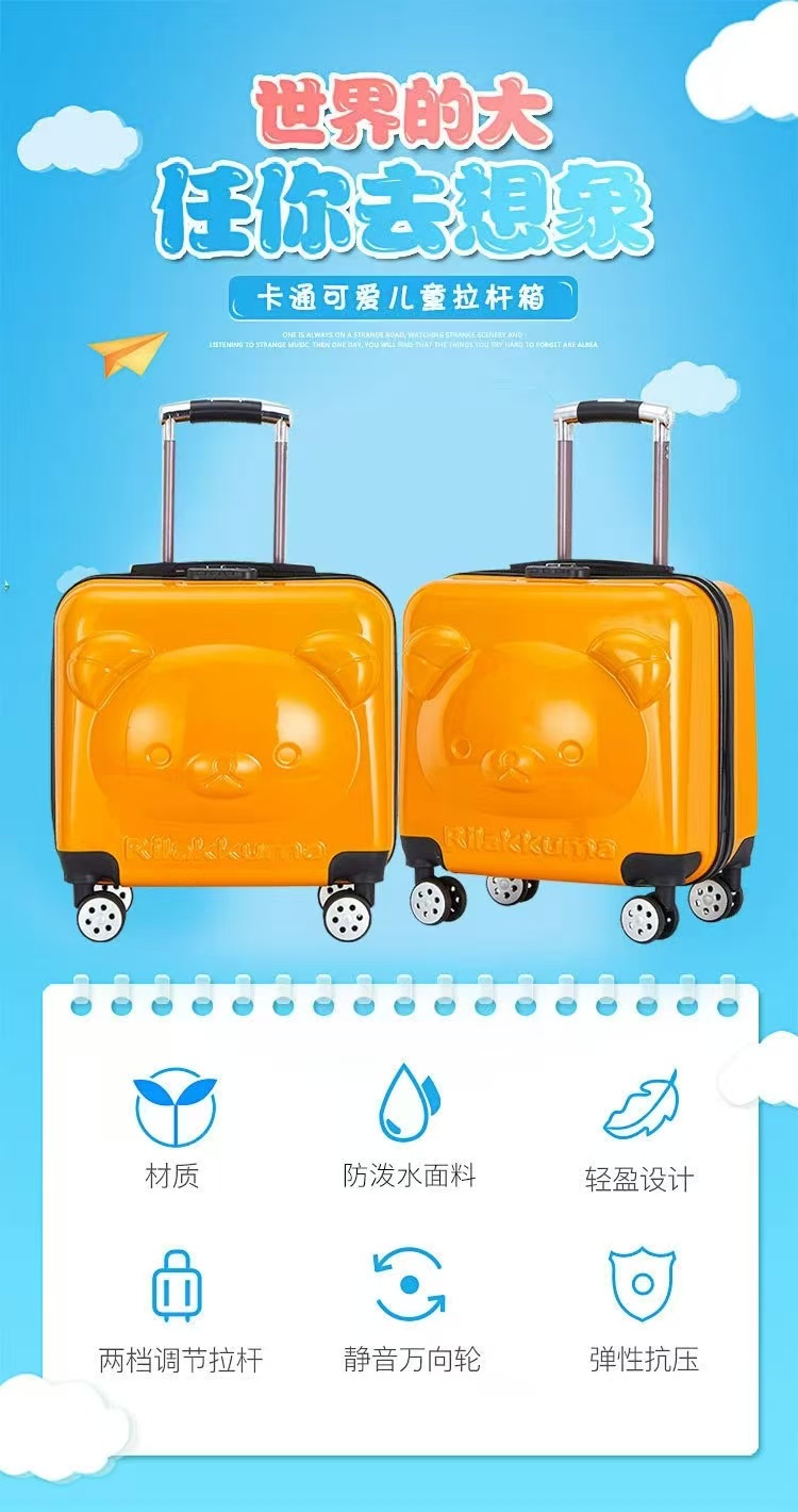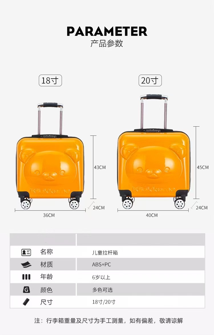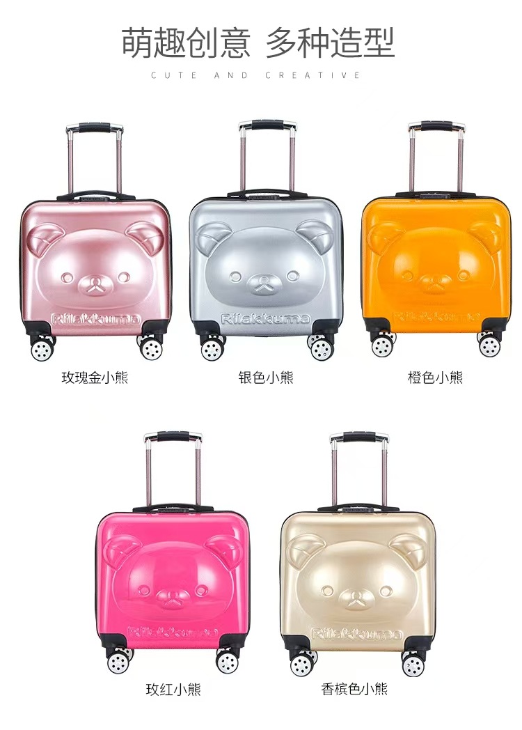어린이용 입체 곰돌이 코드잠금식 트롤리 캐리어 18inch 소형 여행가방, 탑승용 여행가방, 로고 인쇄 가능, 휴대용스토어 가기