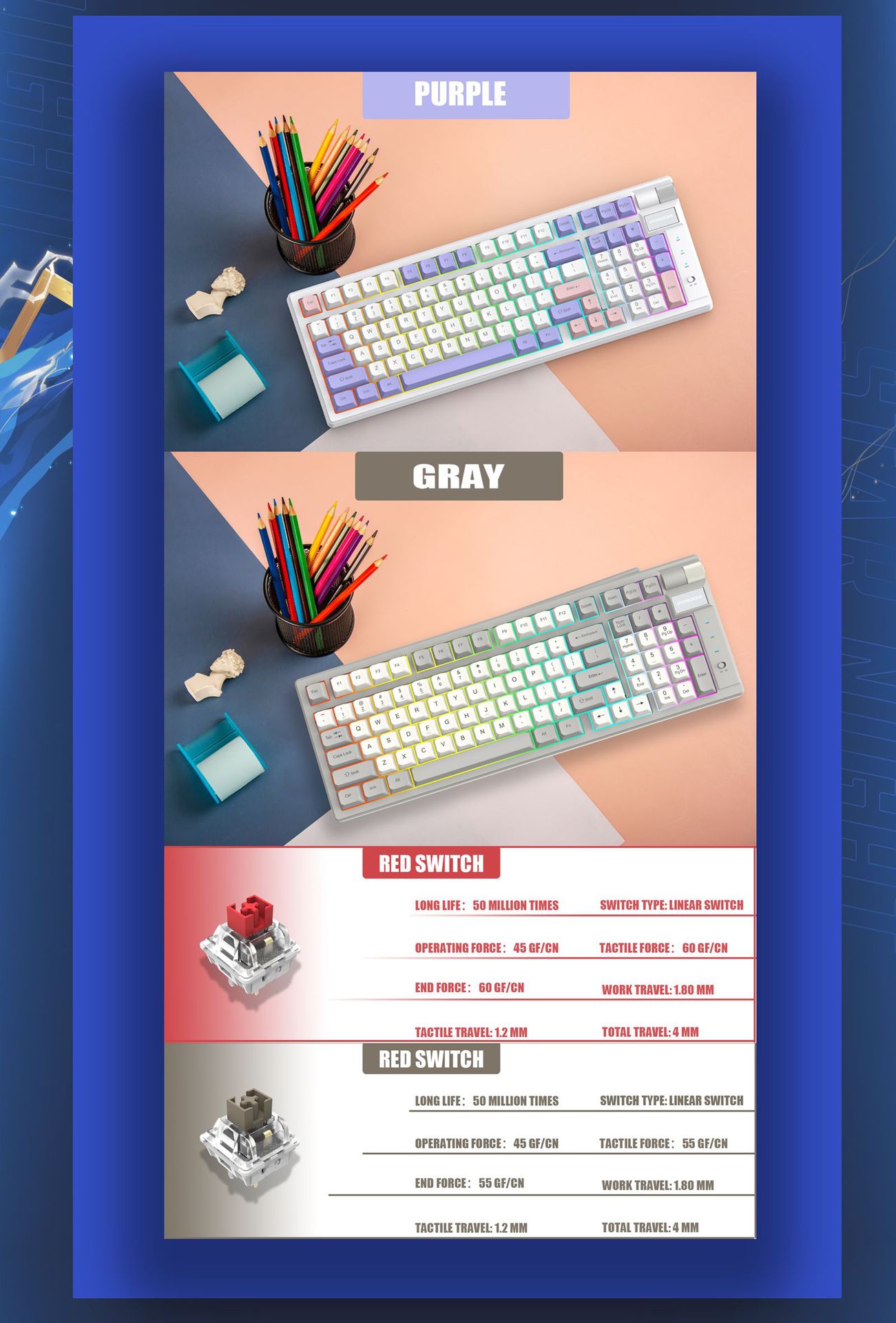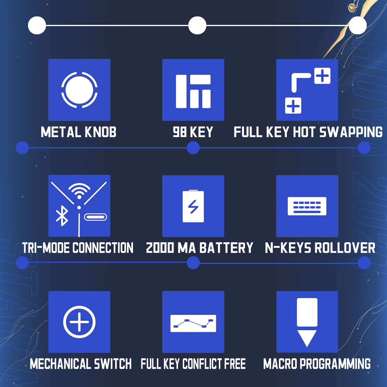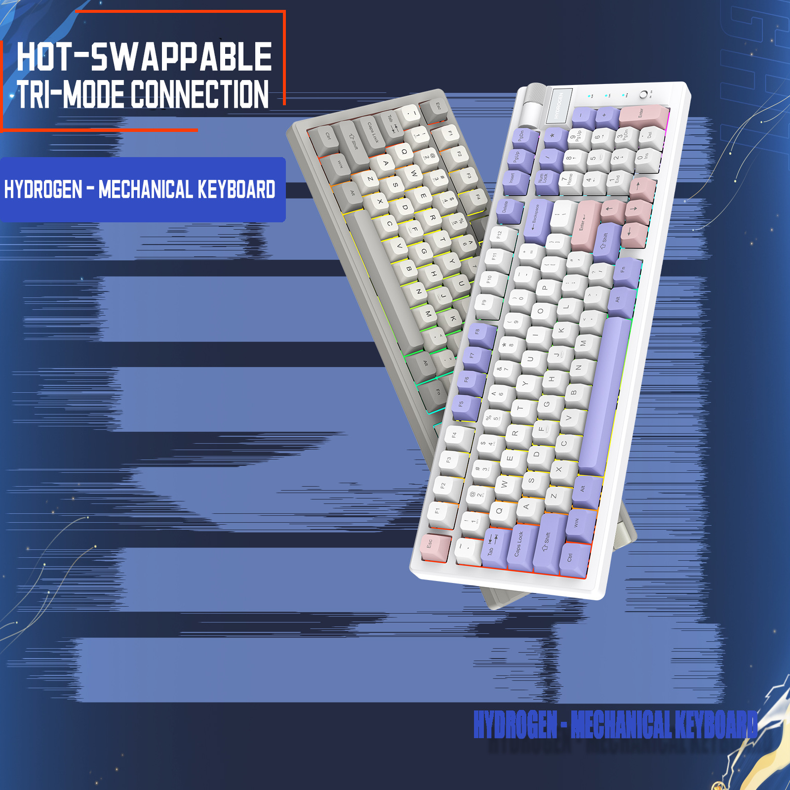 기계식 키보드는 핫스왑 가능하고 축을 교체할 수 있으며 3가지 모드 연결을 지원하며 게임, e스포츠, 사무실, 전자상거래, 무선 및 다중 모드에 적합합니다.