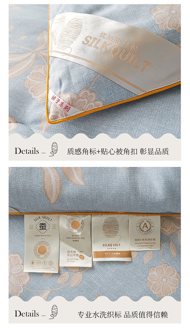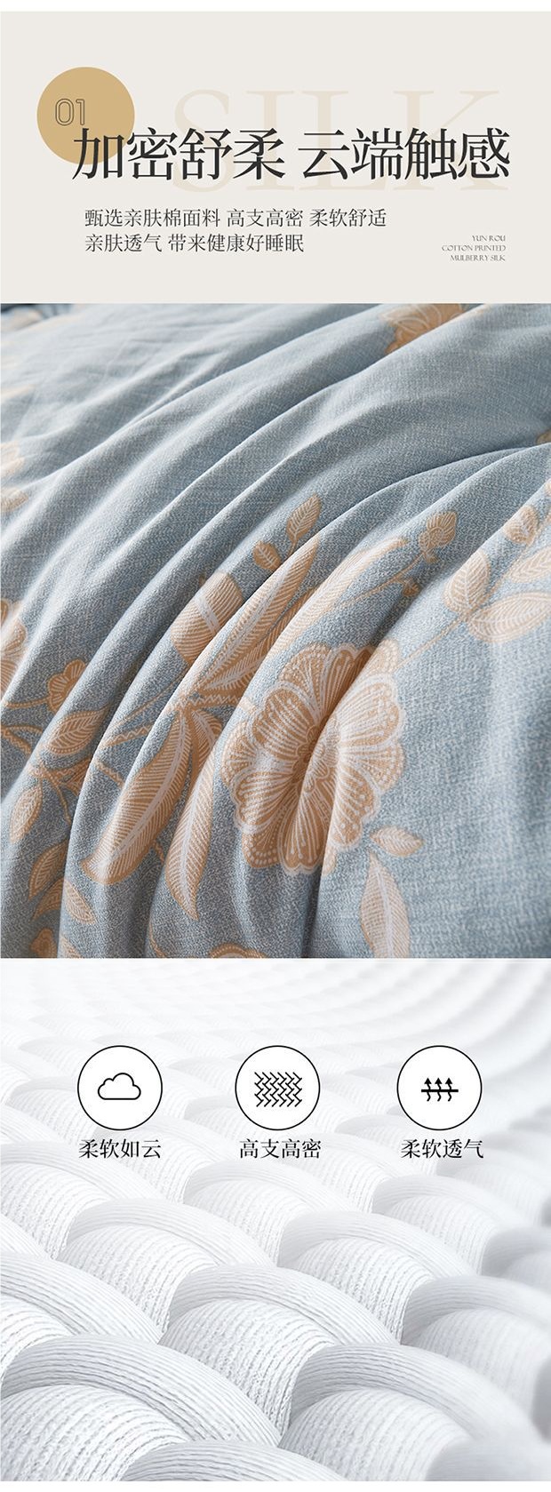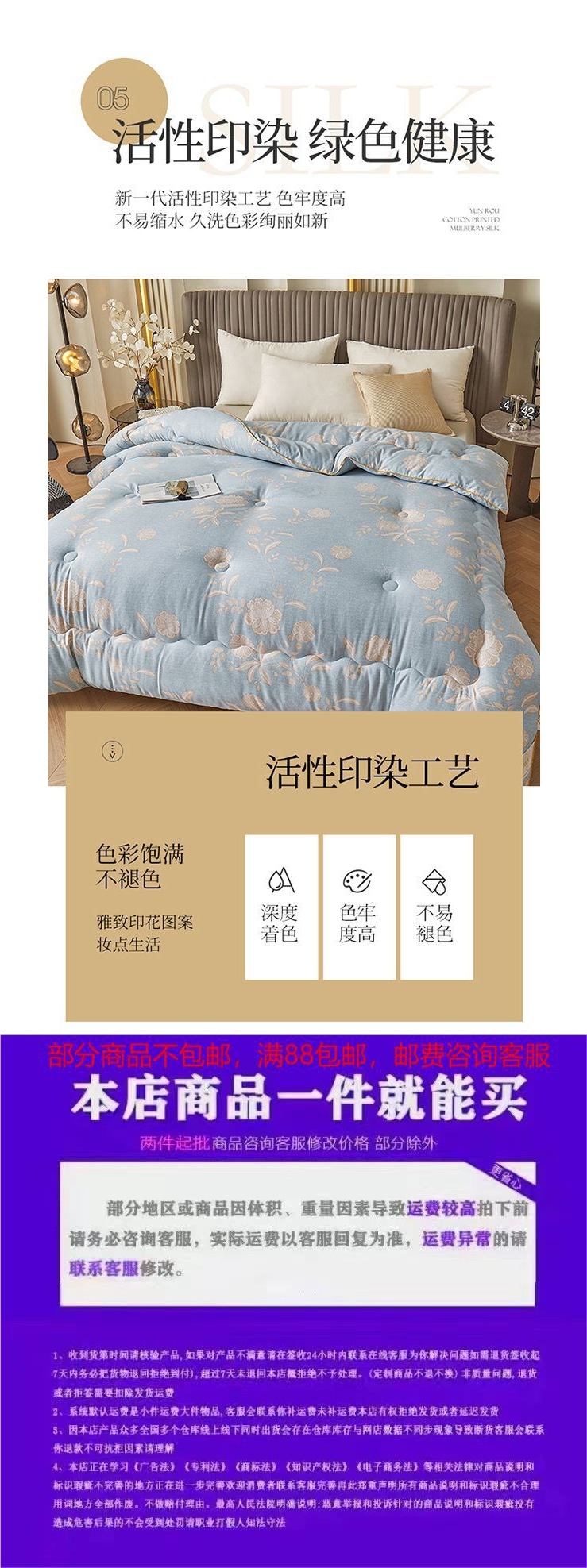 실크 퀼트 100 뽕나무 실크 코튼 코어 봄과 가을 에어컨 퀼트 두꺼운 따뜻한 겨울 퀼트 단일 학생 퀼트