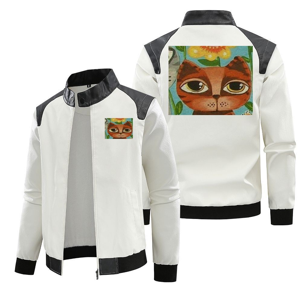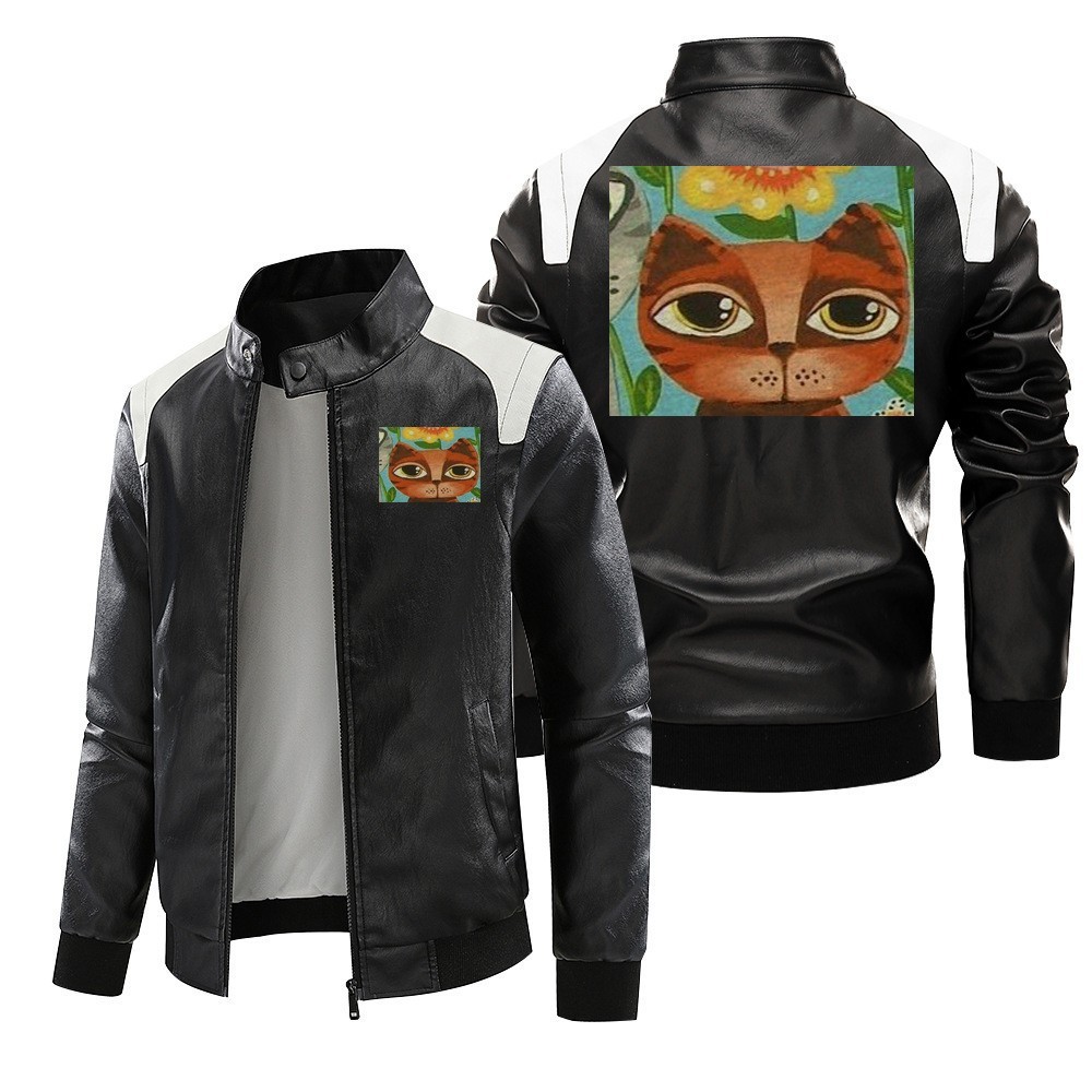 【유럽 사이즈 플러스 사이즈 블랙&화이트 가죽 자켓】키튼 시리즈 두꺼운 모터사이클 스타일 가을겨울 자켓 PU 가죽 자켓