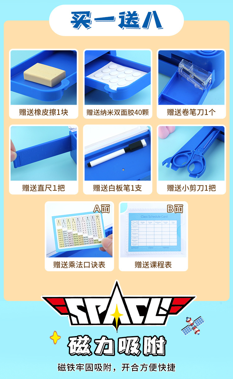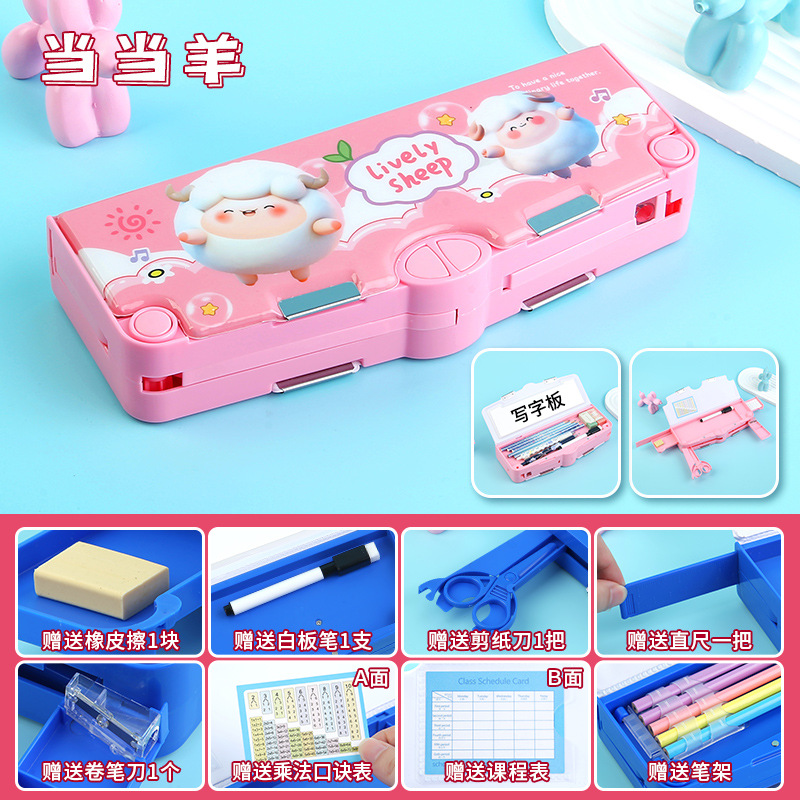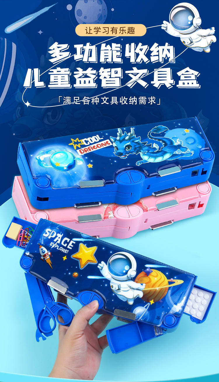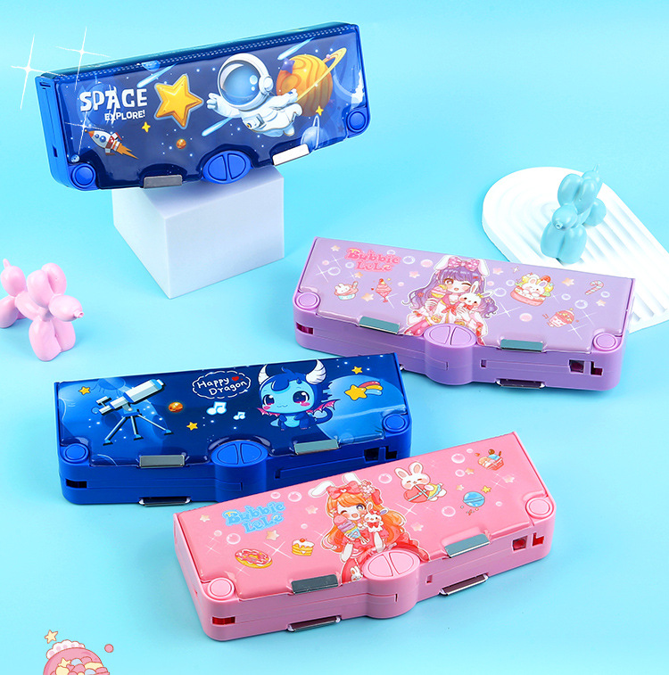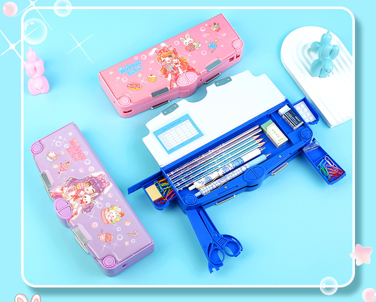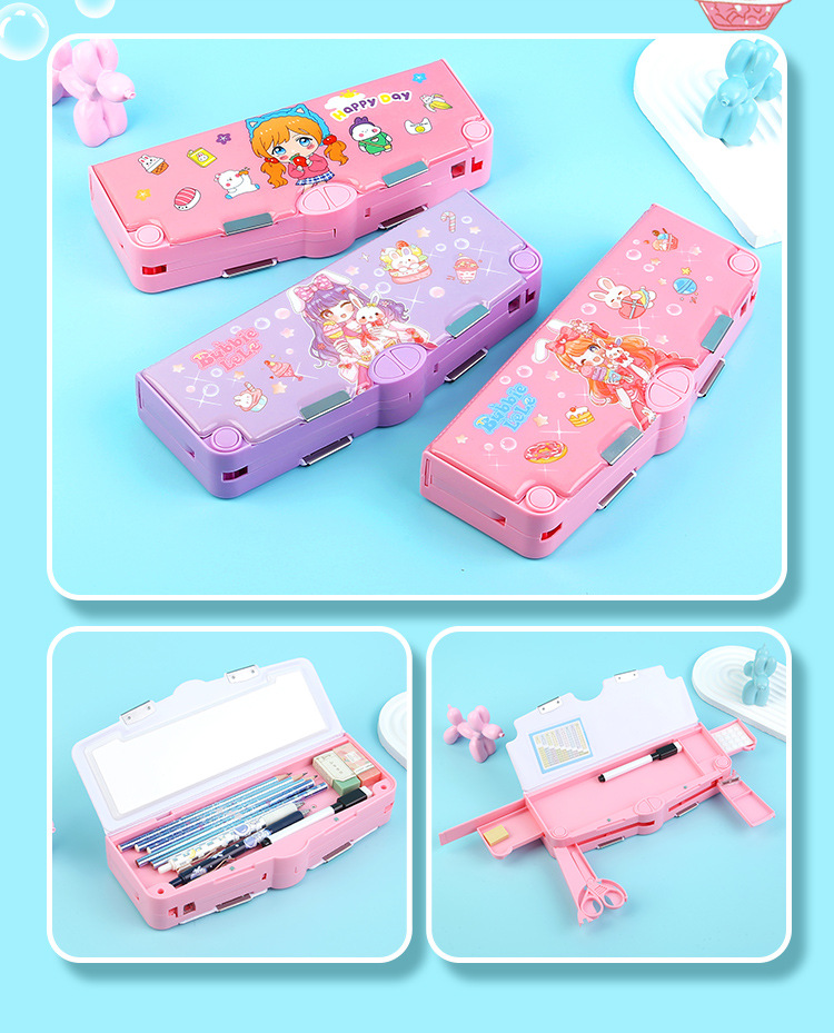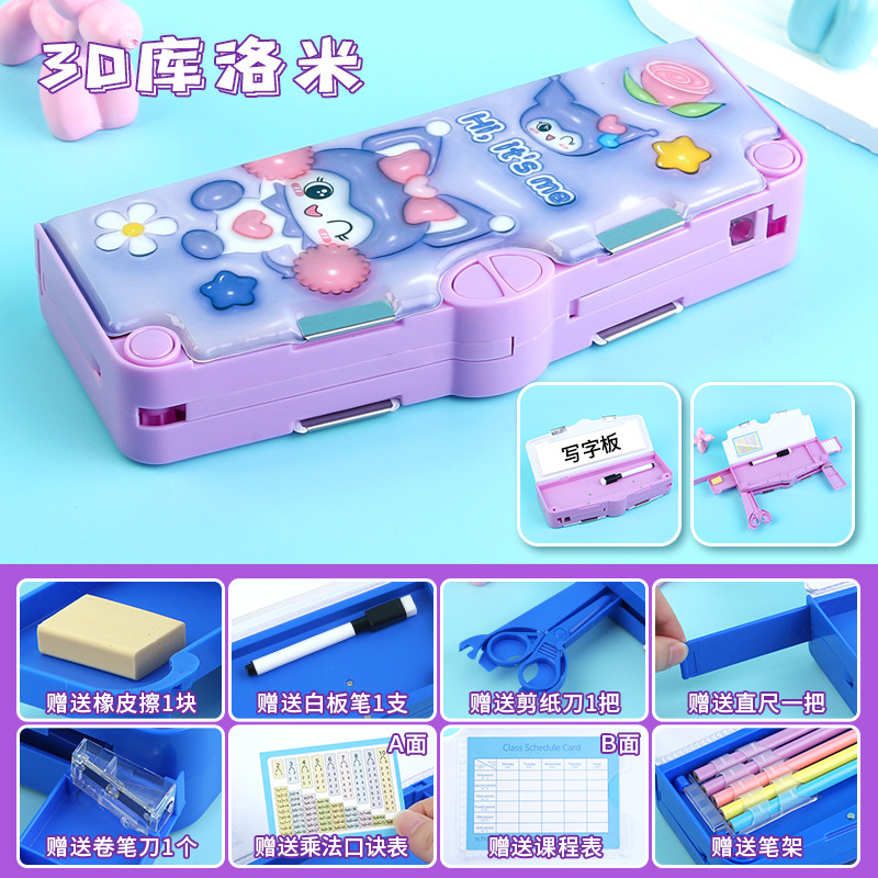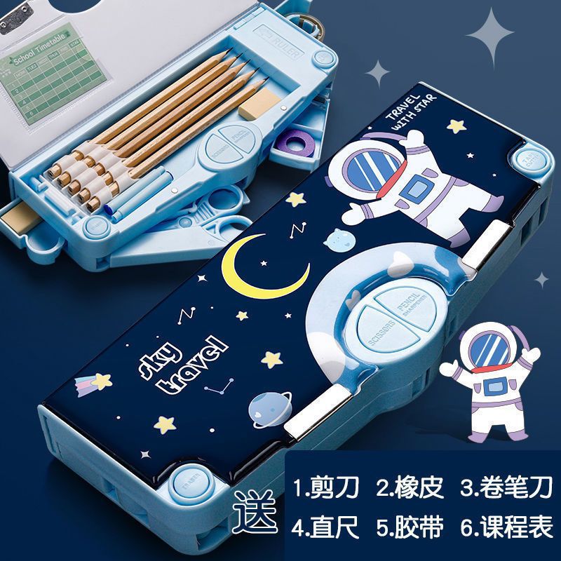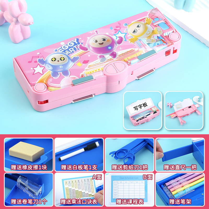 새로 업그레이드 된 3 층 양면 다기능 문구 상자 대용량 남녀 초등학생 연필 케이스 8 피스 세트