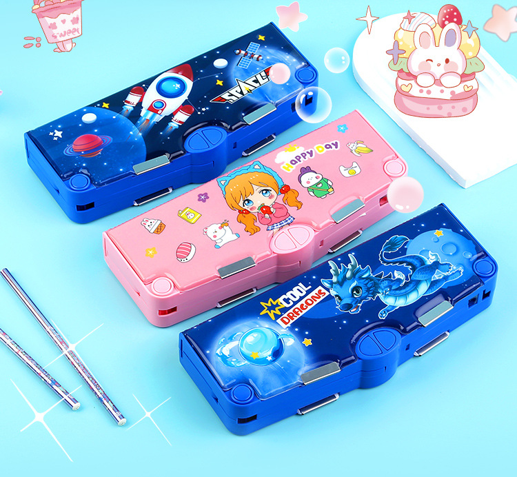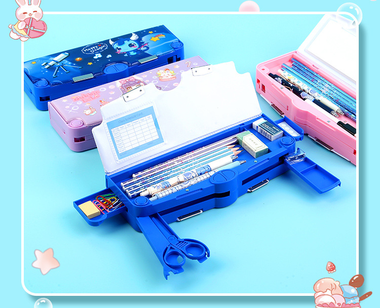 새로 업그레이드 된 3 층 양면 다기능 문구 상자 대용량 남녀 초등학생 연필 케이스 8 피스 세트스토어 가기
