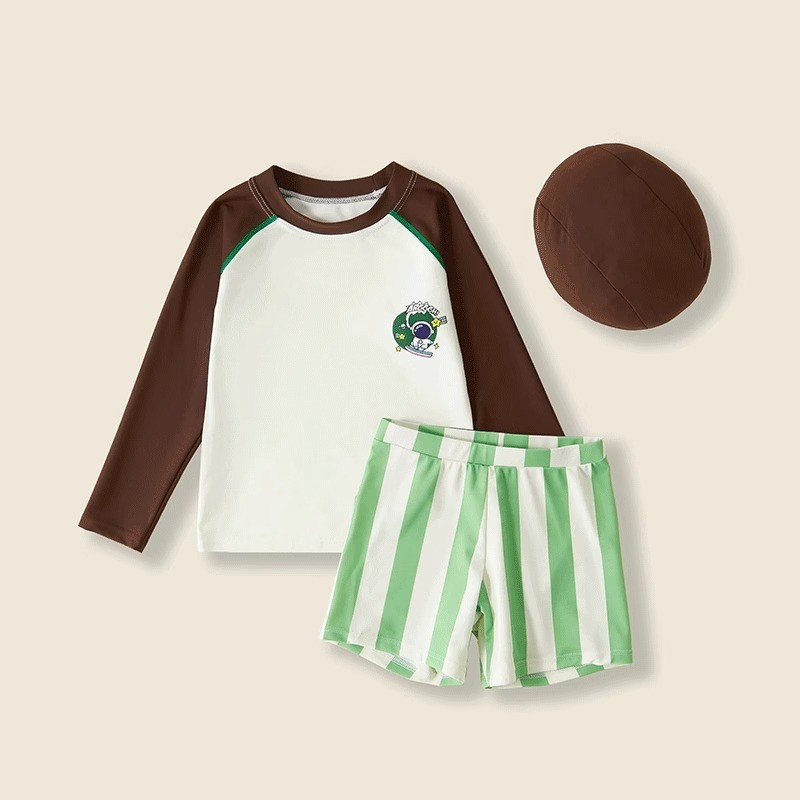 어린이 2024 온천 새 수영복 소년 반바지 긴 소매 빠른 건조 선 스크린 분할 중소 어린이 소년 도매