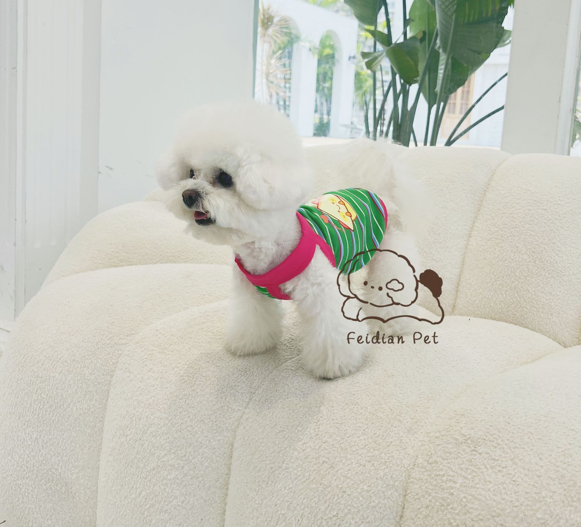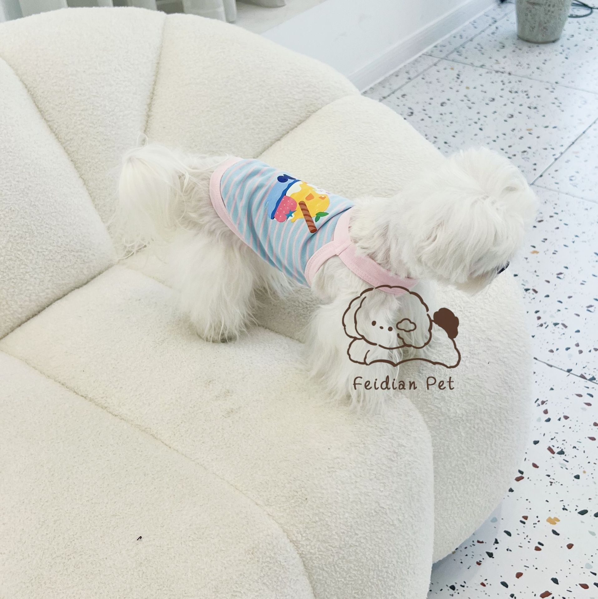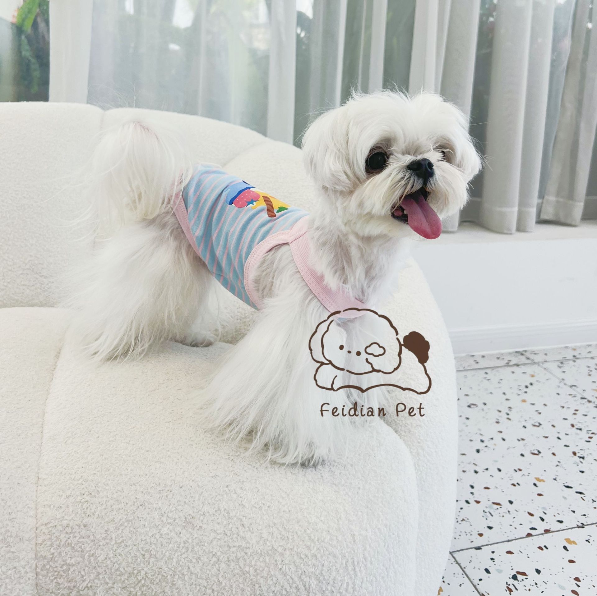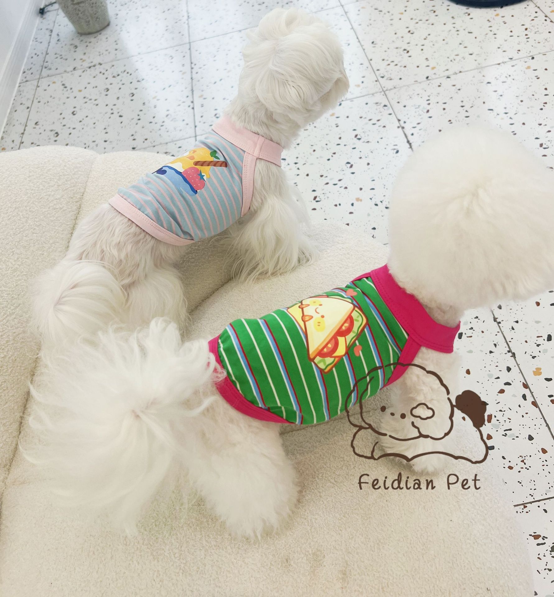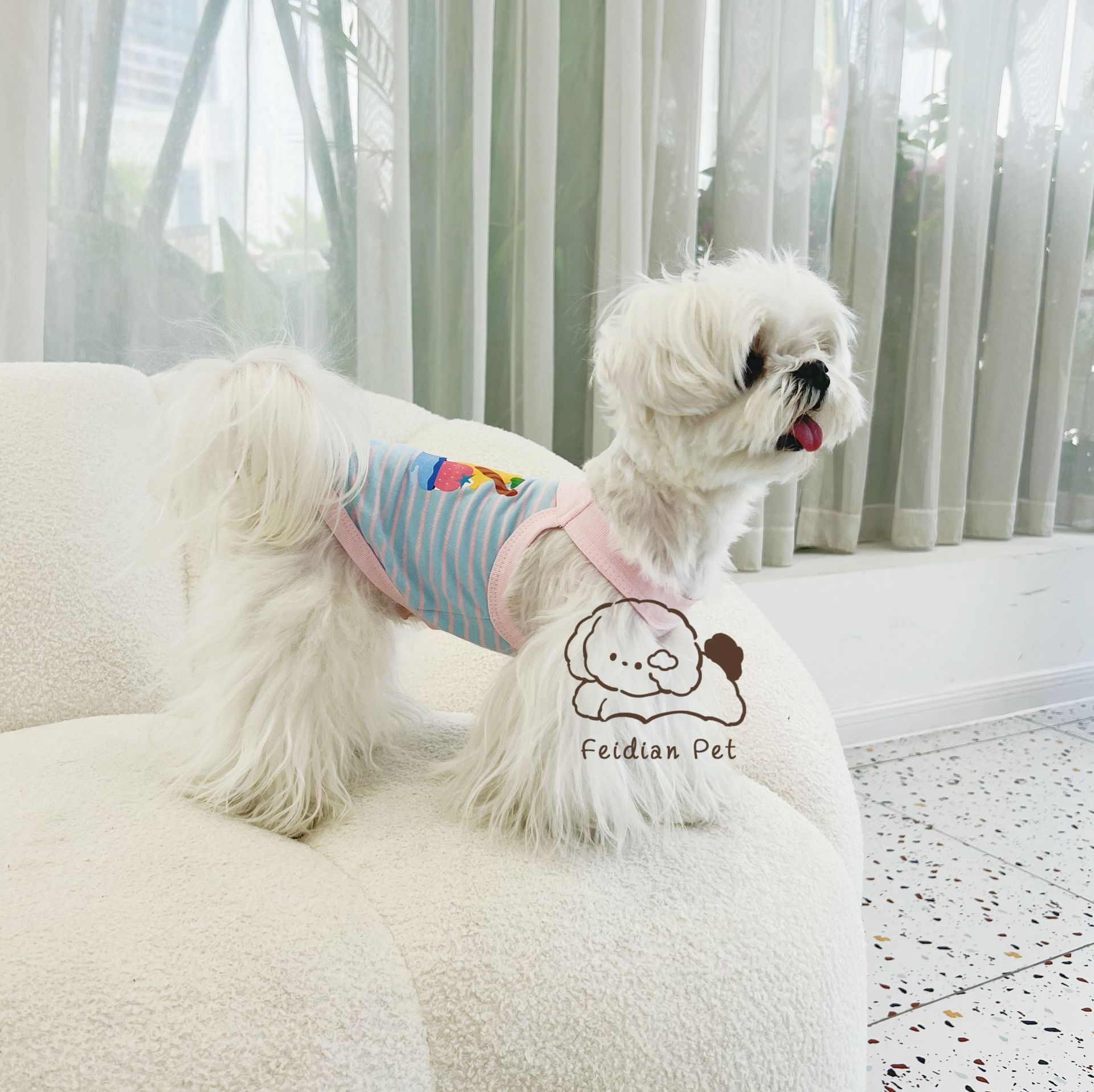 애완 동물 봄과 여름 새로운 명암 색 줄무늬 만화 인쇄 조끼 작은 개와 고양이 통기성 옷 편안한 코튼 티셔츠스토어 가기