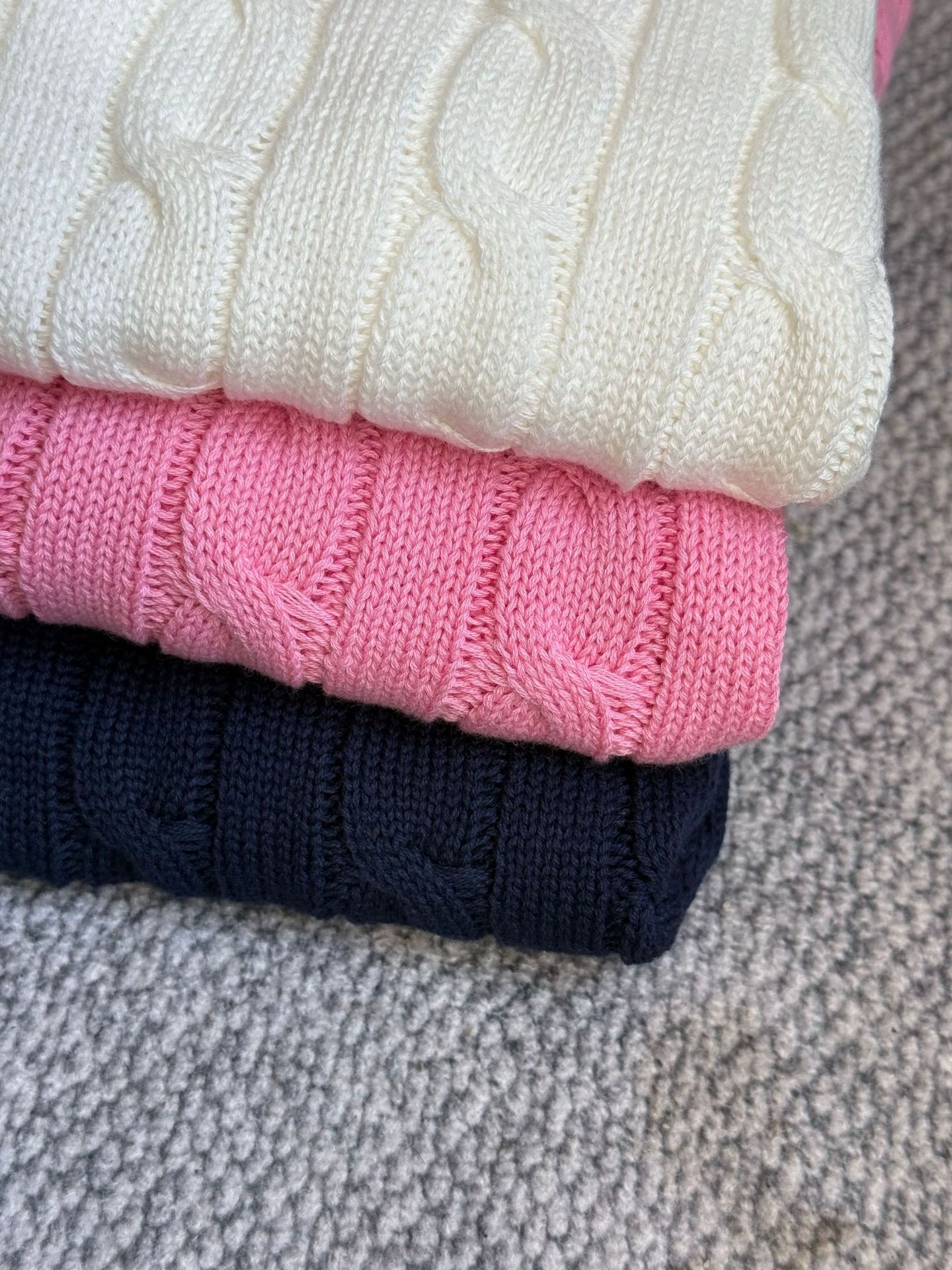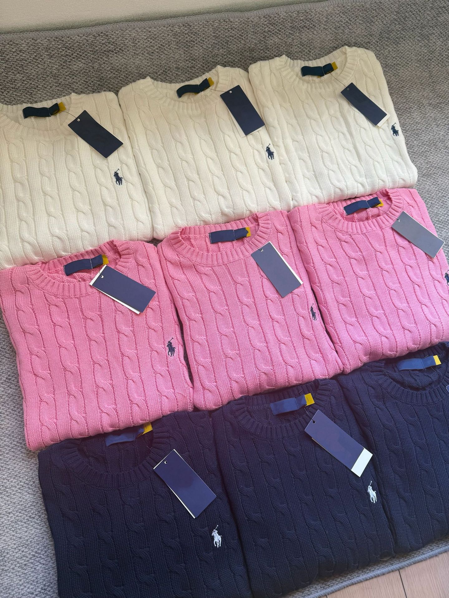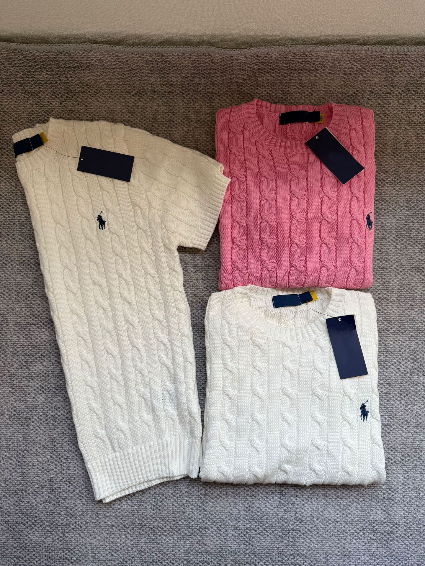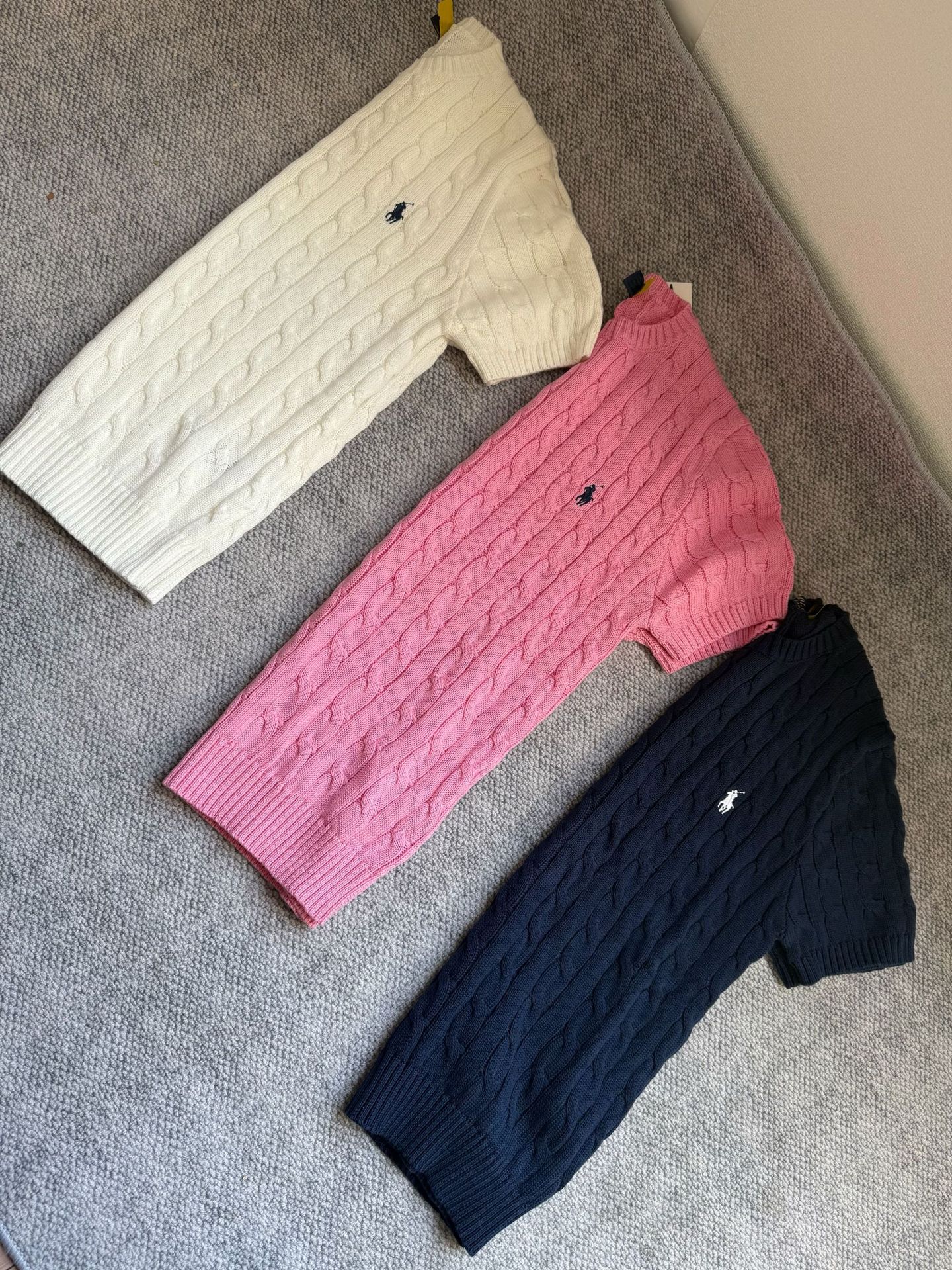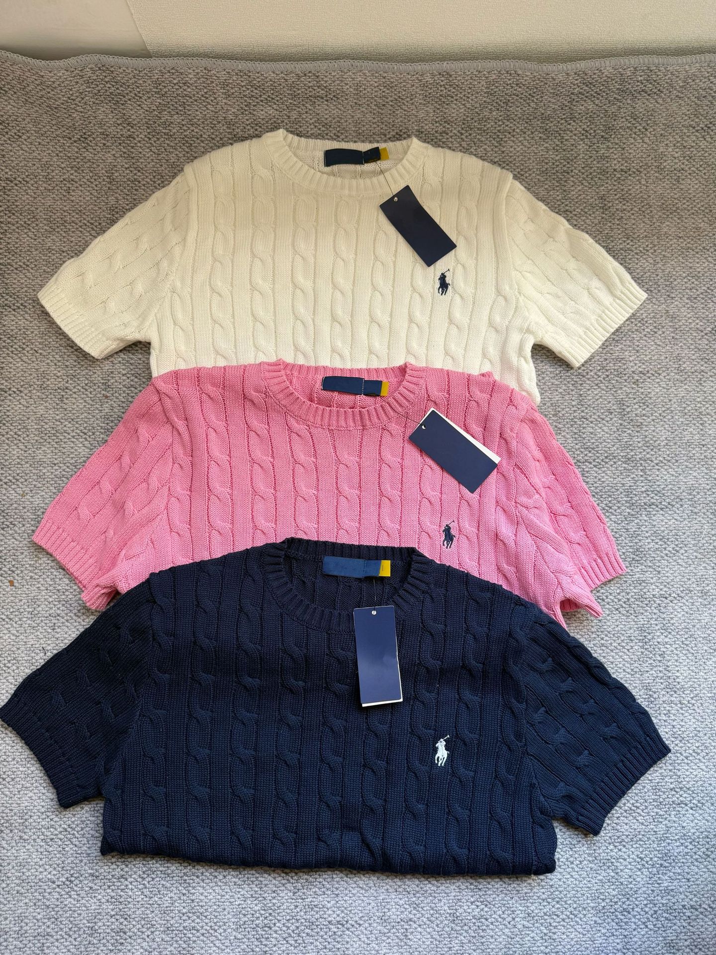 RL 러프 포니 마크 레이디스 클래식 코튼 짧은 소매 라운드 넥 트위스트 스웨터 25 년 새로운 니트 짧은 소매스토어 가기