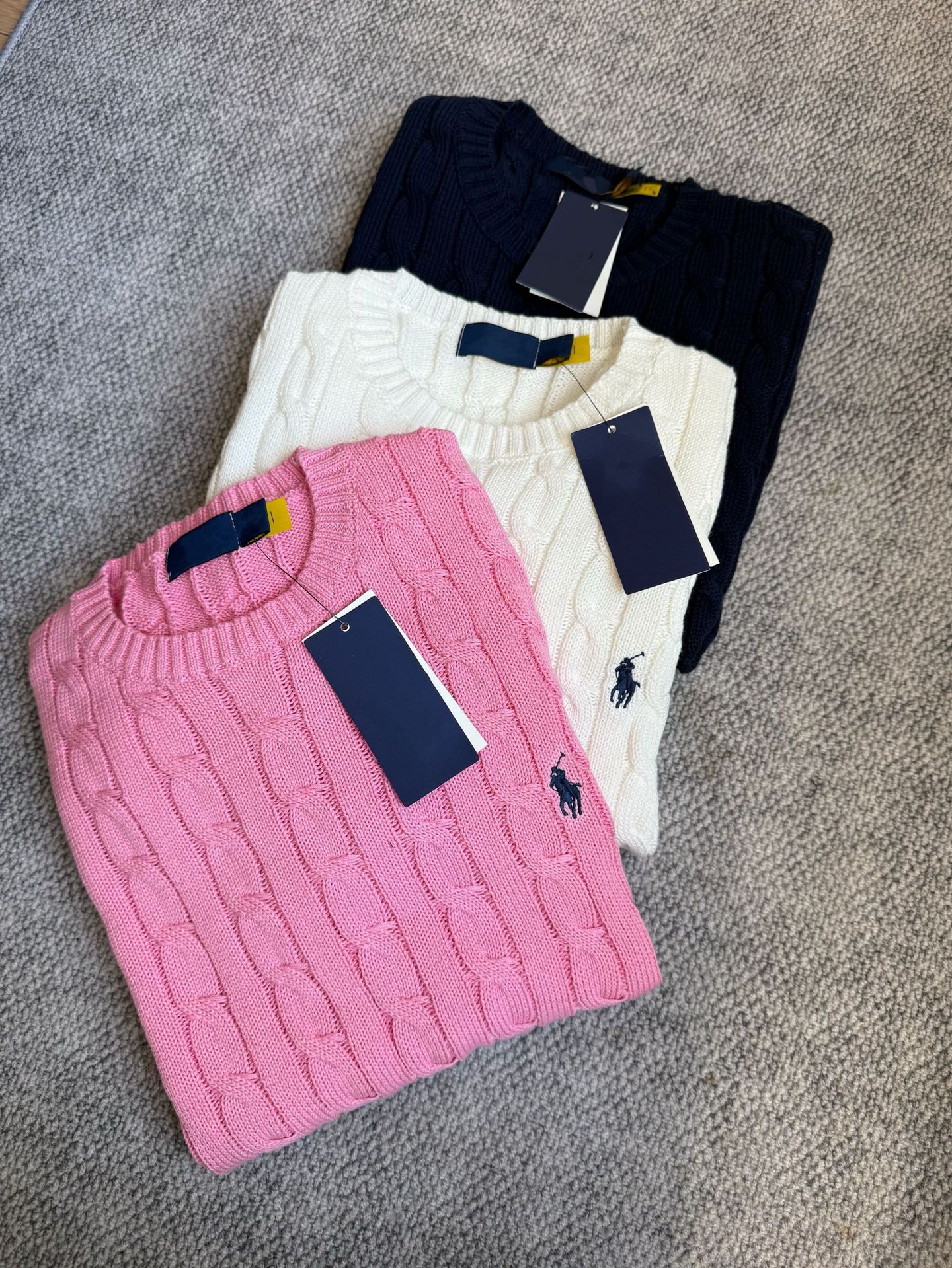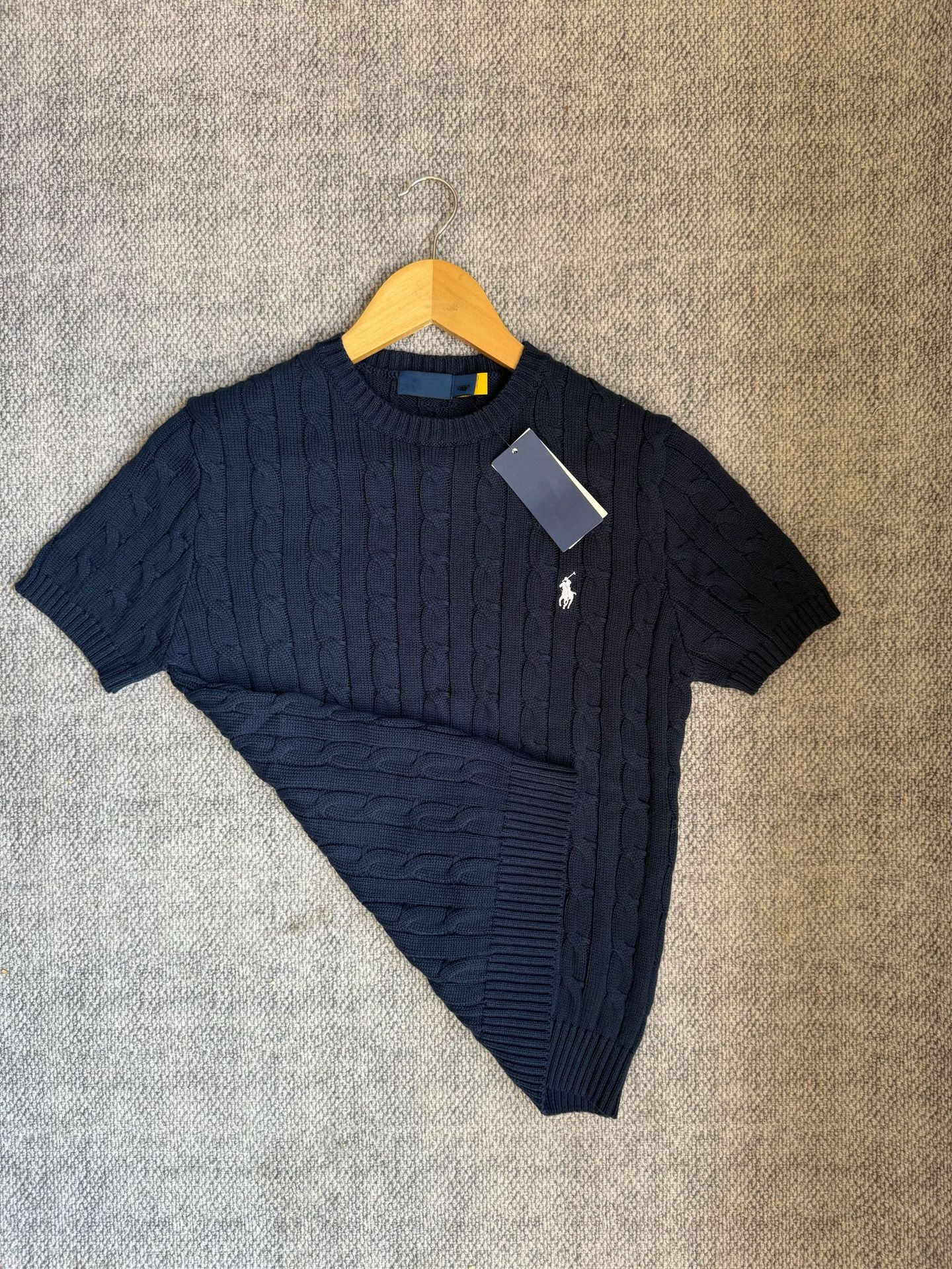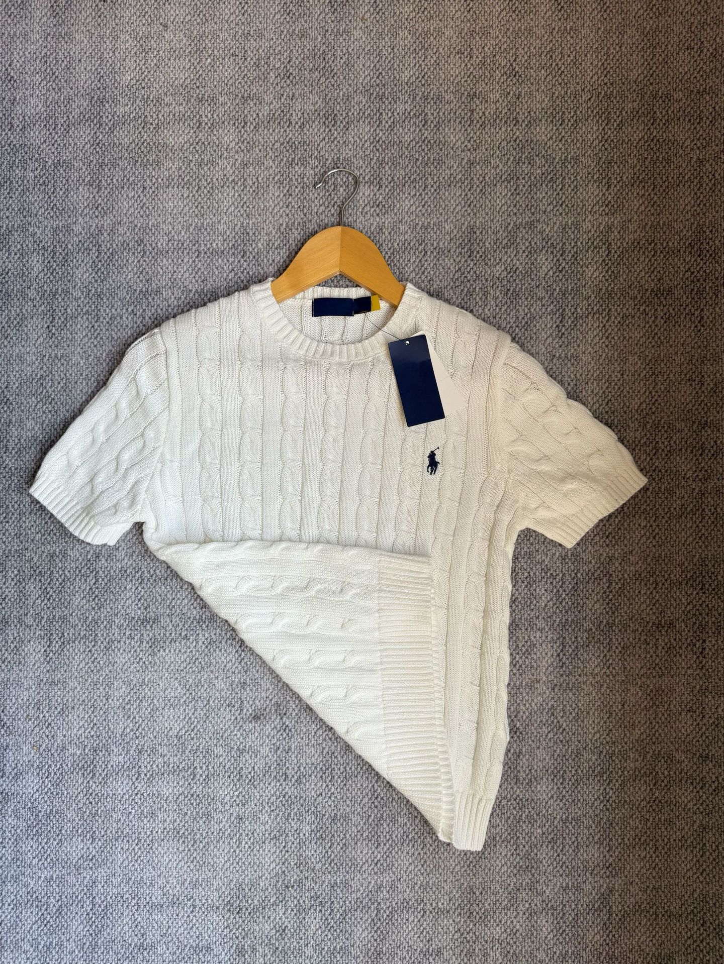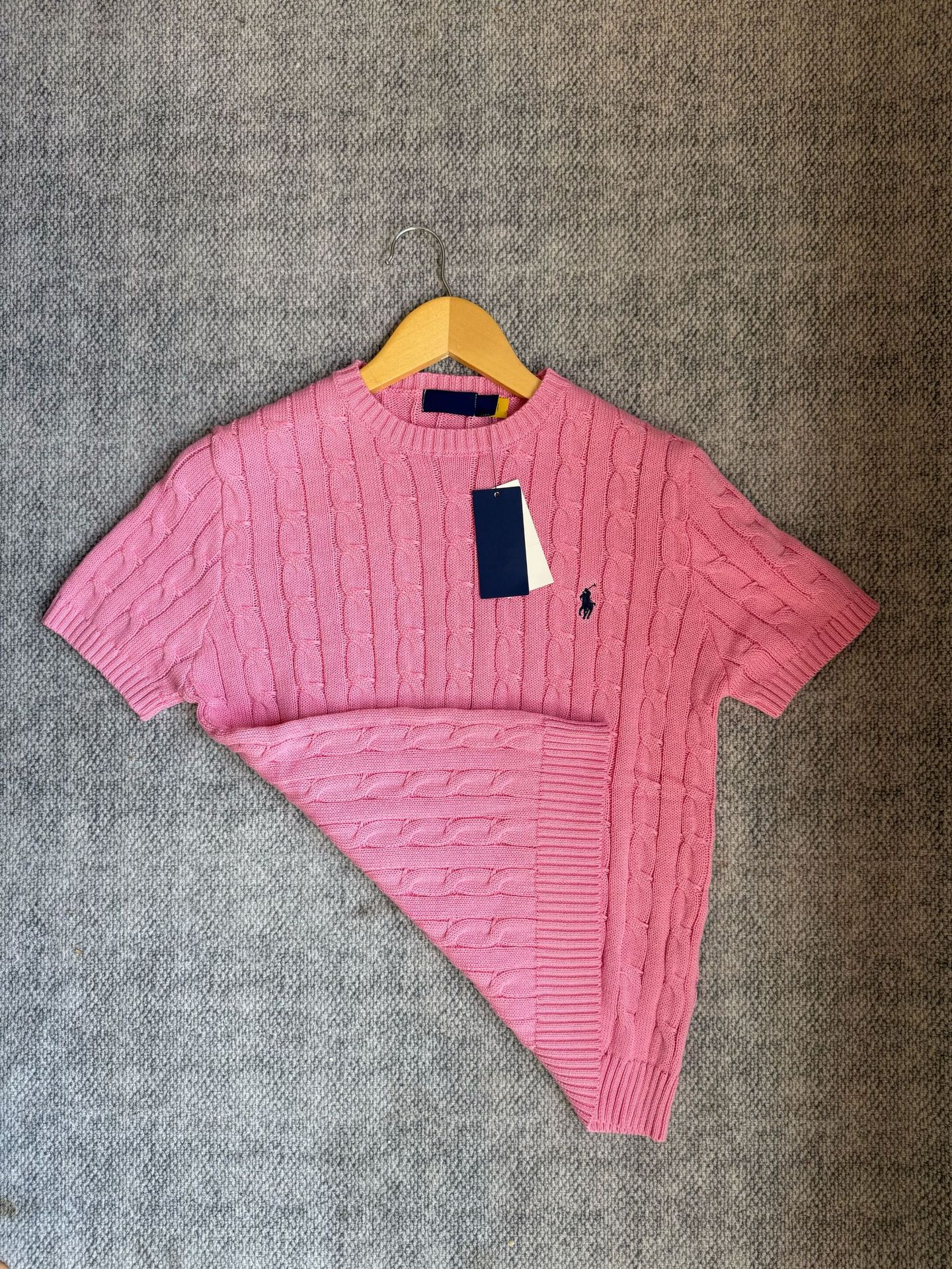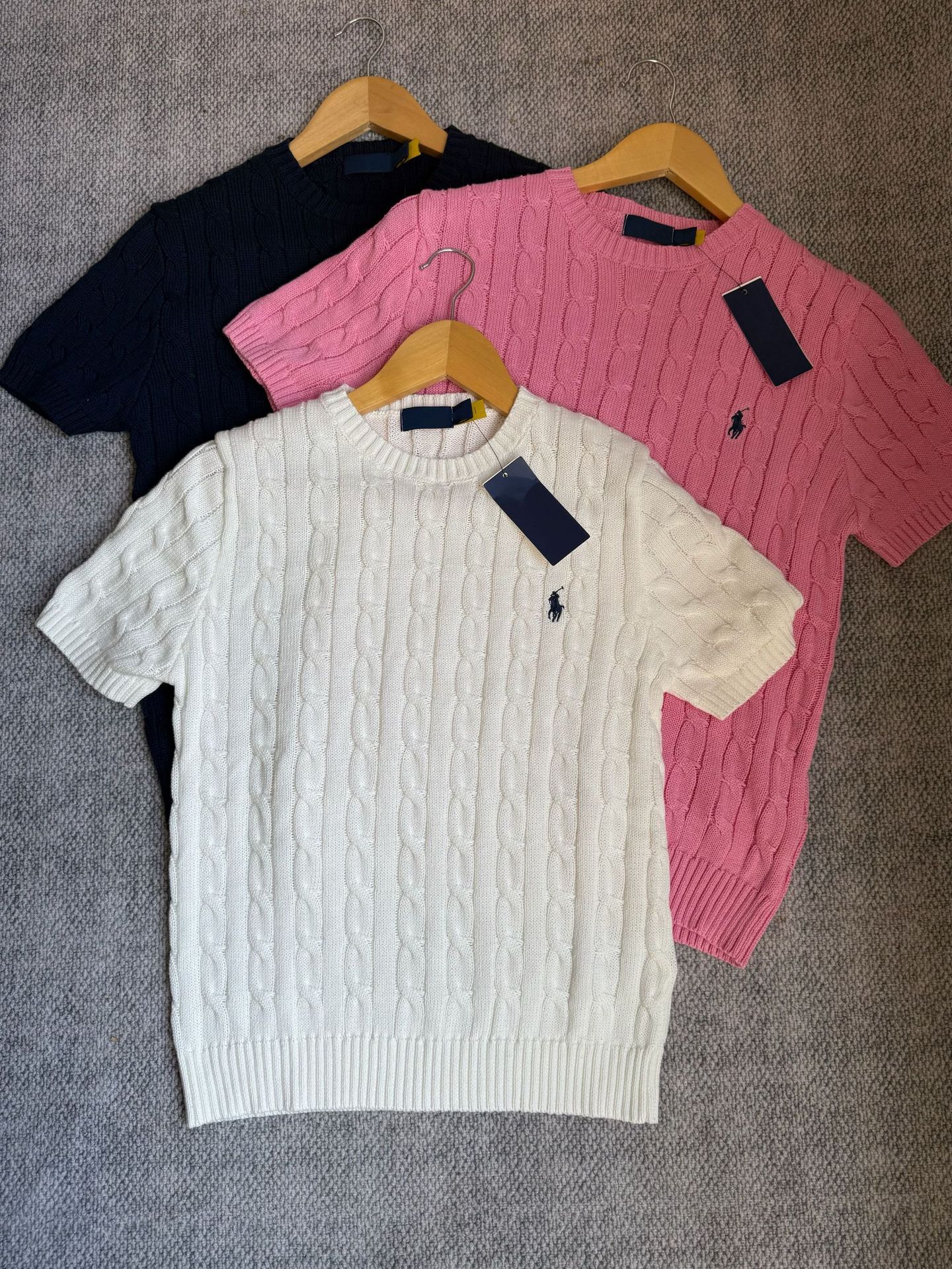 RL 러프 포니 마크 레이디스 클래식 코튼 짧은 소매 라운드 넥 트위스트 스웨터 25 년 새로운 니트 짧은 소매