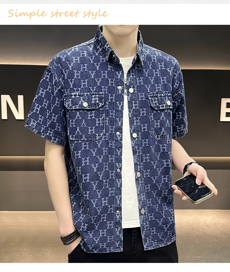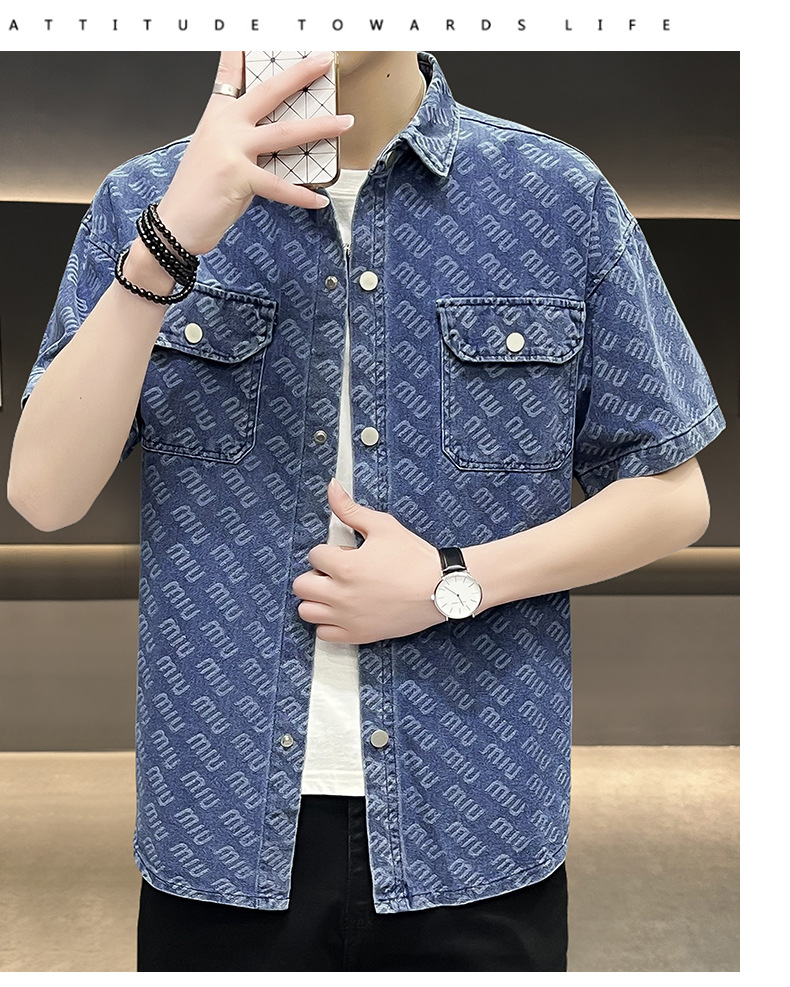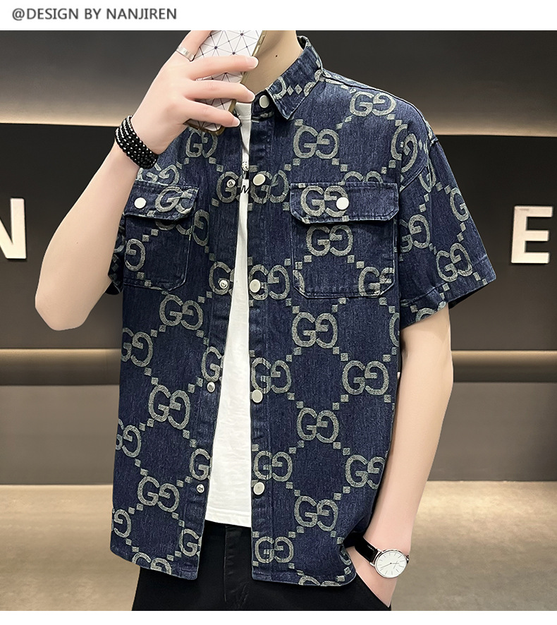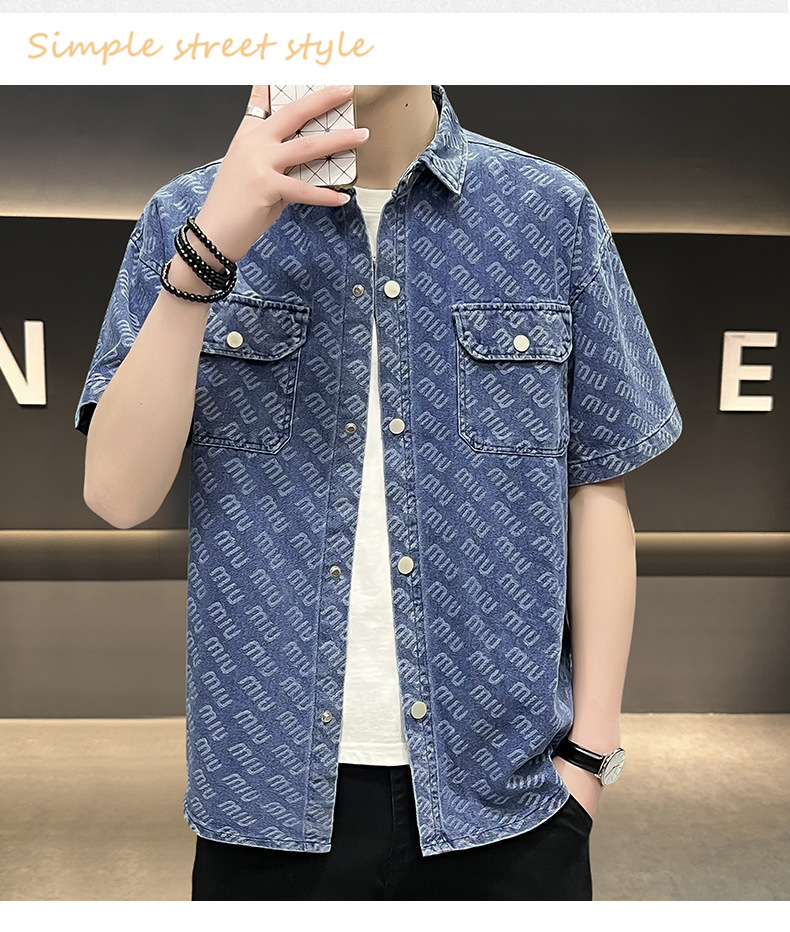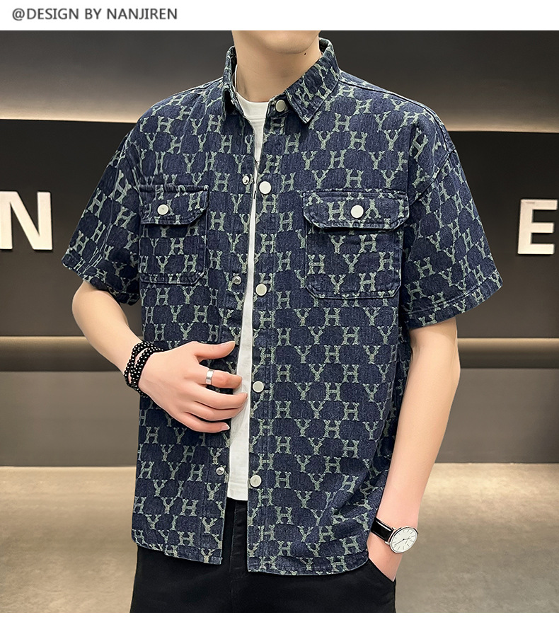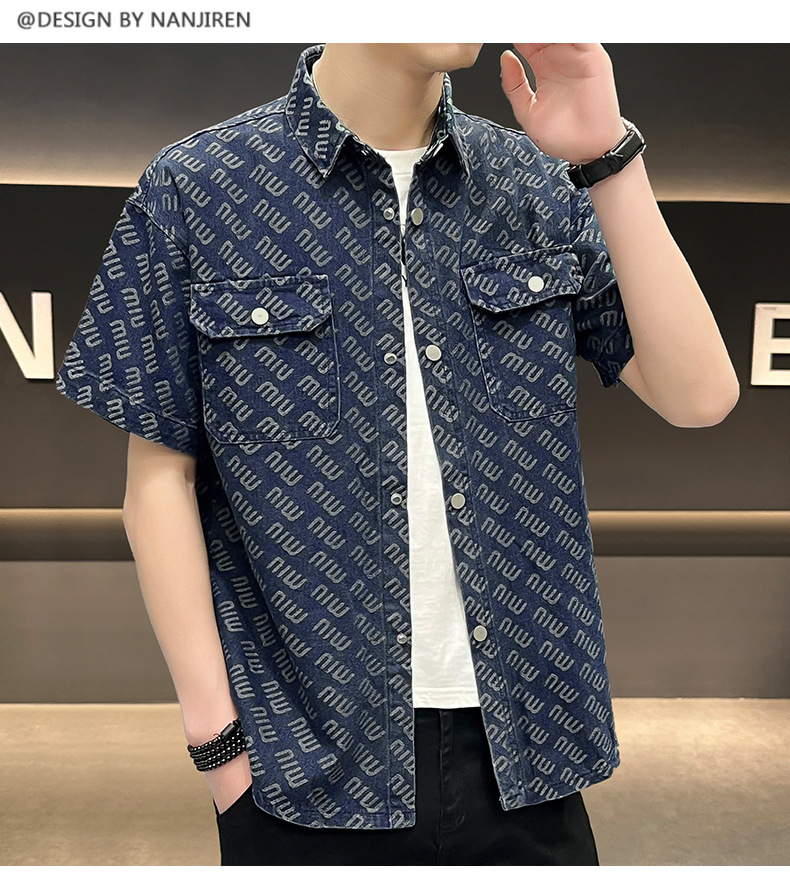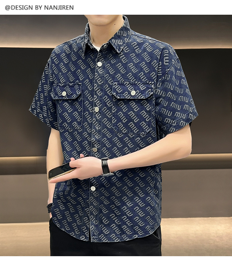 남성용 여름 신작 반팔 데님 셔츠, 루즈하고 트렌디한 브랜드, 멋진 라펠 공예 자수 반소매 셔츠 재킷스토어 가기