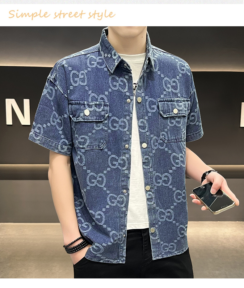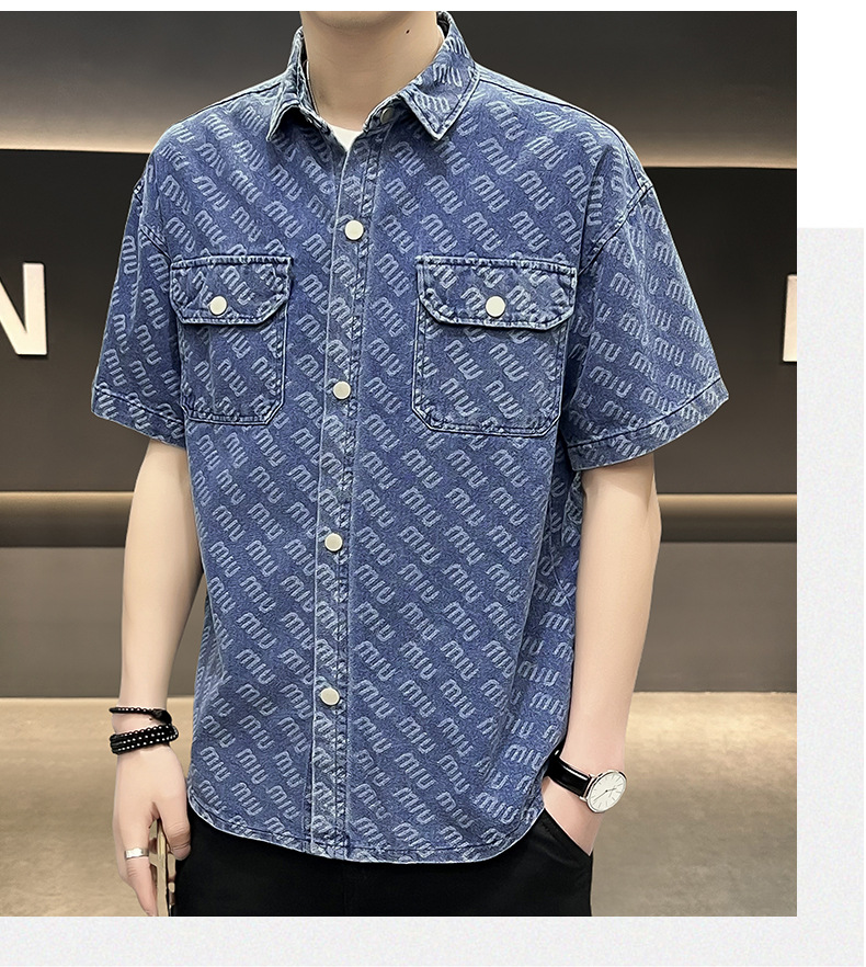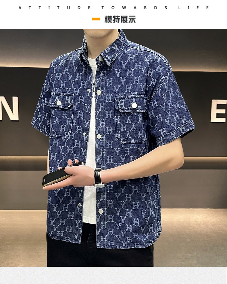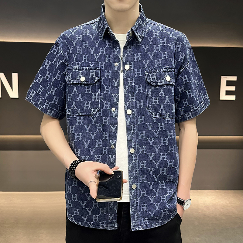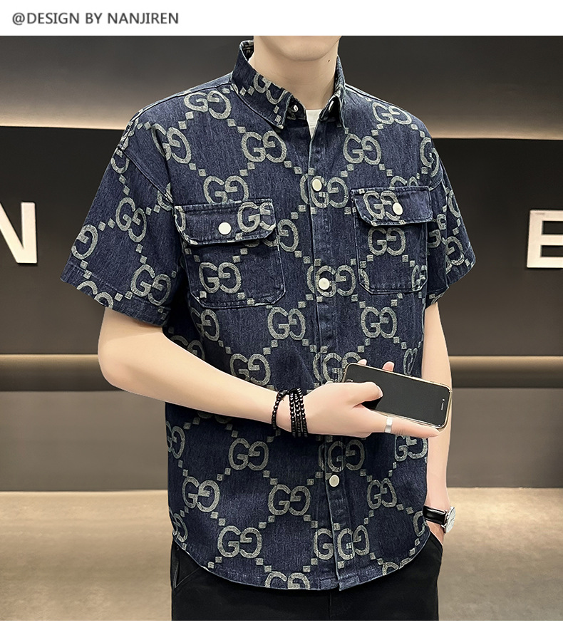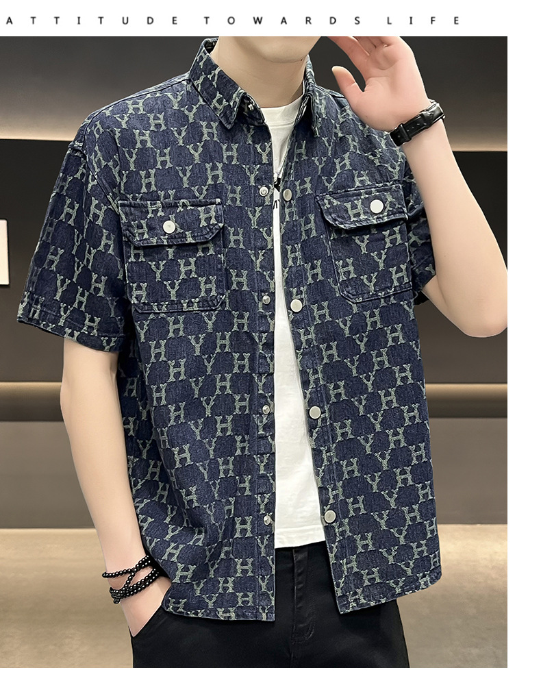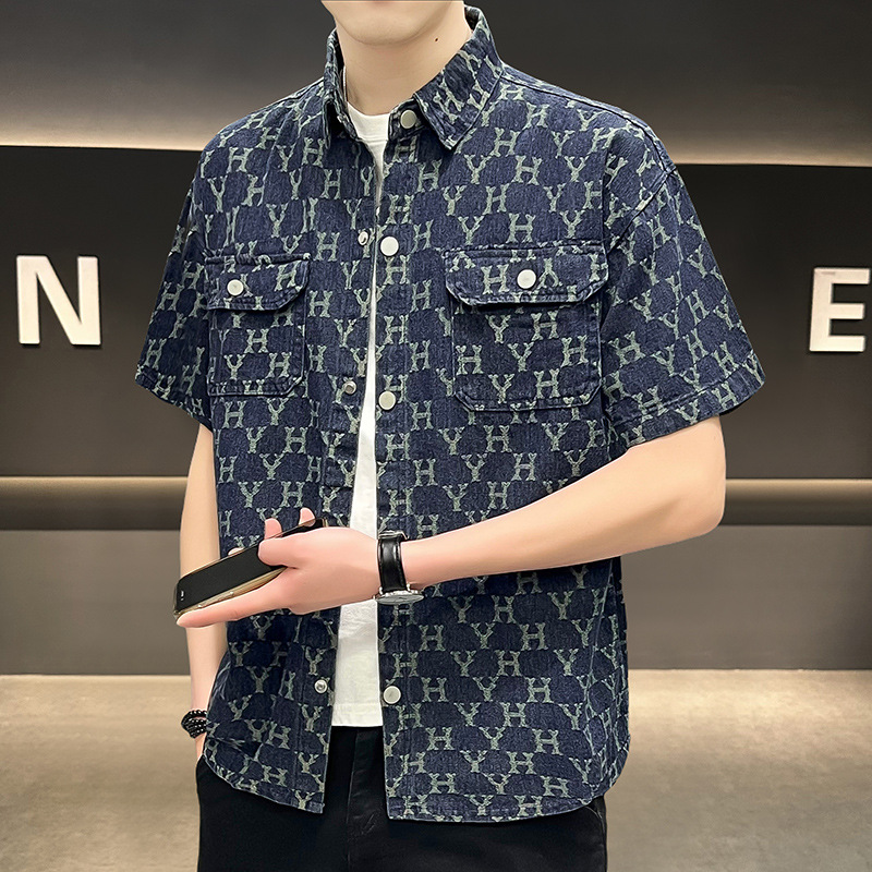 남성용 여름 신작 반팔 데님 셔츠, 루즈하고 트렌디한 브랜드, 멋진 라펠 공예 자수 반소매 셔츠 재킷스토어 가기
