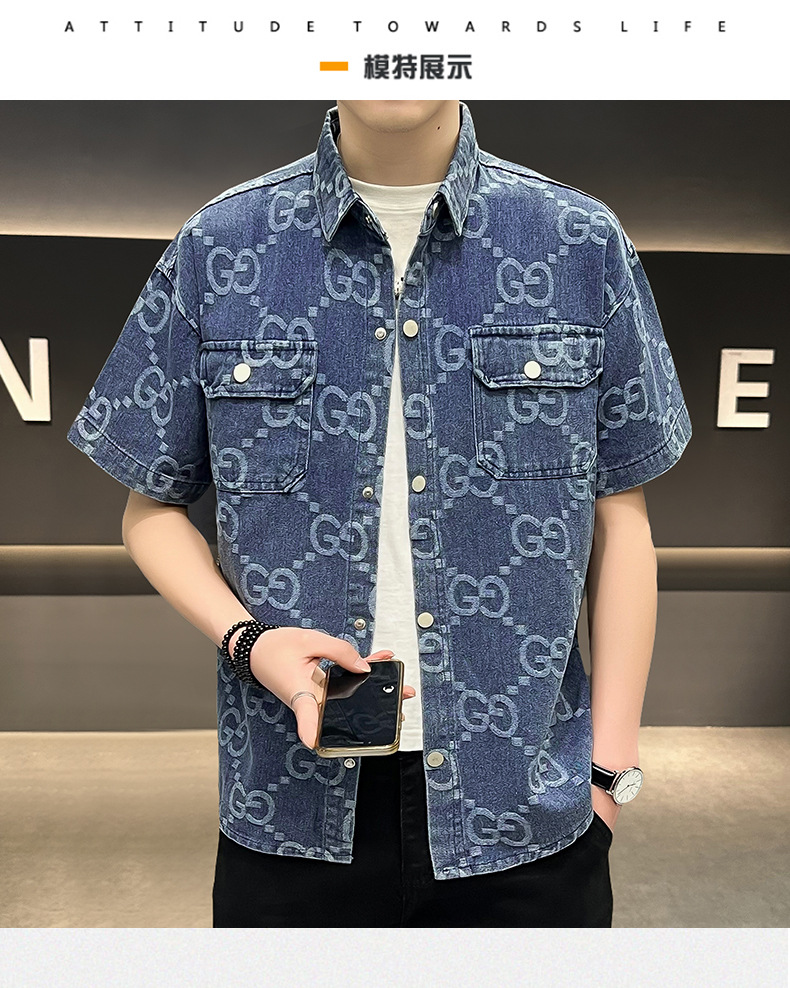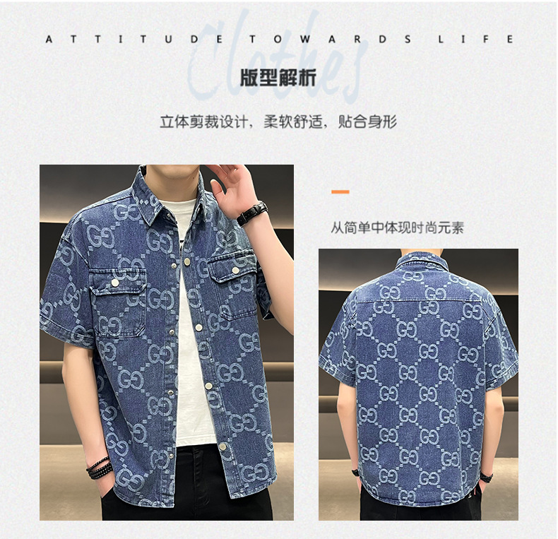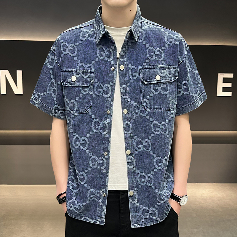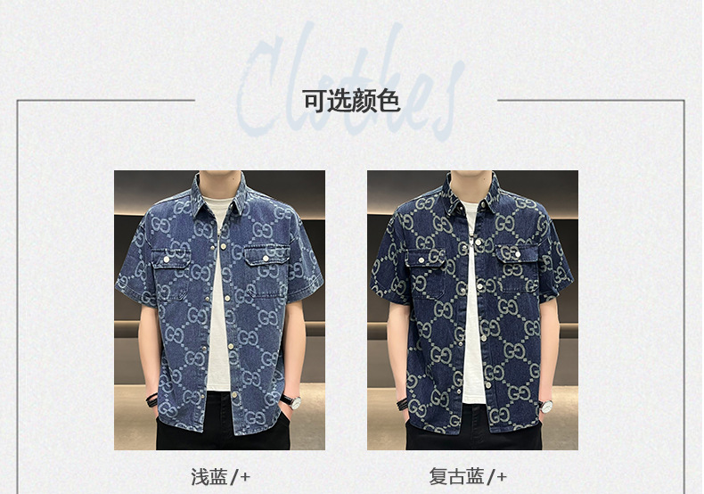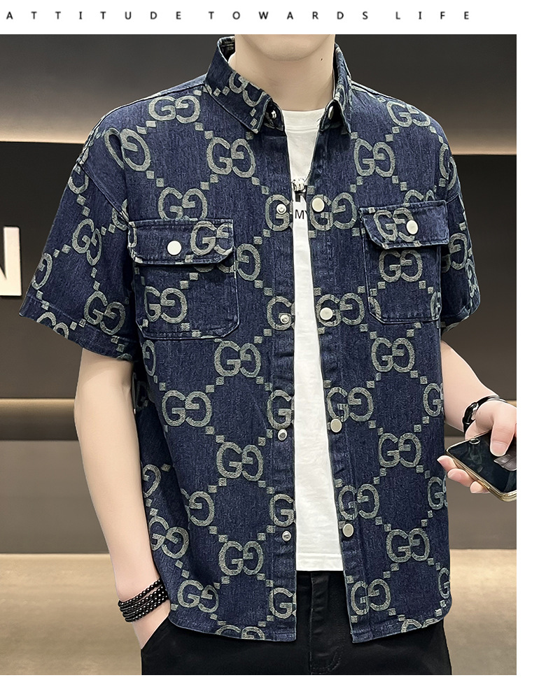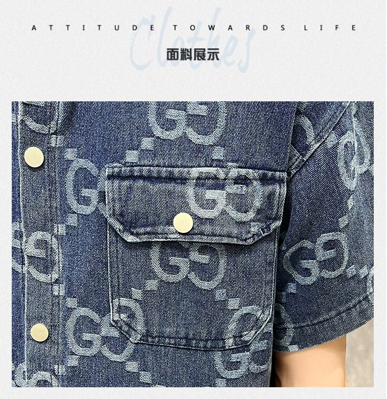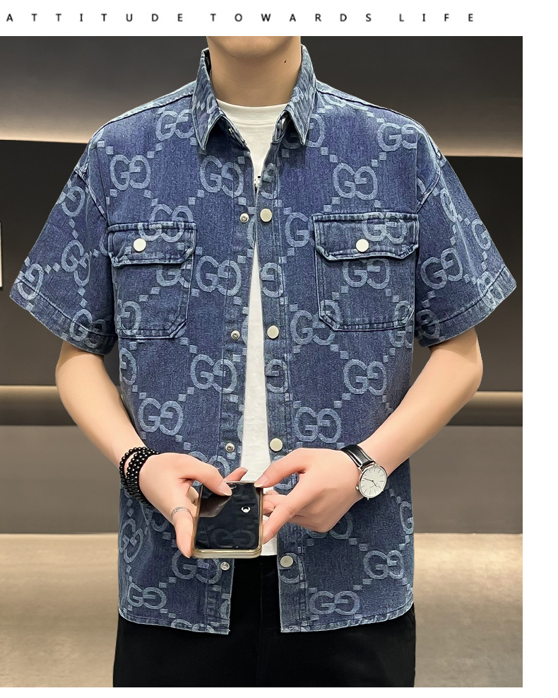 남성용 여름 신작 반팔 데님 셔츠, 루즈하고 트렌디한 브랜드, 멋진 라펠 공예 자수 반소매 셔츠 재킷스토어 가기
