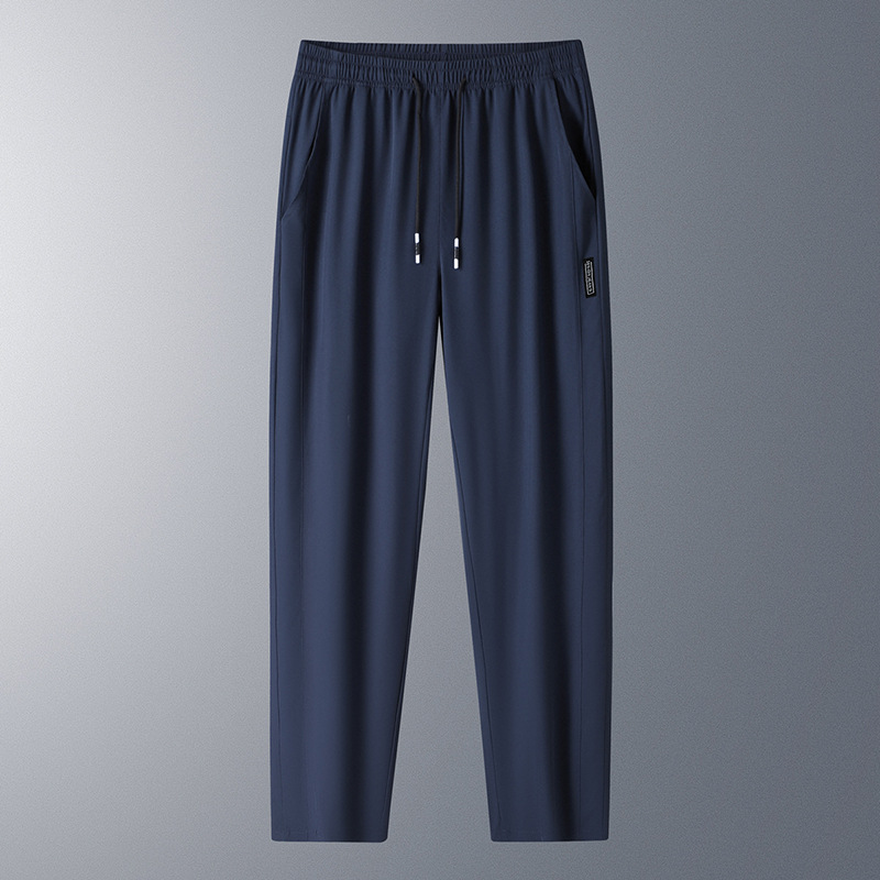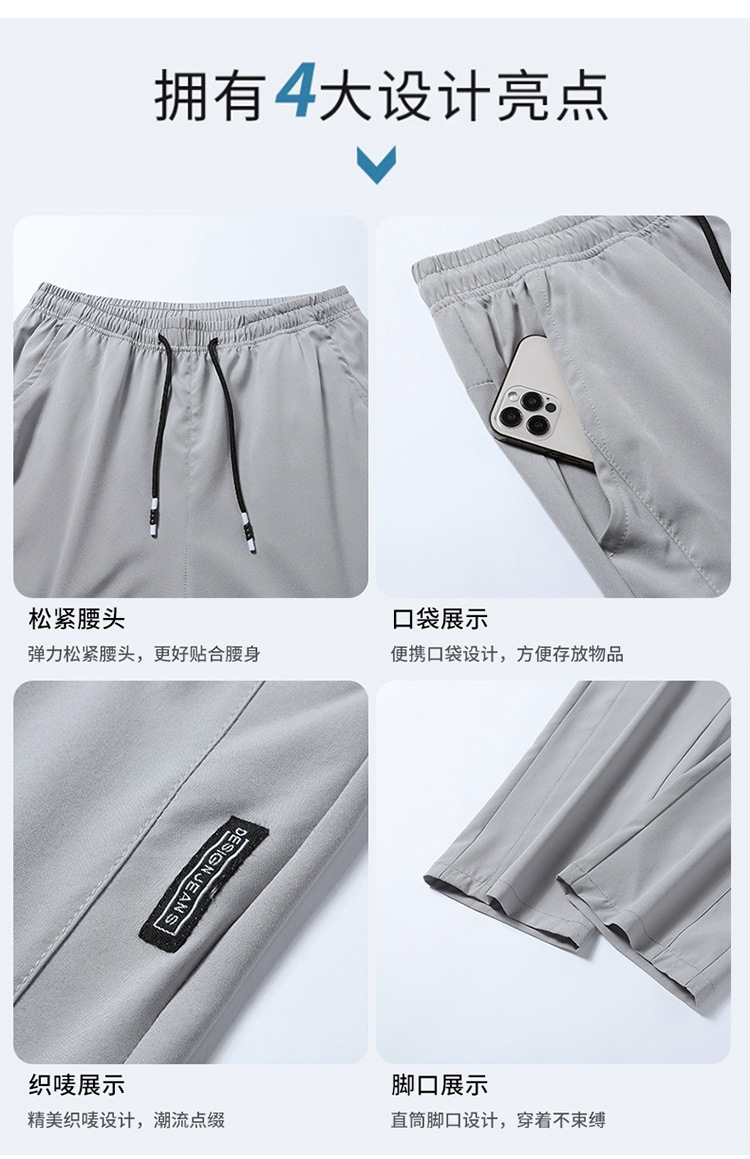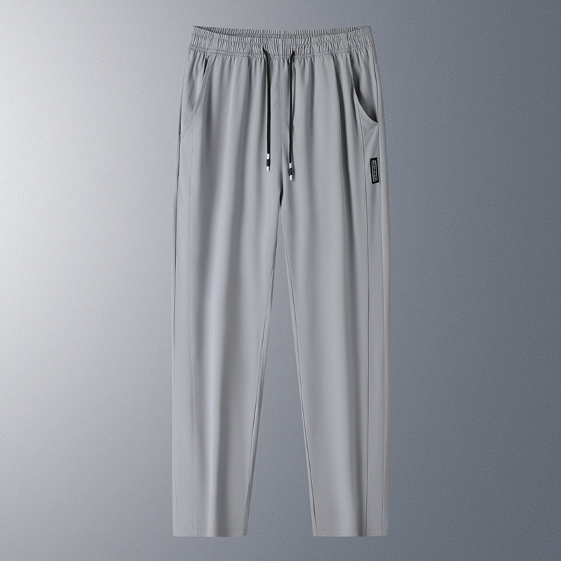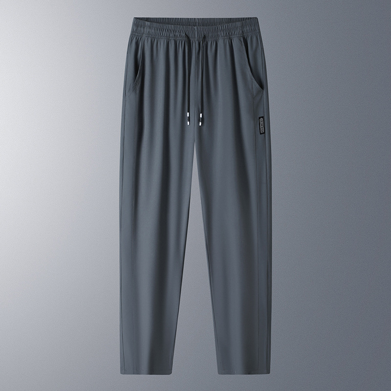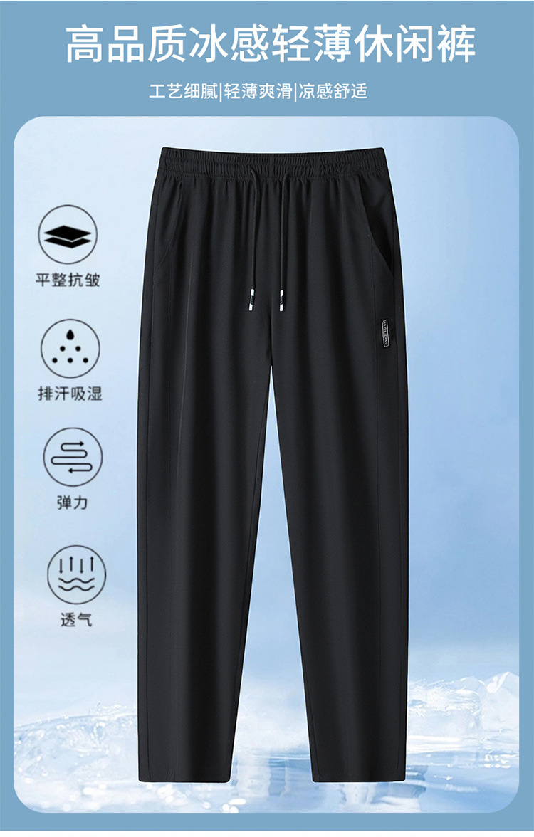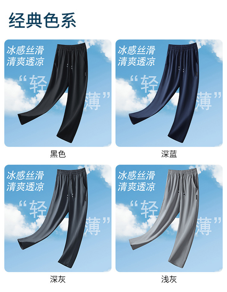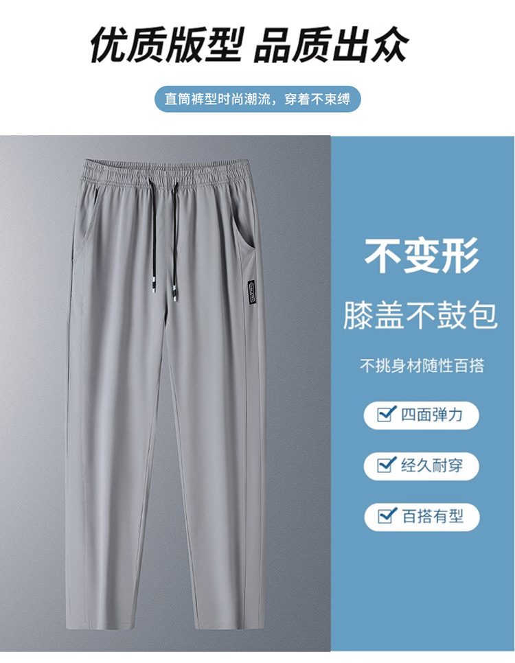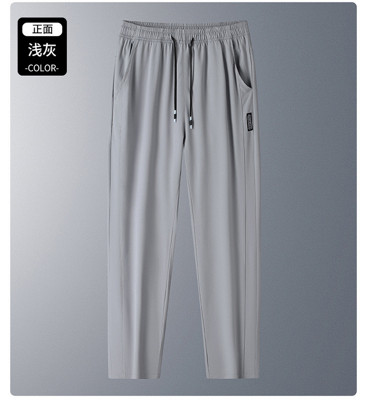 유럽 캐주얼 바지 여름 얇은 남자 바지 플러스 사이즈 스포츠 트렌디 느슨한 올매치 아이스 실크 스트레이트 바지