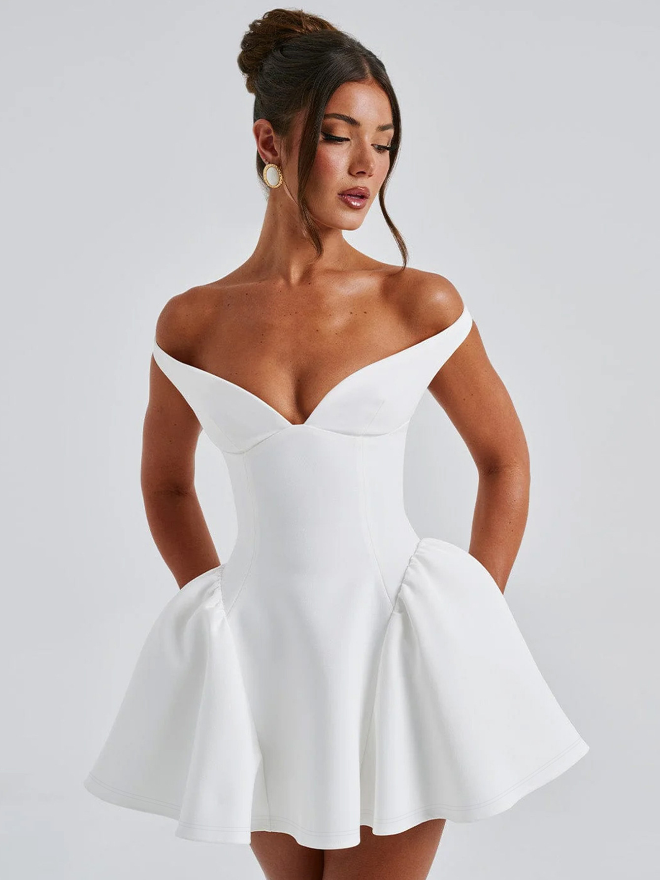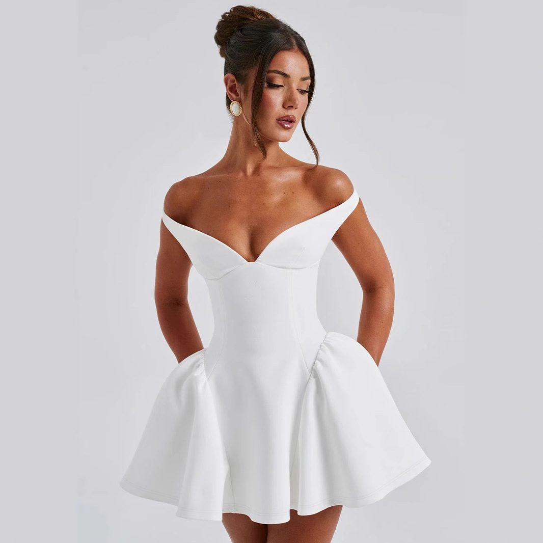 프랑스 스타일 유럽과 미국의 뜨거운 판매 봄과 여름 여성 솔리드 컬러 딥 V 백리스 패션 파티 기질 섹시한 슬림 드레스