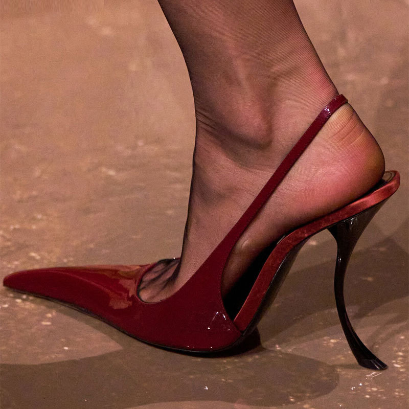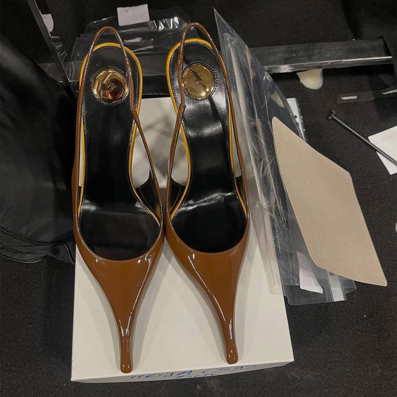 유럽 및 미국 무역 봄 여름 신상 레트로 스타일 여성용 하이힐 뾰족코 오픈백 빅사이즈 구두