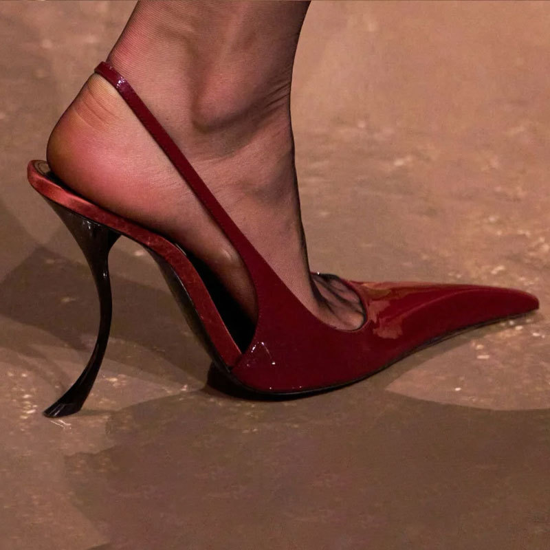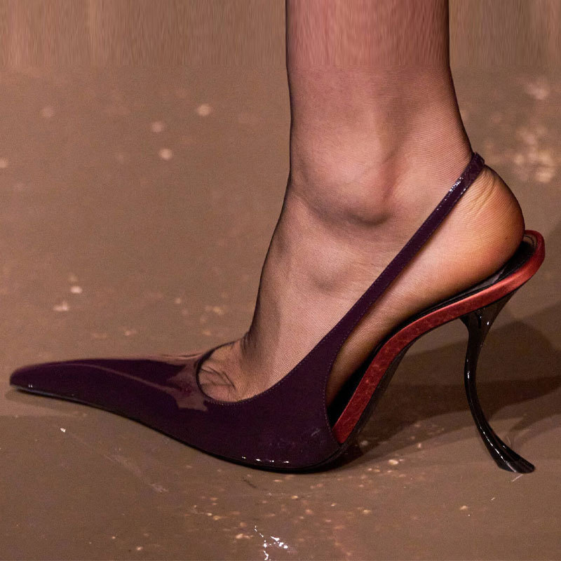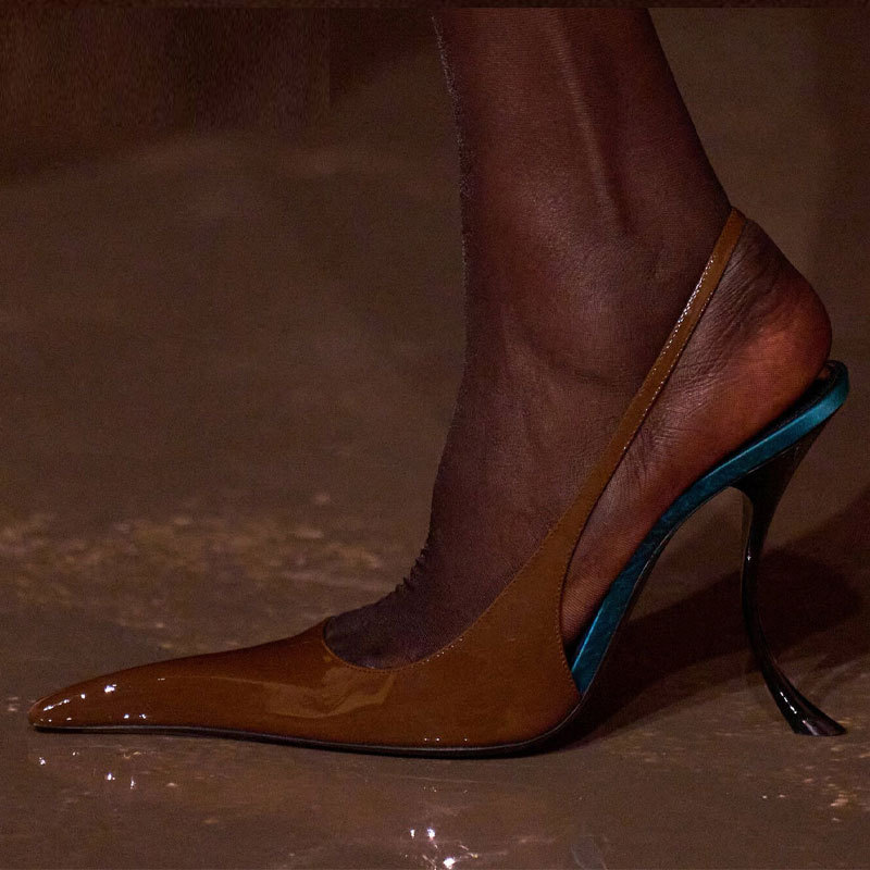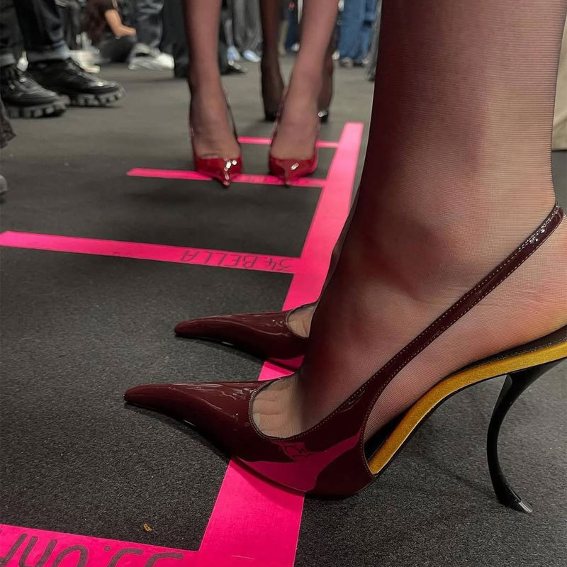 유럽 및 미국 무역 봄 여름 신상 레트로 스타일 여성용 하이힐 뾰족코 오픈백 빅사이즈 구두스토어 가기