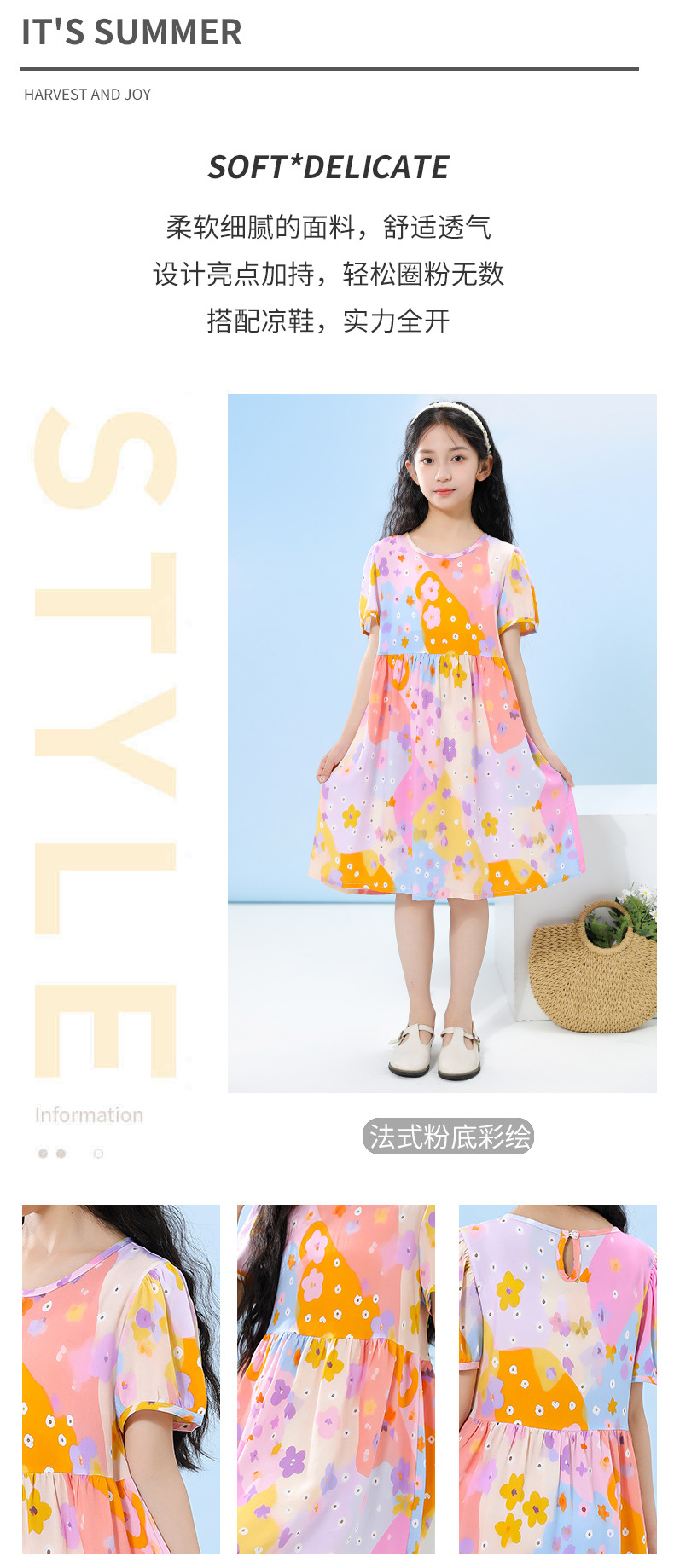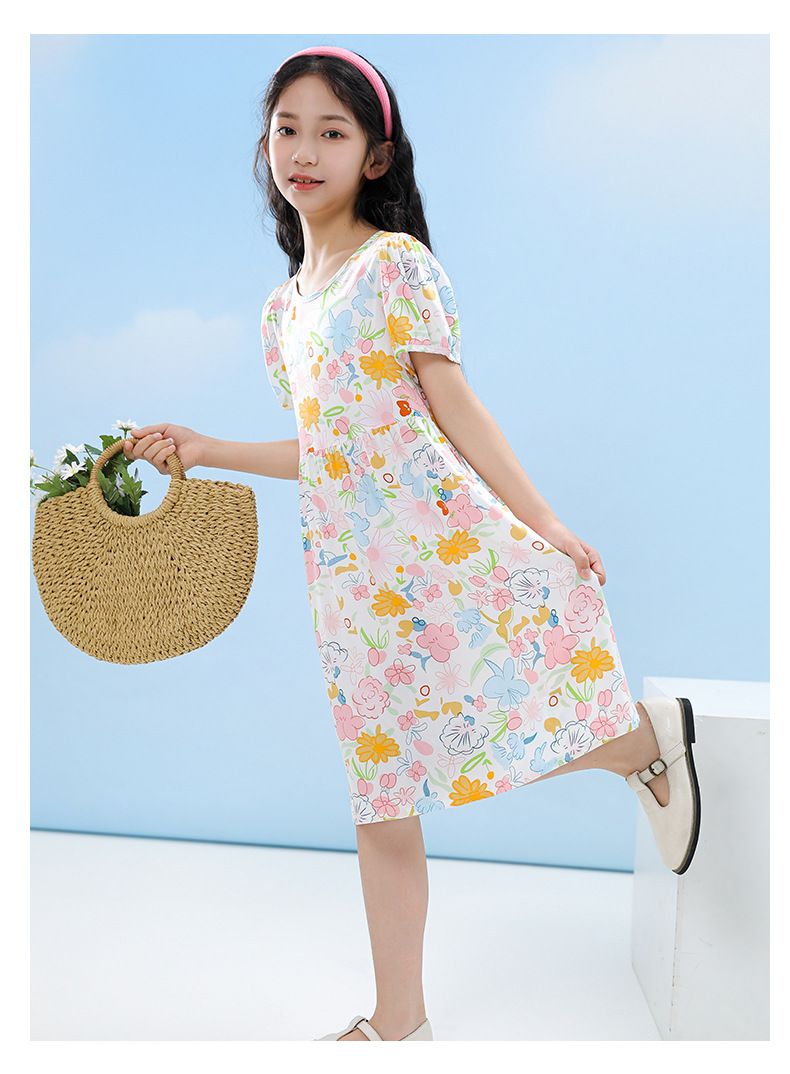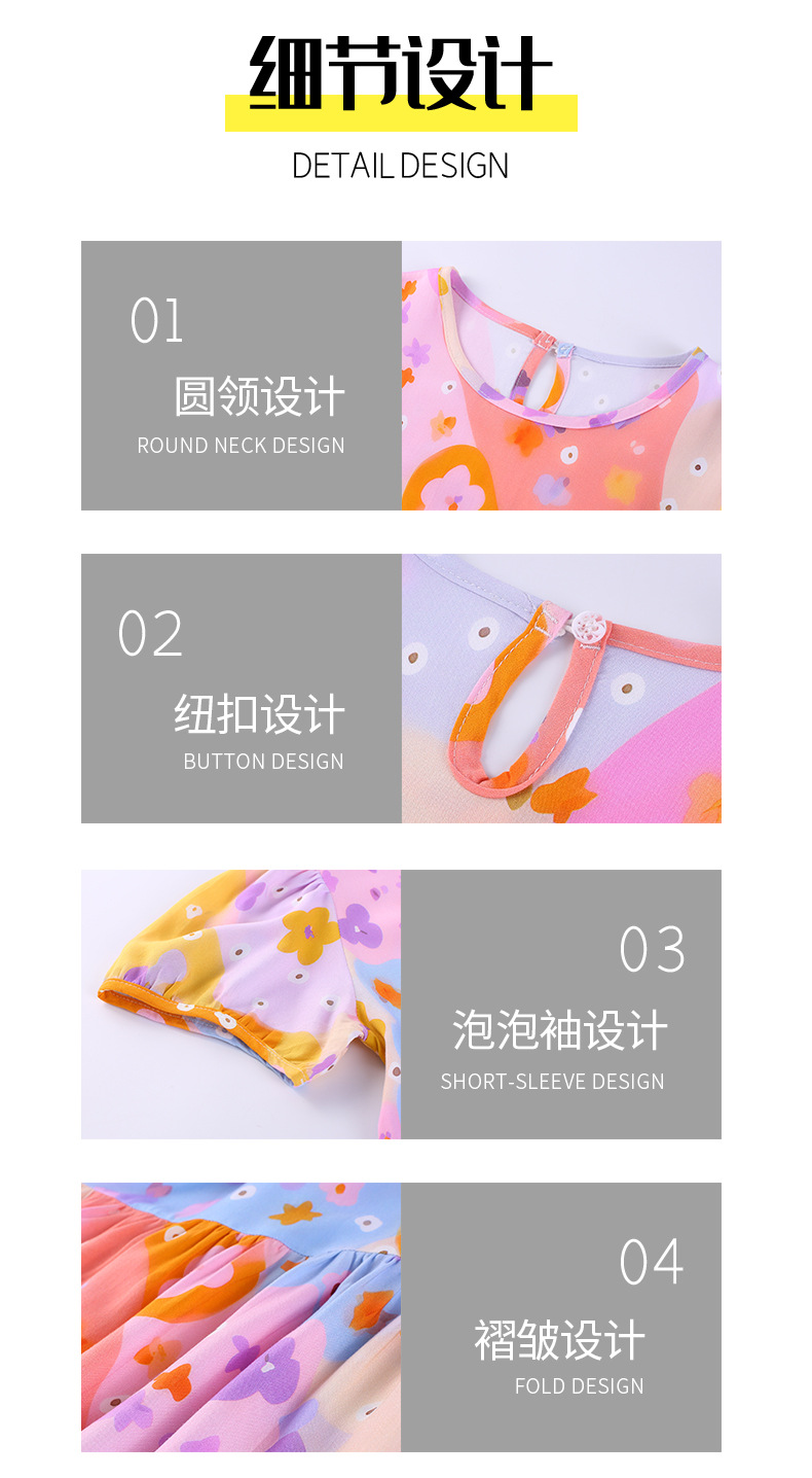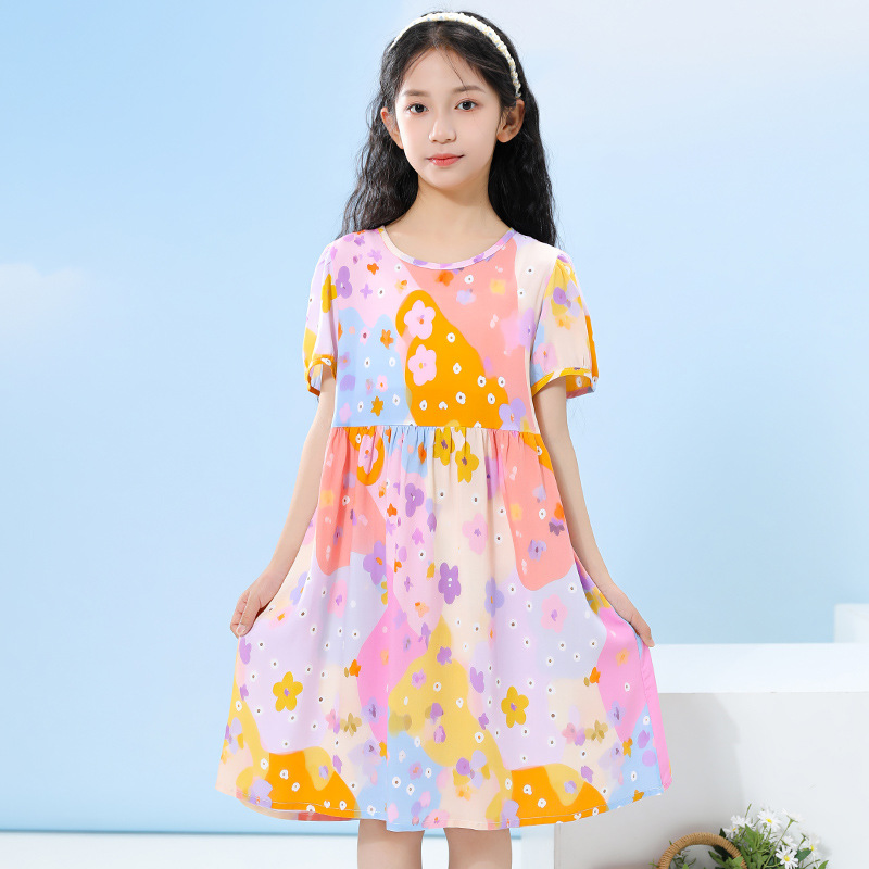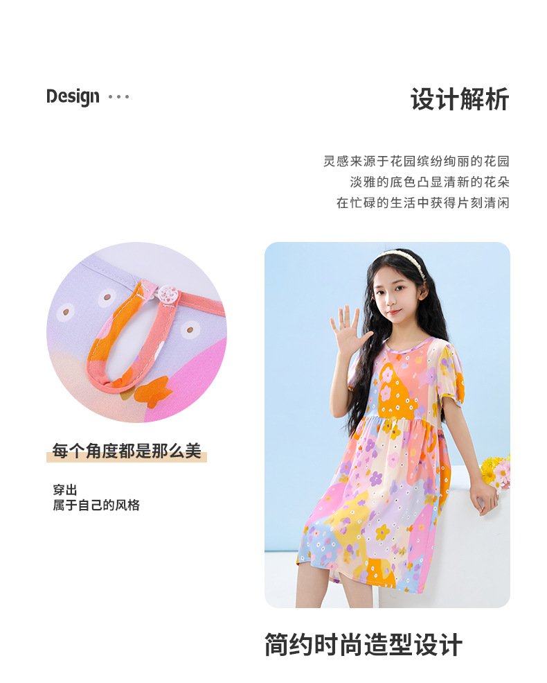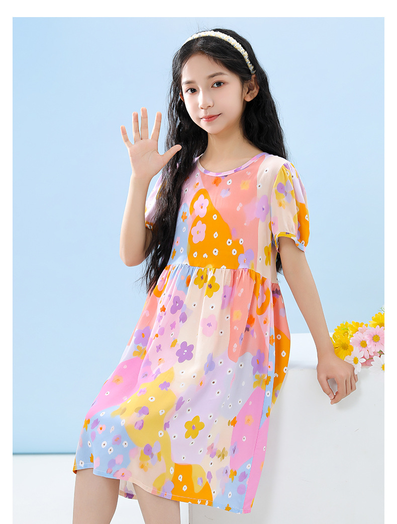 여름 어린이 페인트 퍼프 슬리브 드레스 2025 중대형 소녀 라운드 넥 통기성 반팔 꽃 공주 드레스스토어 가기