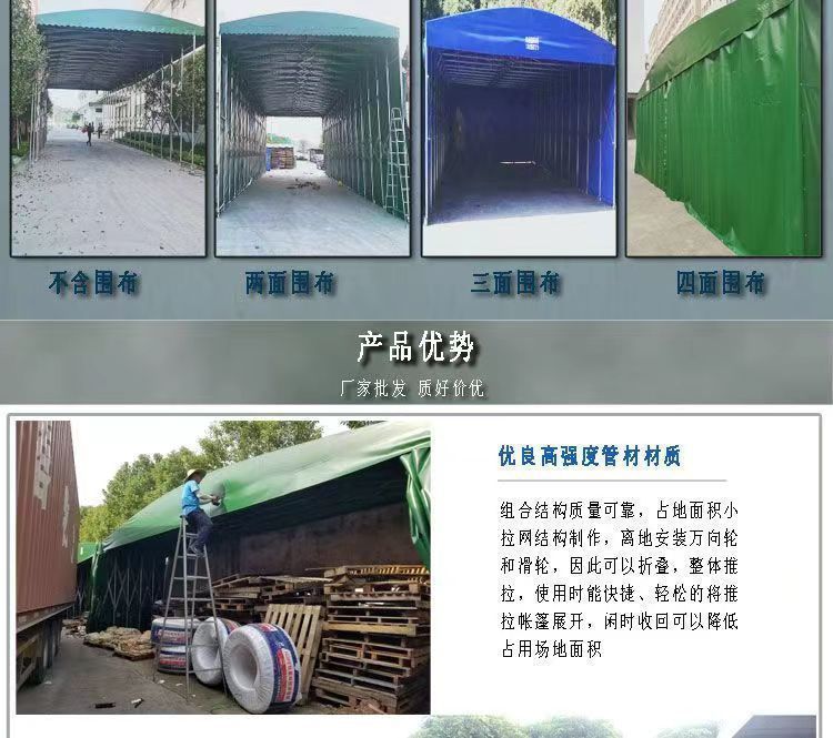 두꺼운 야외 푸시 풀 캐노피 모바일 개폐식 차양 야시장 창고 주차 창고 활동 창고 레인 쉼터 텐트