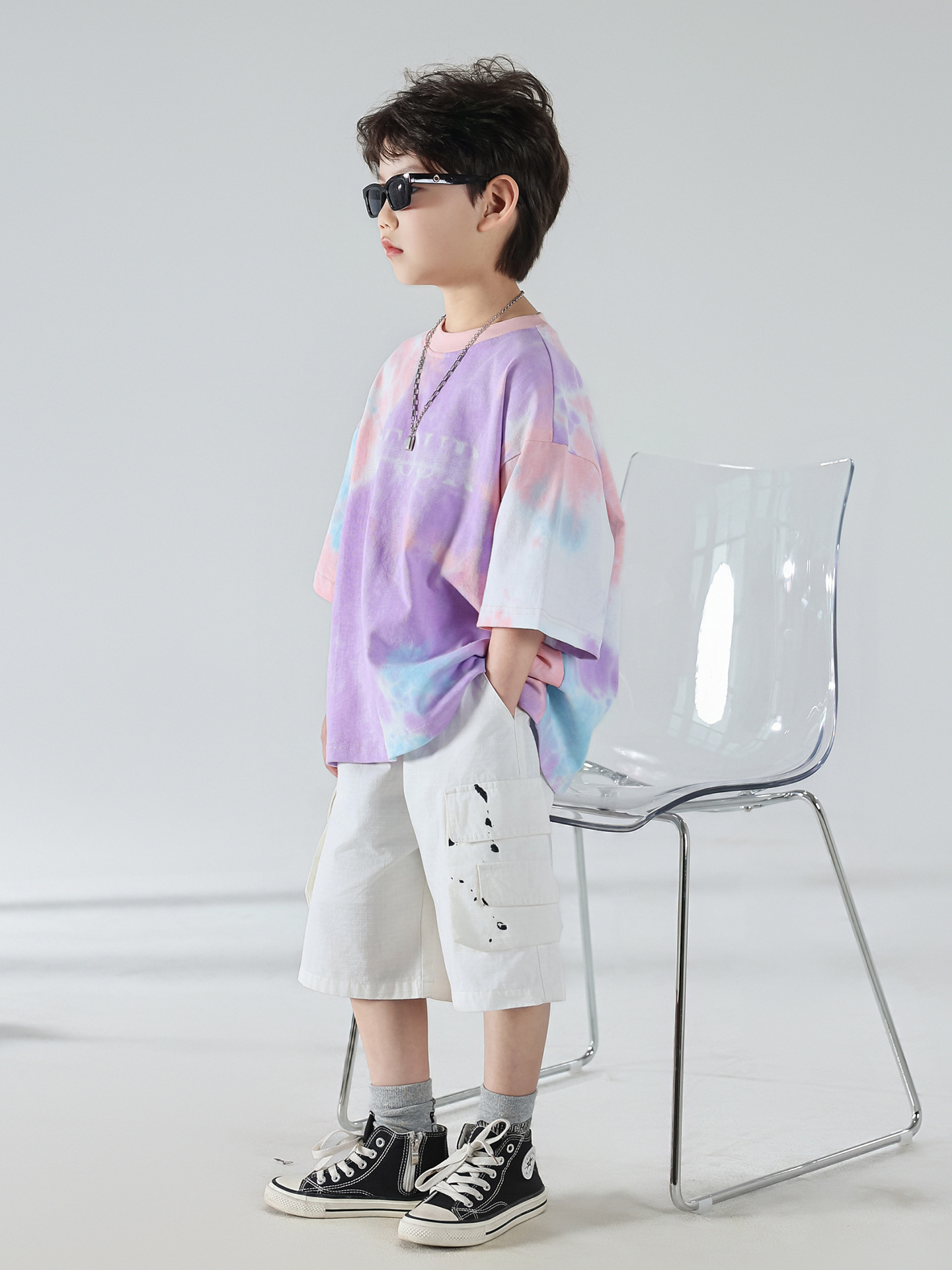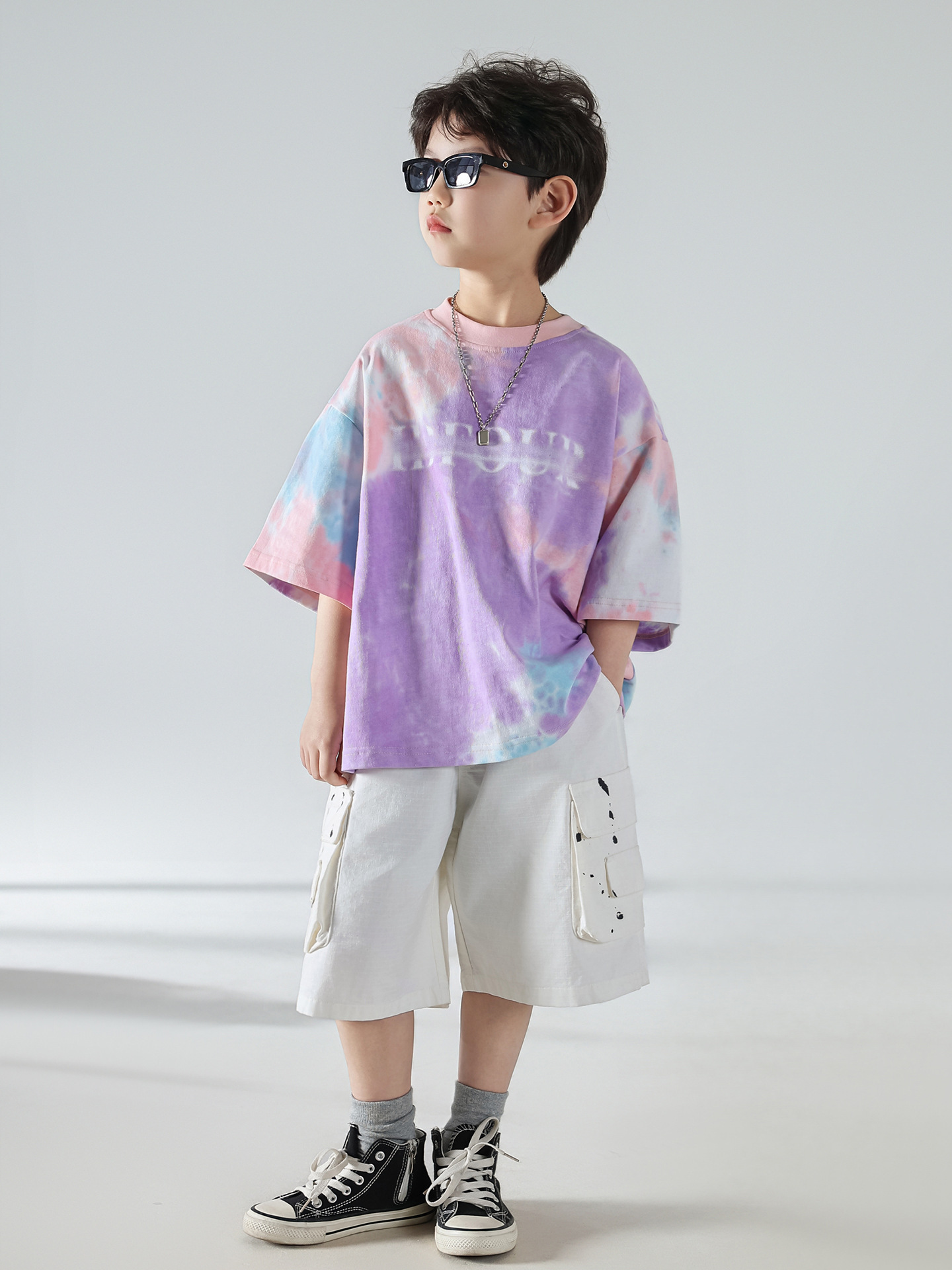 남학생 여름 반소매 세트 어린이 여름 한국식 2025 새 5 점 캐주얼 바지 유행 아동복
