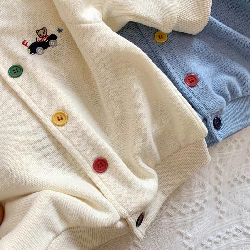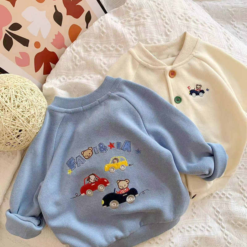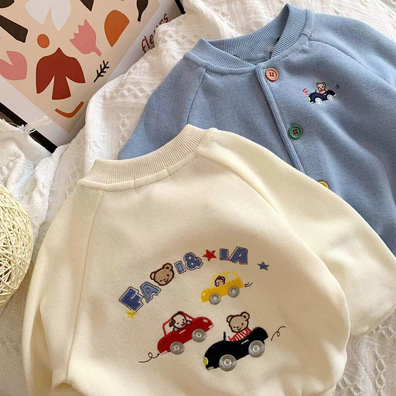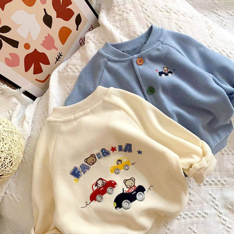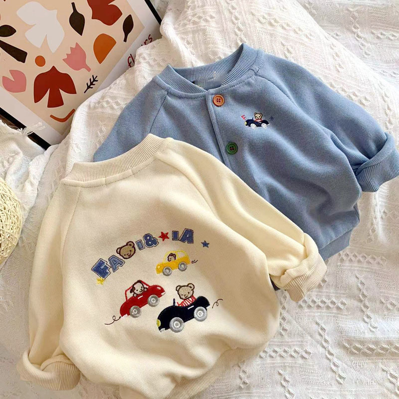 일본 미키 봄 새 소년 만화 곰 자동차 자수 재킷 아기 어린이 니트 카디건스토어 가기