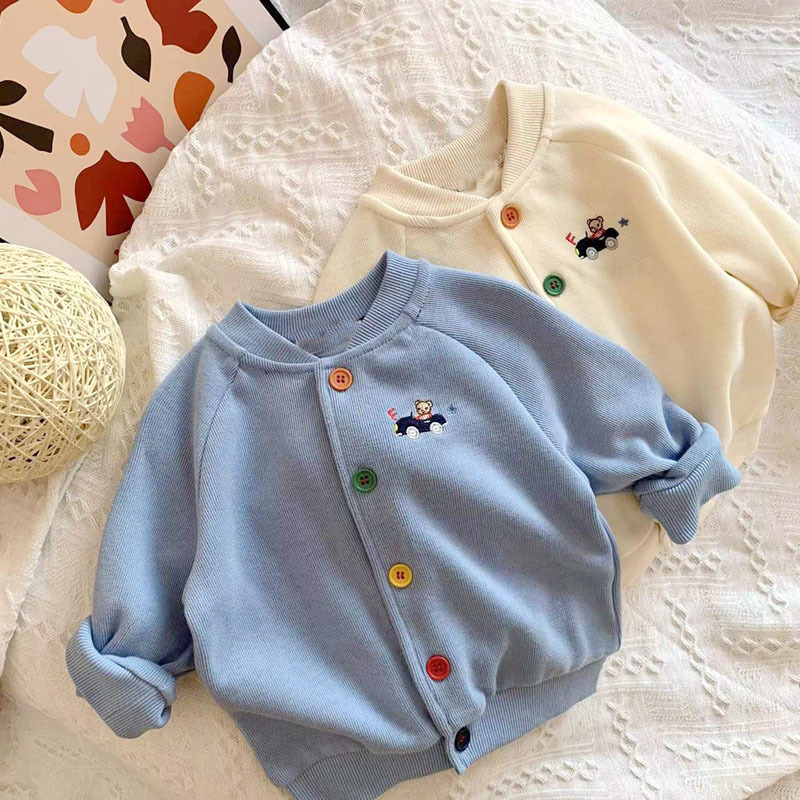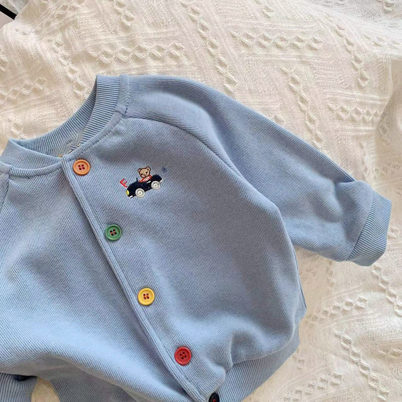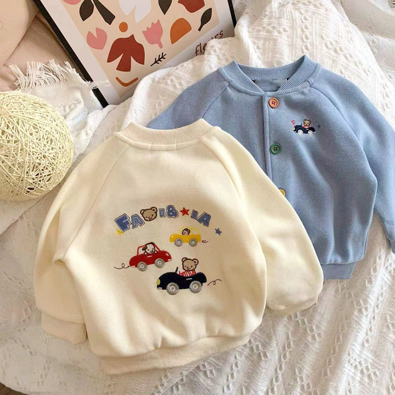 일본 미키 봄 새 소년 만화 곰 자동차 자수 재킷 아기 어린이 니트 카디건