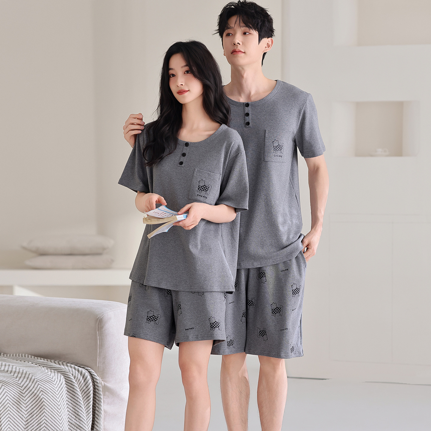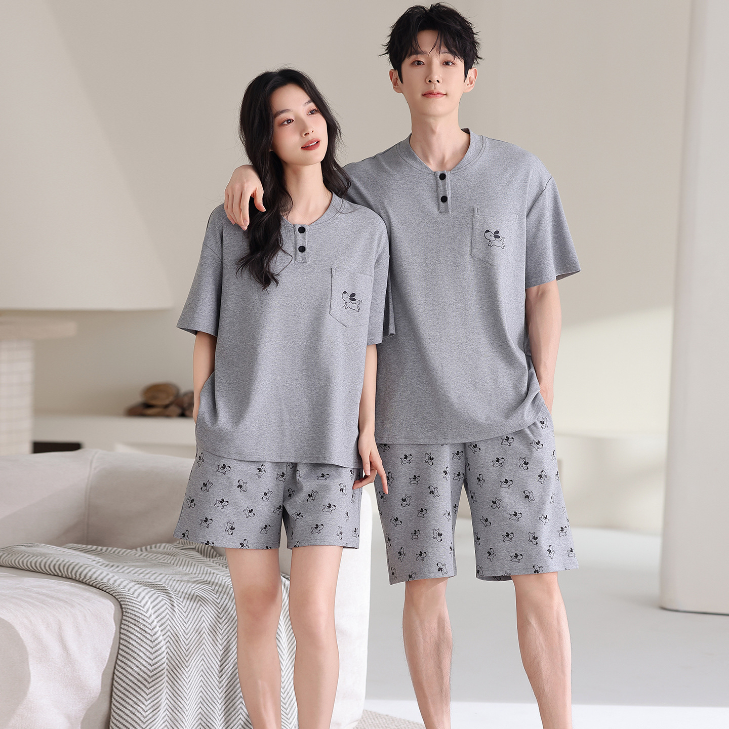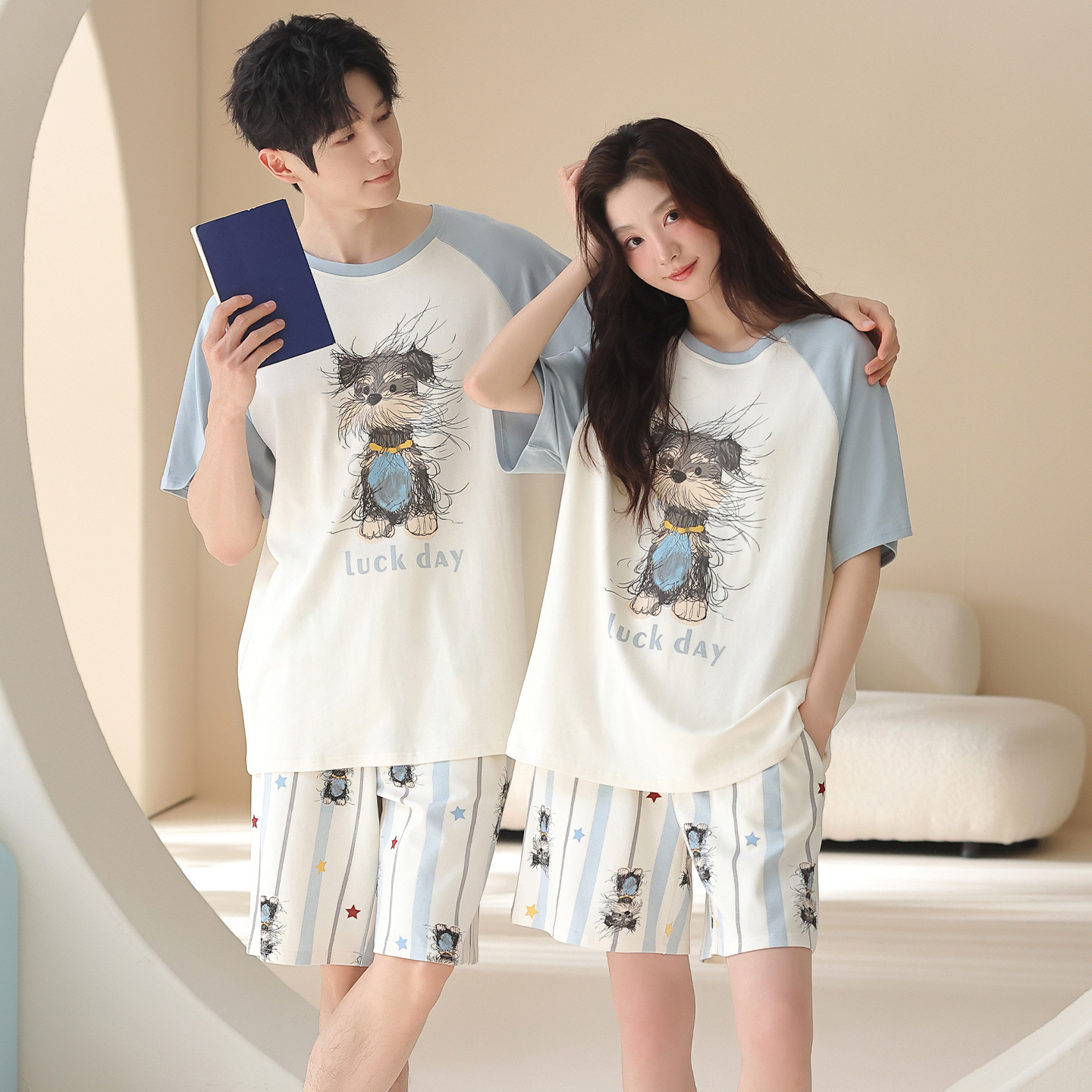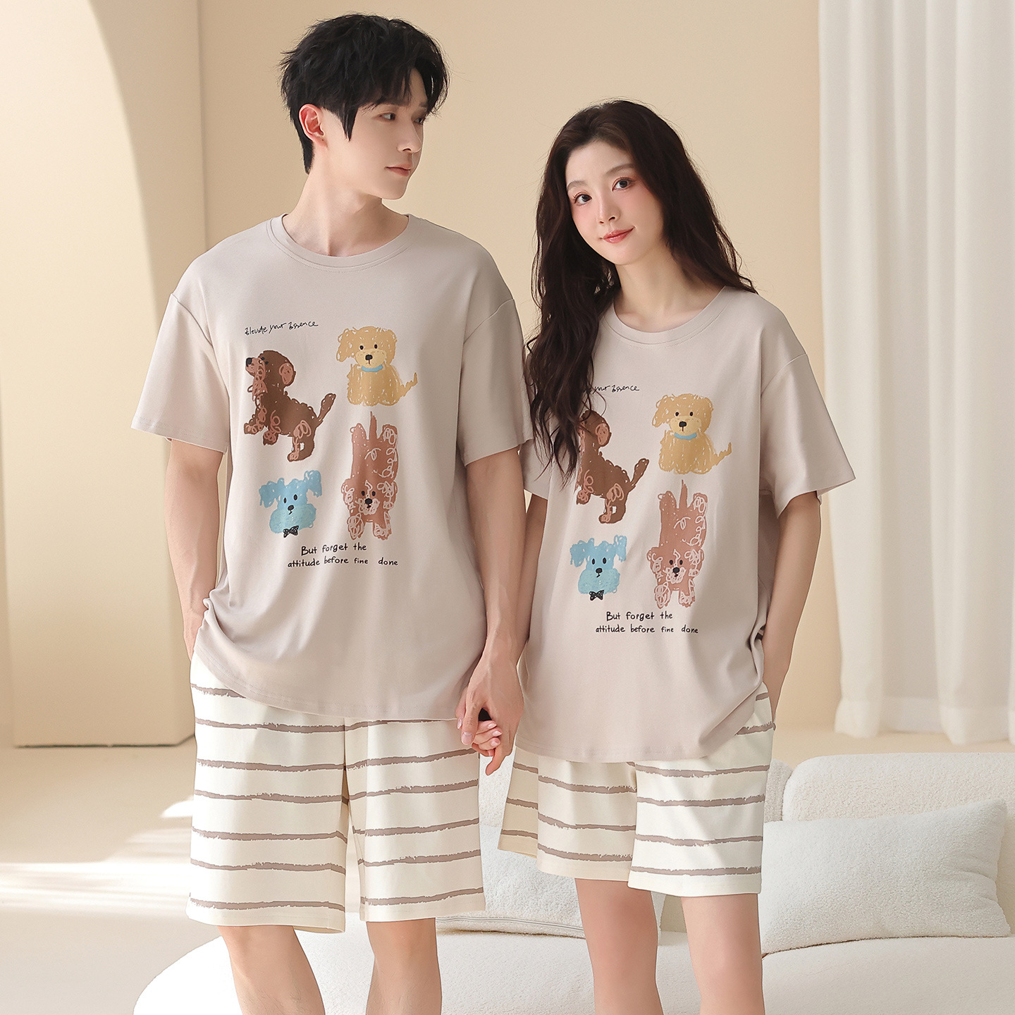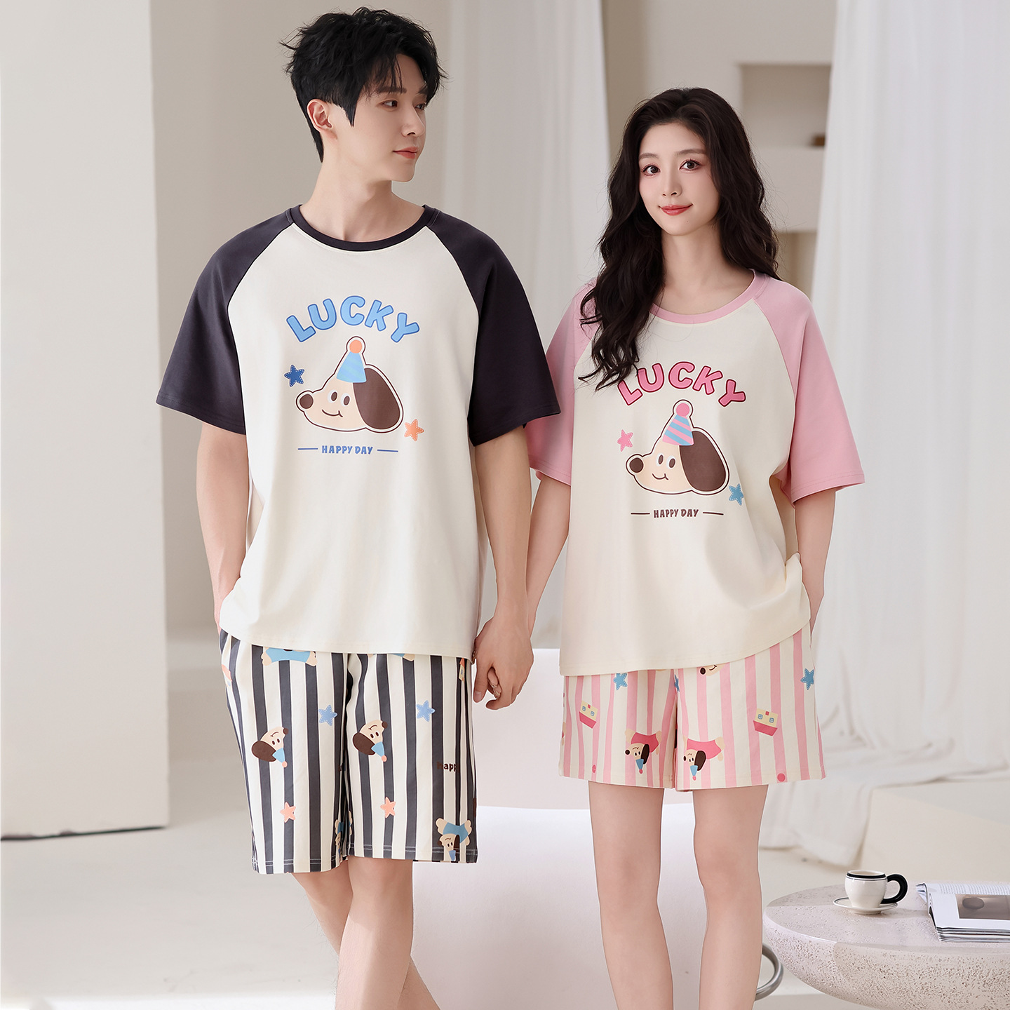 Ins 스타일 만화 반팔 반바지 커플 잠옷 여름 십대 여성 및 남성 느슨한 캐주얼 홈 옷스토어 가기