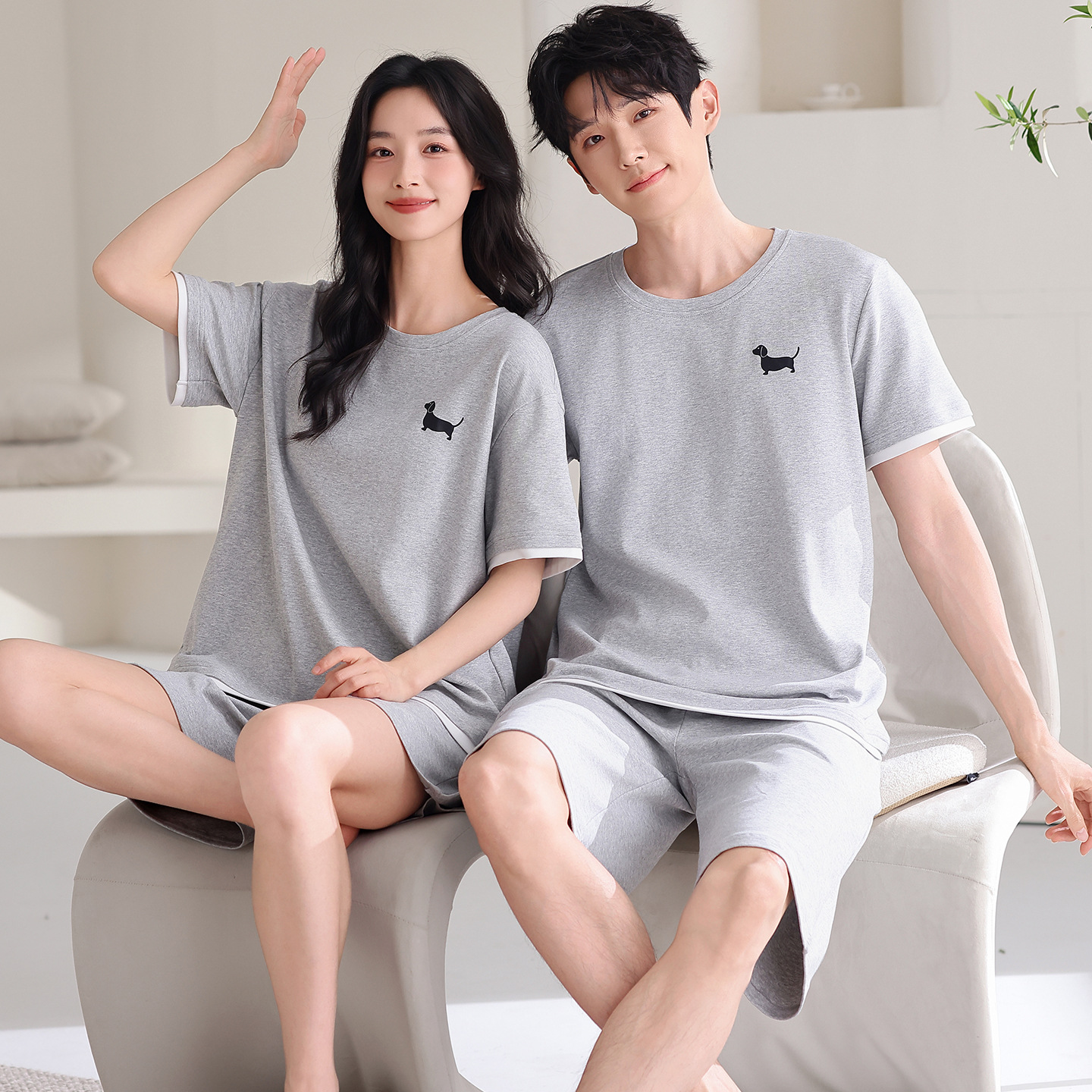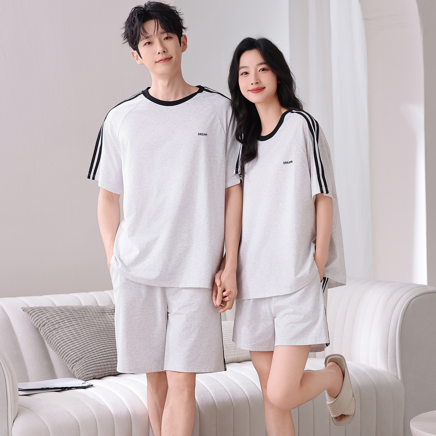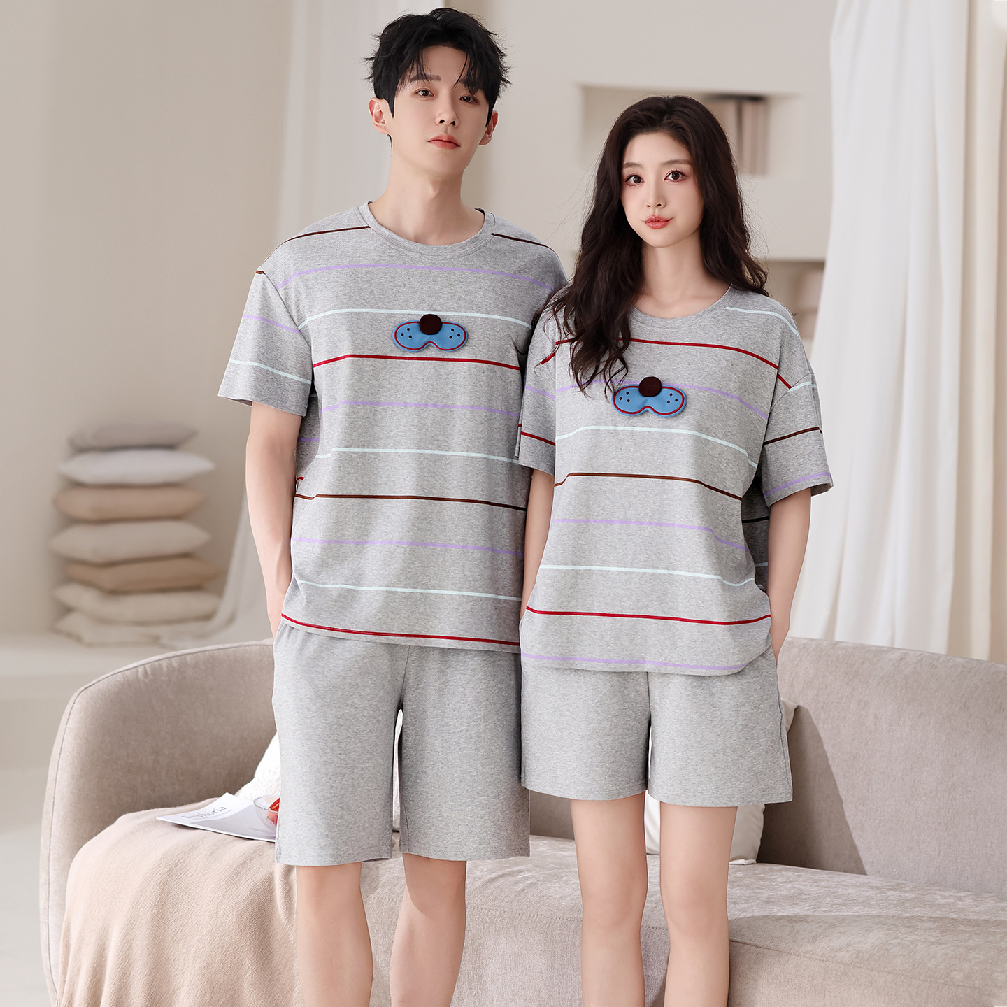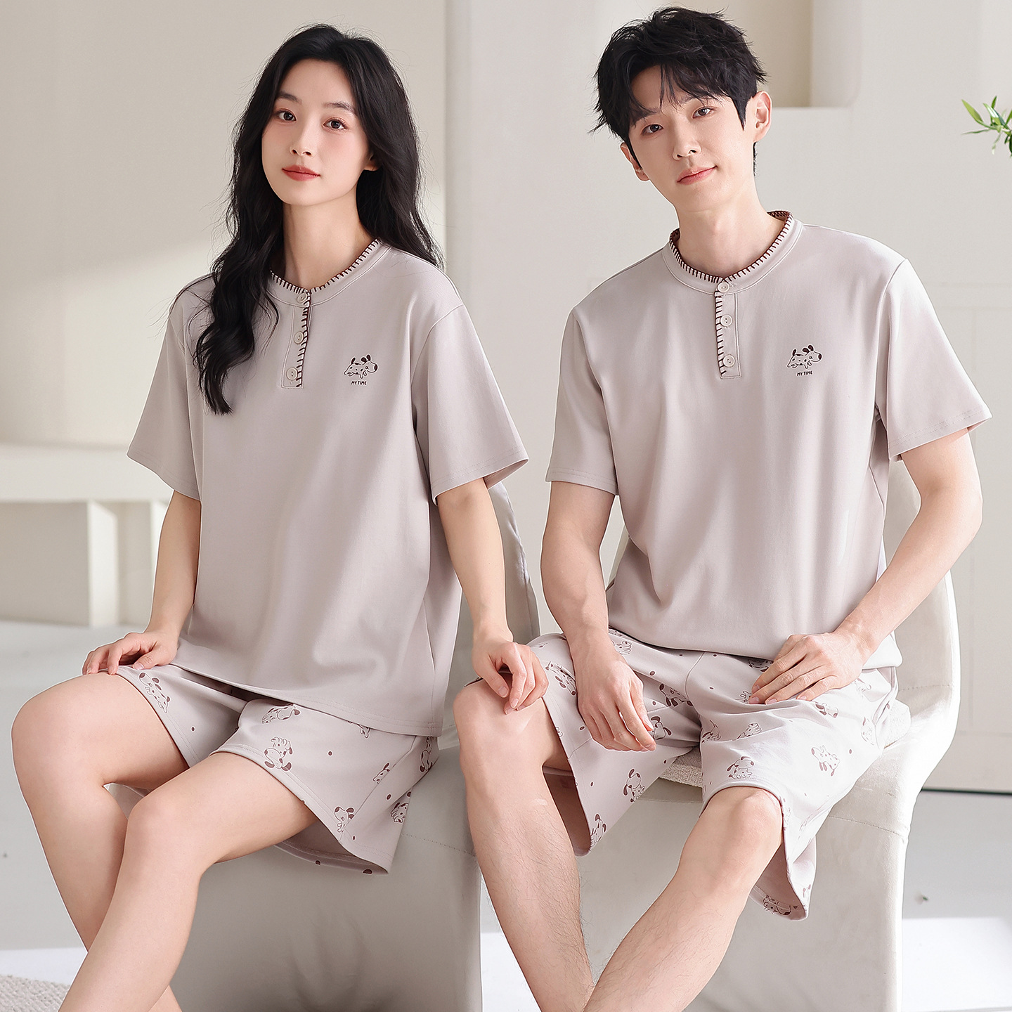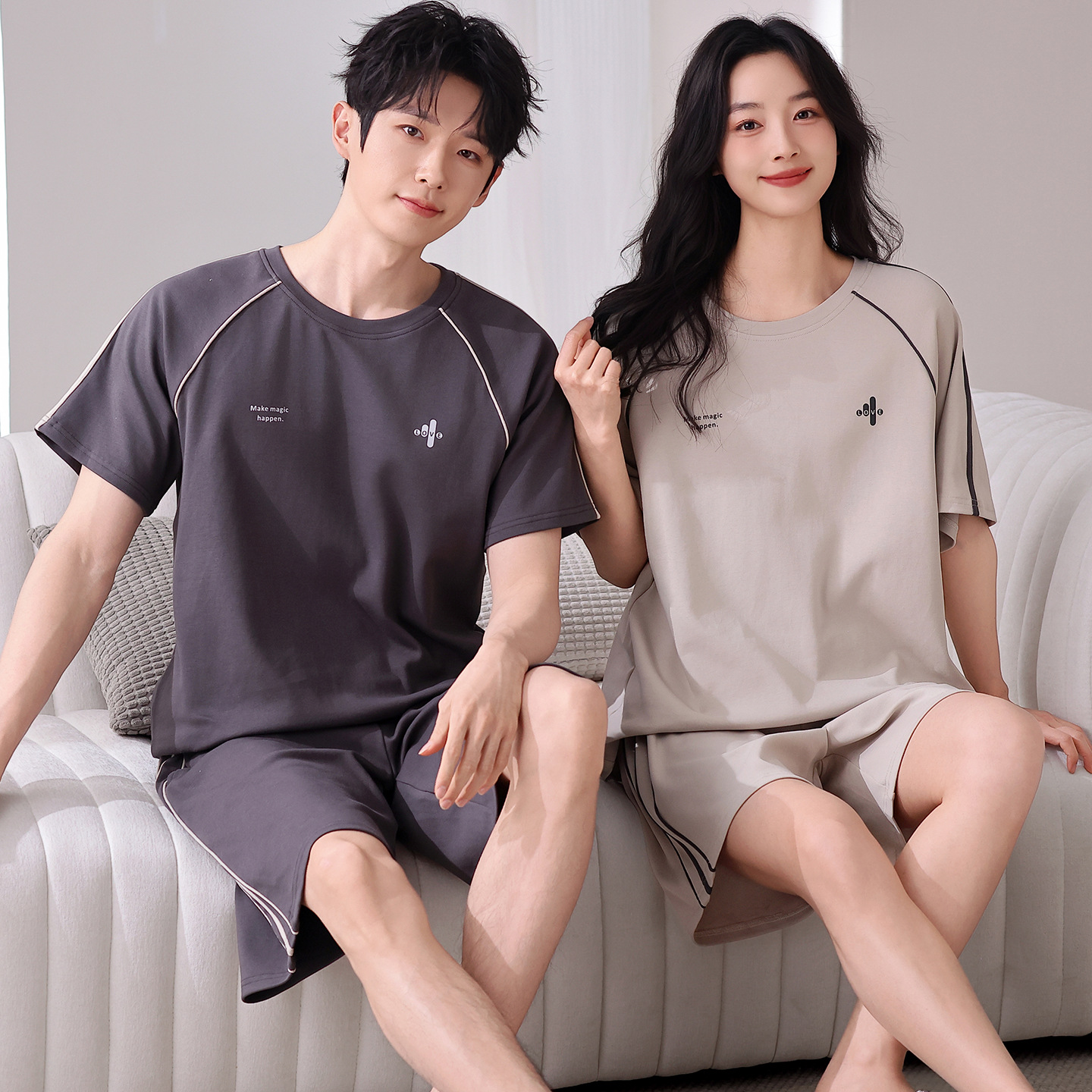 Ins 스타일 만화 반팔 반바지 커플 잠옷 여름 십대 여성 및 남성 느슨한 캐주얼 홈 옷스토어 가기