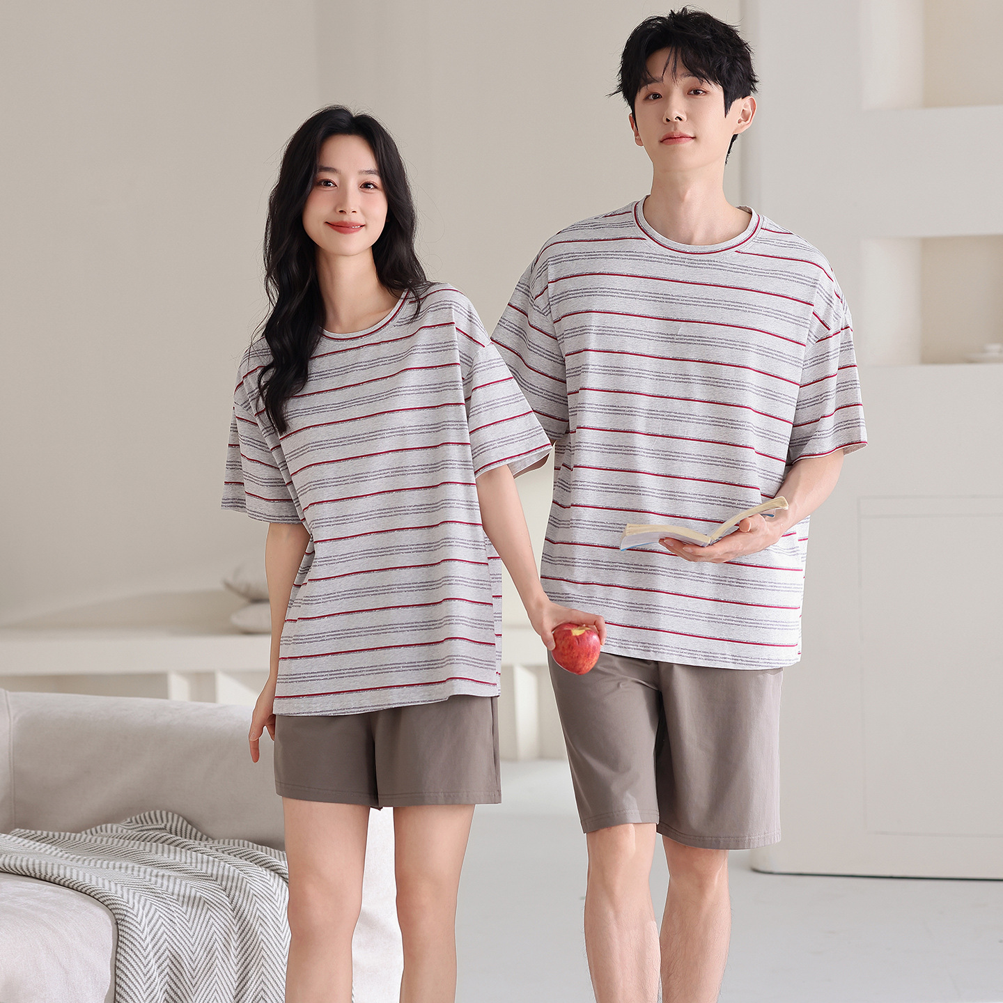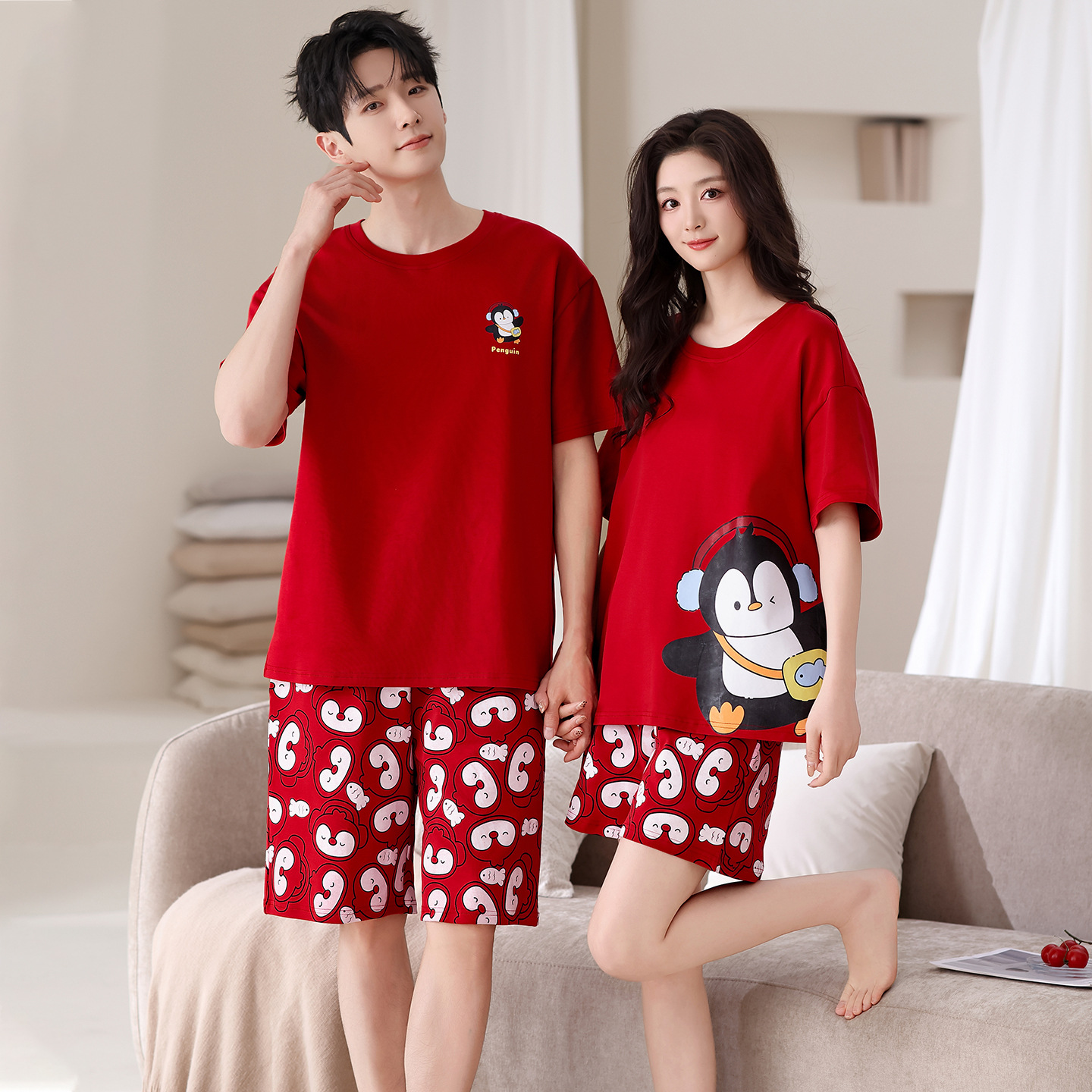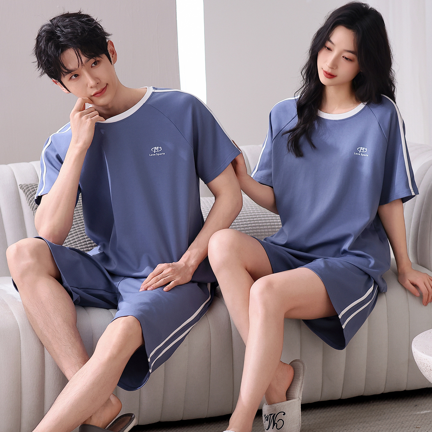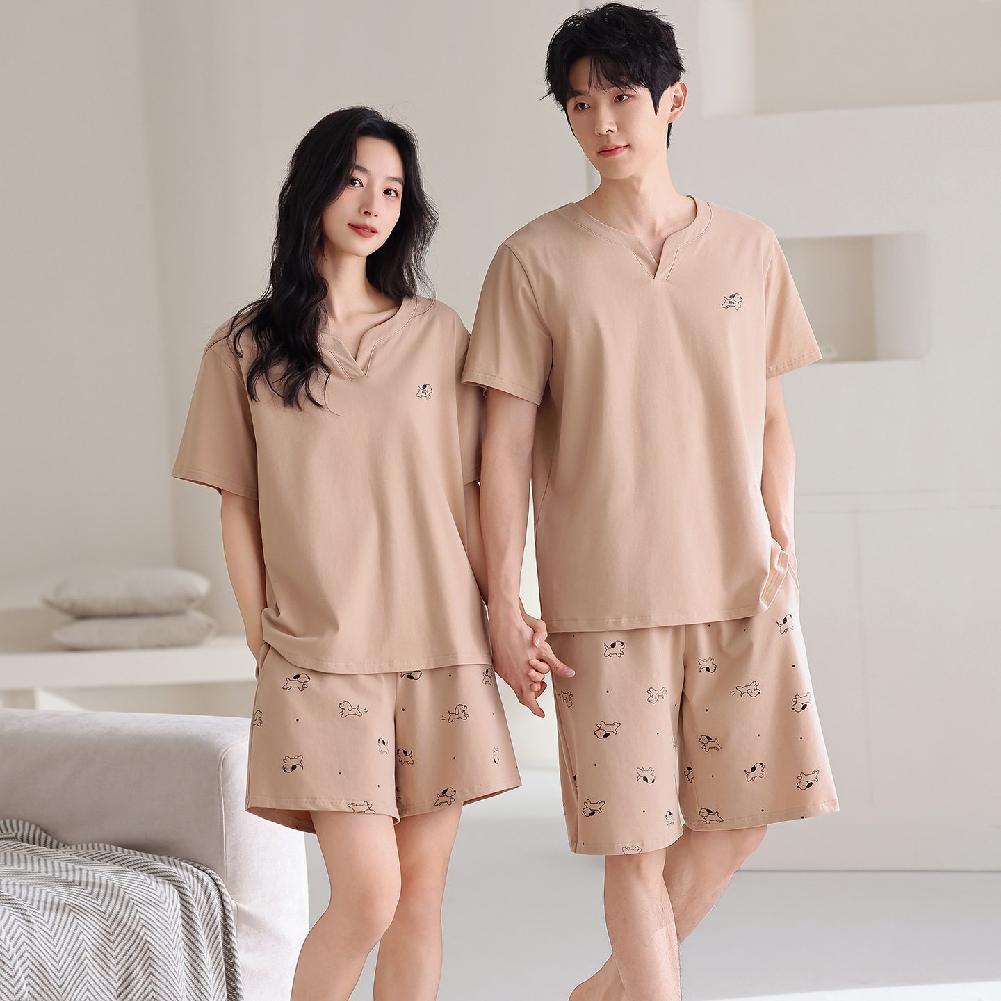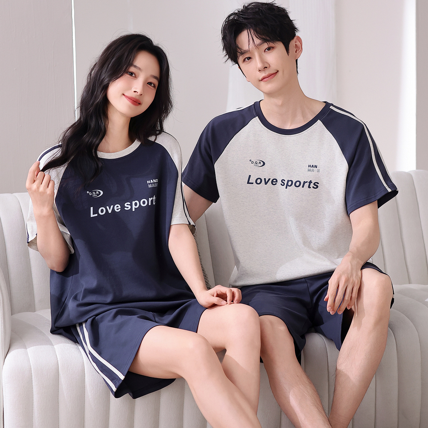 Ins 스타일 만화 반팔 반바지 커플 잠옷 여름 십대 여성 및 남성 느슨한 캐주얼 홈 옷스토어 가기