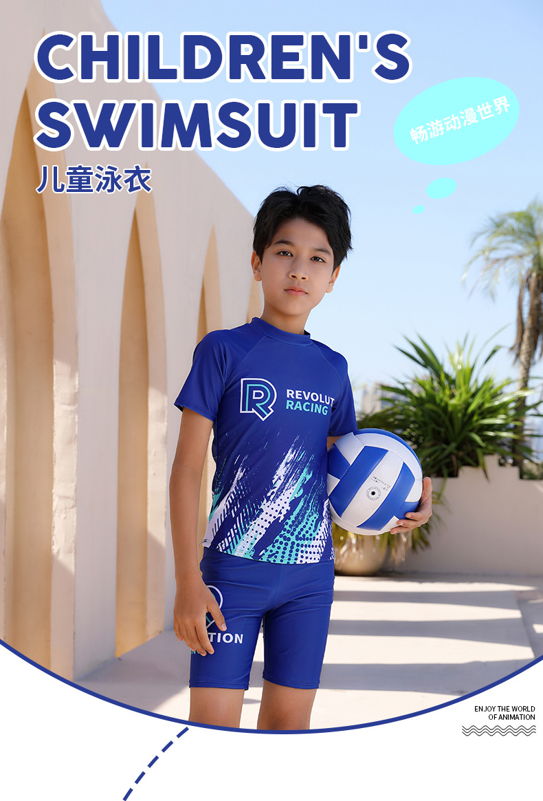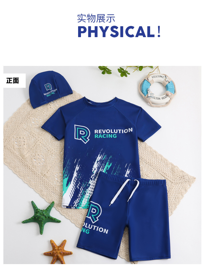 25 새로운 스타일 학생 남성 수영복 스플릿 스포츠 스타일 수영 모자 세트 청소년 큰 소년 수영복스토어 가기