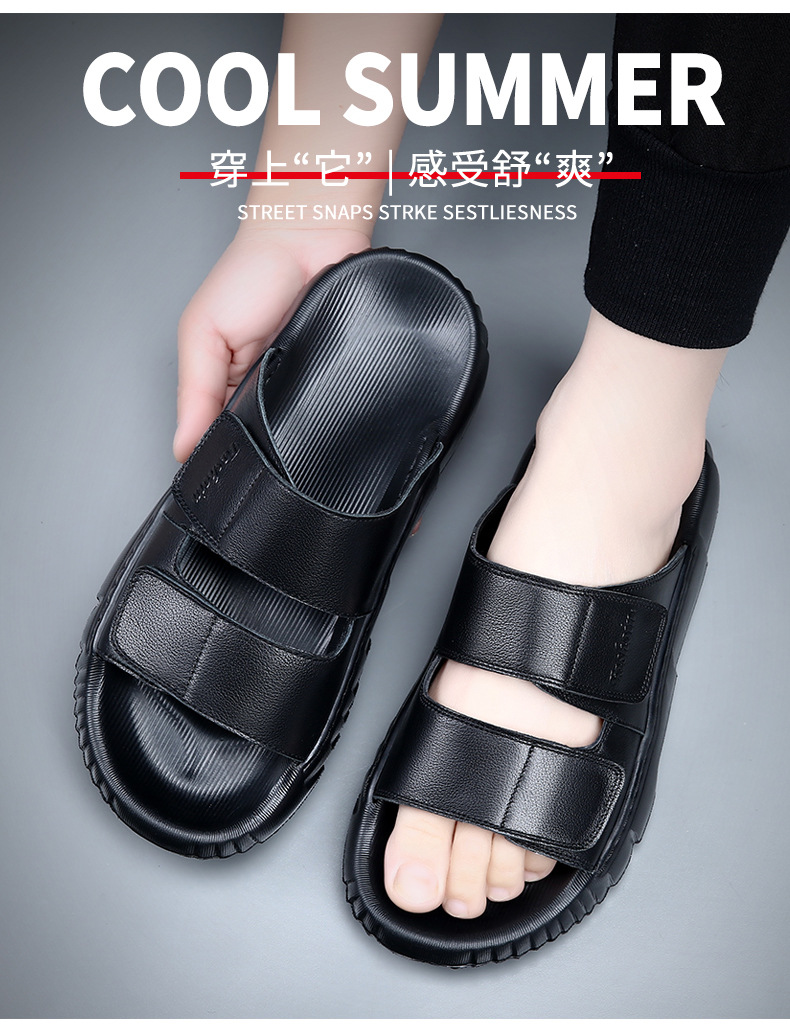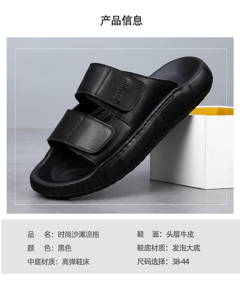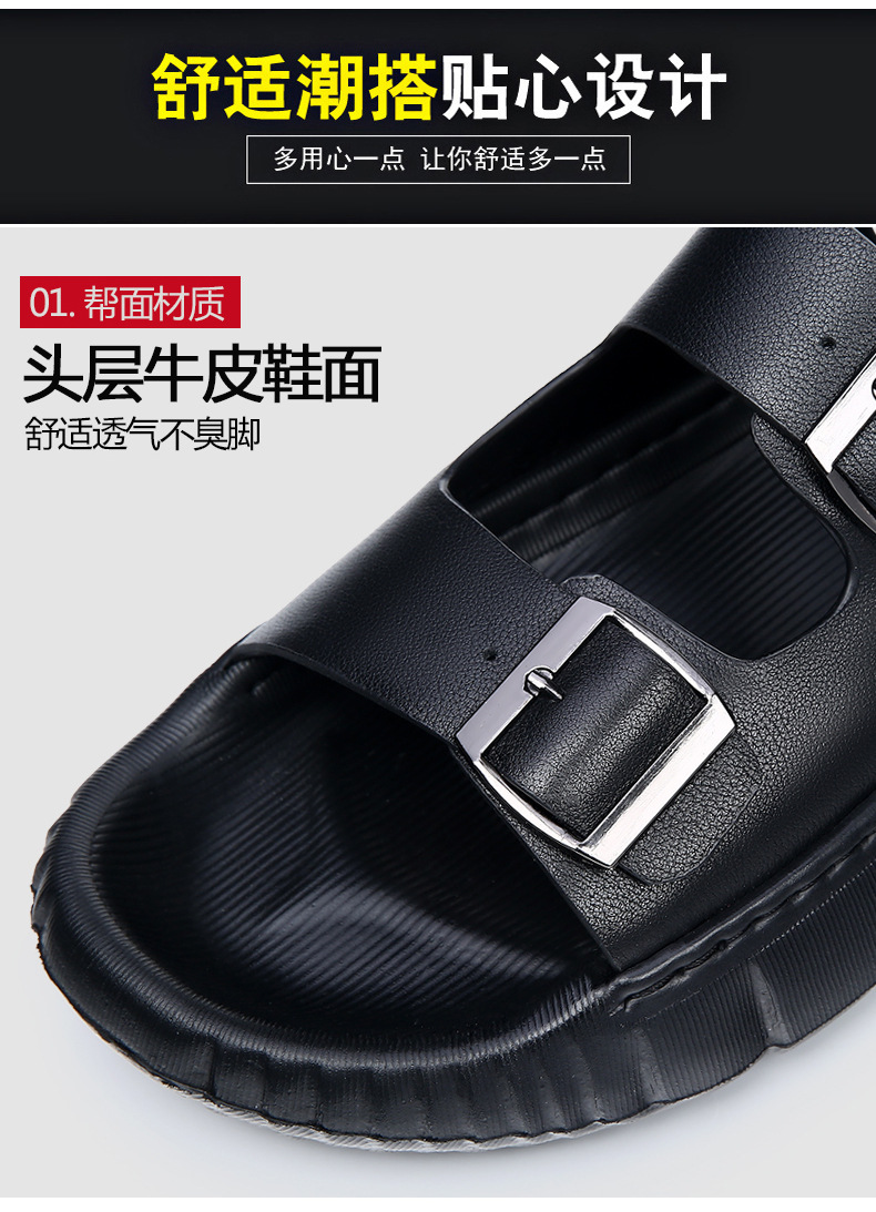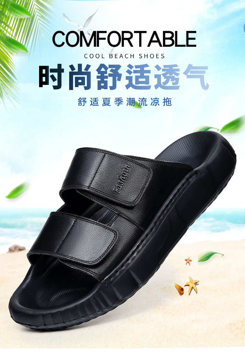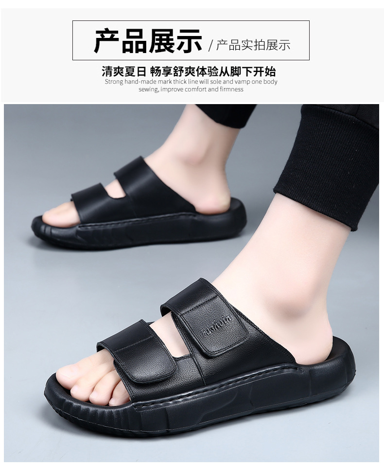 고급 1 층 소 가죽 슬리퍼 남성용 여름 야외 착용 미끄럼 방지 미끄럼 방지 샌들 남성용 두꺼운 밑창 EVA 실내 샌들스토어 가기