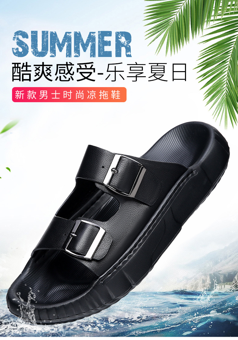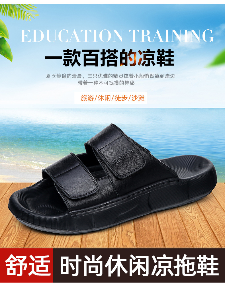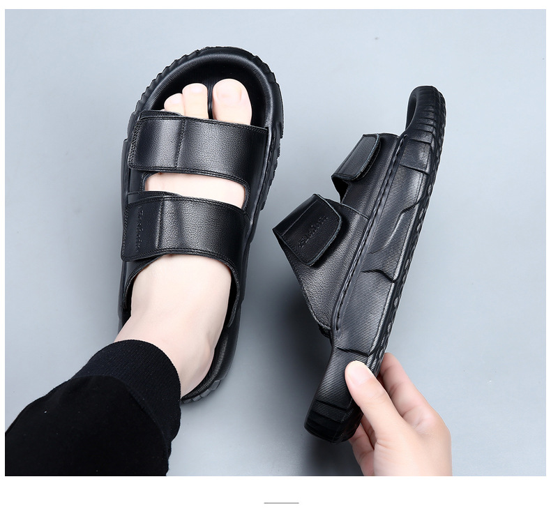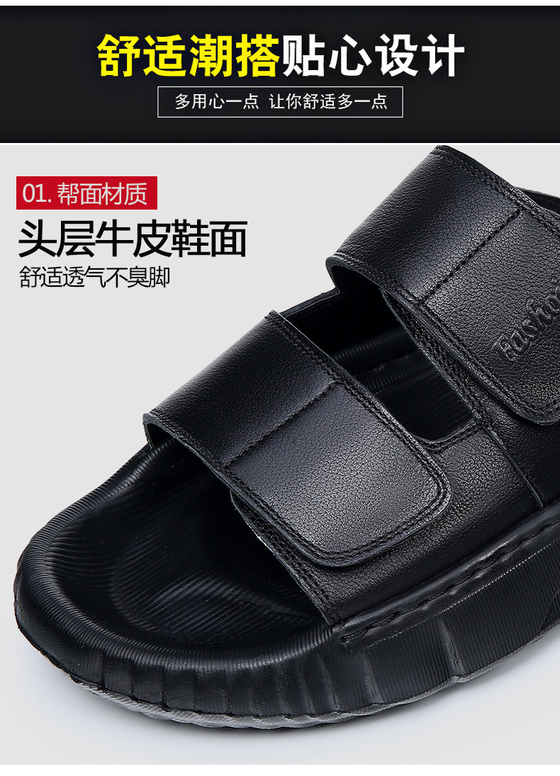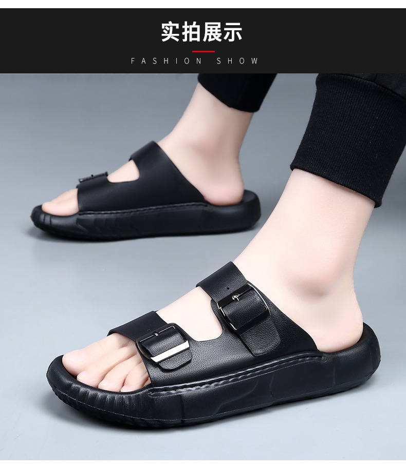 고급 1 층 소 가죽 슬리퍼 남성용 여름 야외 착용 미끄럼 방지 미끄럼 방지 샌들 남성용 두꺼운 밑창 EVA 실내 샌들스토어 가기