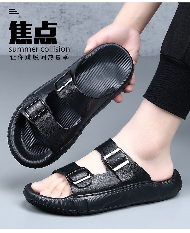 고급 1 층 소 가죽 슬리퍼 남성용 여름 야외 착용 미끄럼 방지 미끄럼 방지 샌들 남성용 두꺼운 밑창 EVA 실내 샌들
