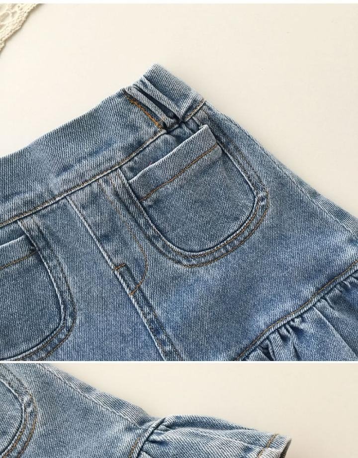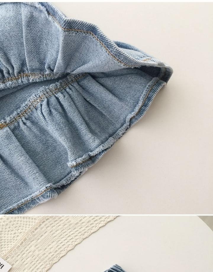 여자 여름 데님 세트 아기의 절반 길이 데님 스커트 어린이 힙합 서양식 피쉬 스커트 티셔츠 투피스 세트스토어 가기