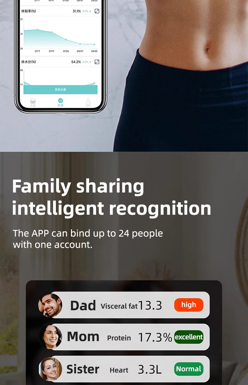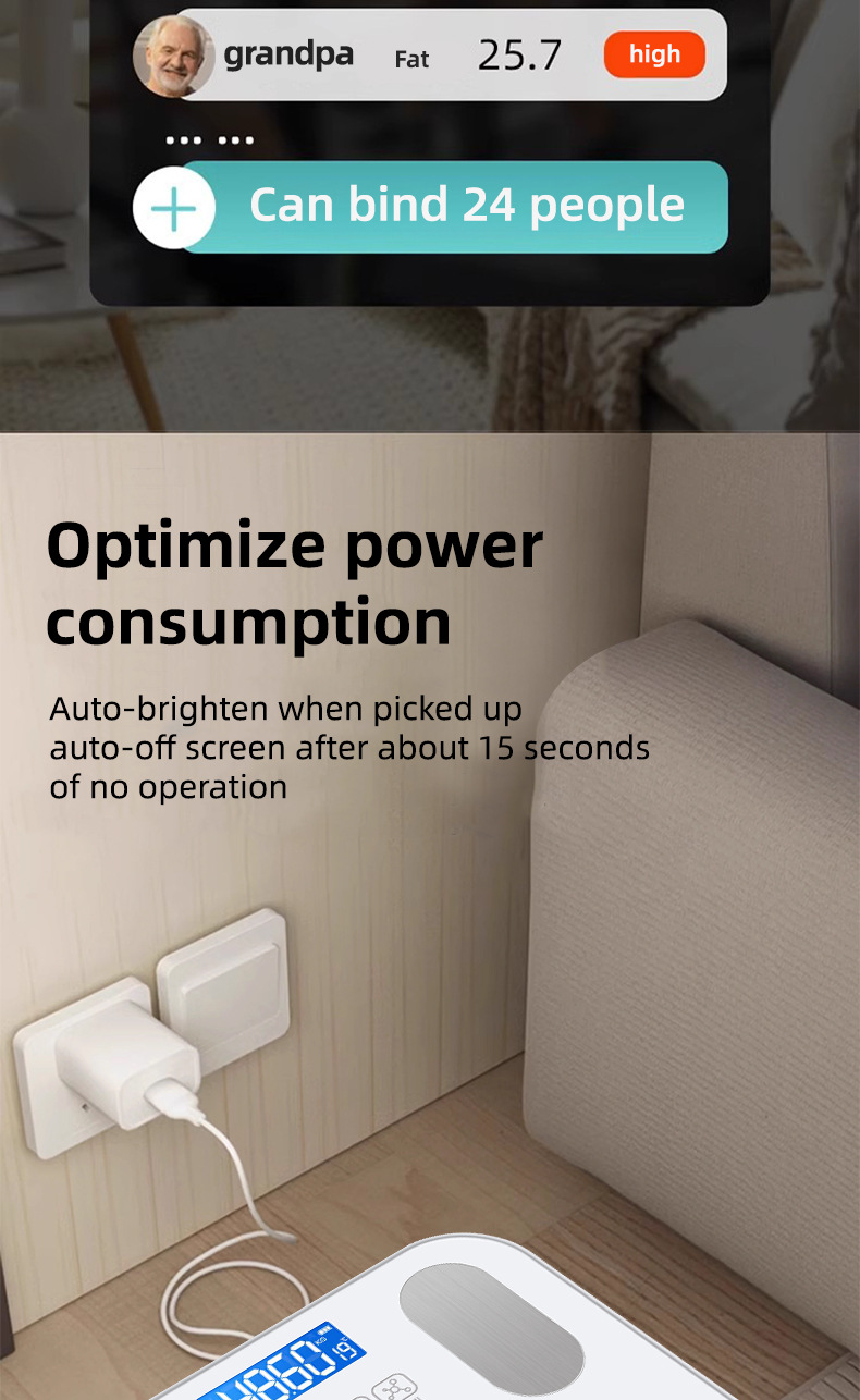 • Mist White Yihui [블루투스 체지방 측정기 영어 버전] 충전식 모델