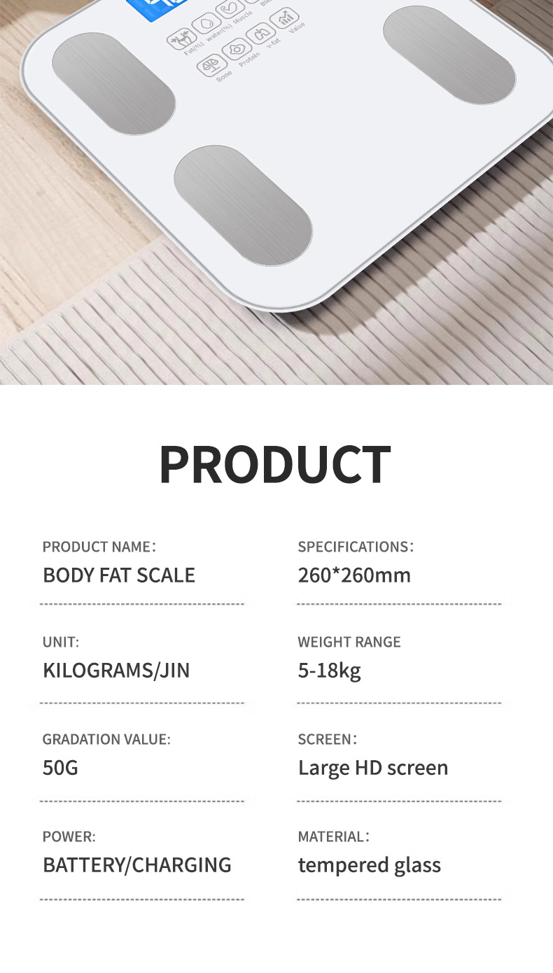 • Mist White Yihui [블루투스 체지방 측정기 영어 버전] 배터리 모델