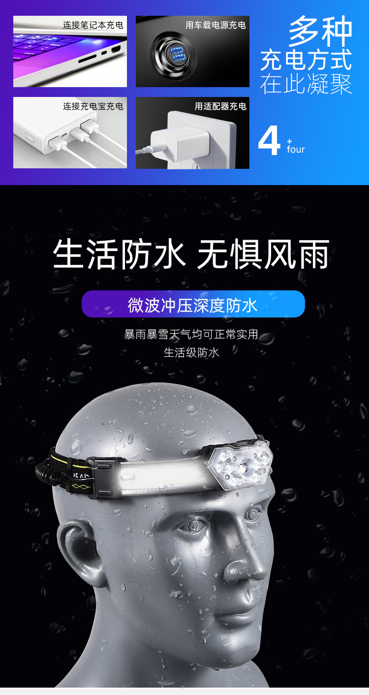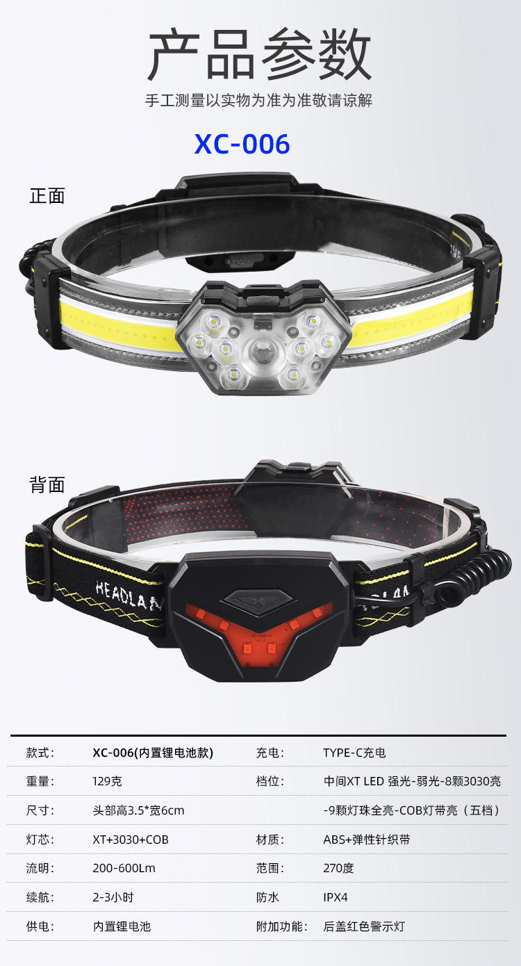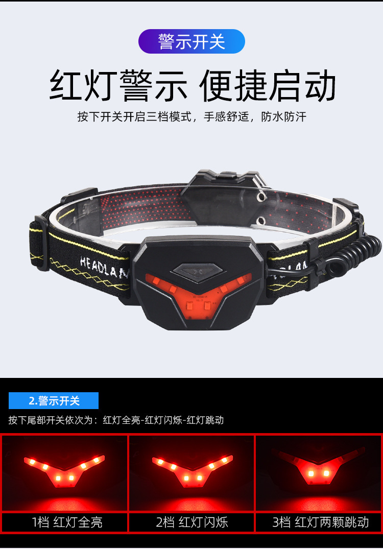 국경을 넘는 신형 헤드램프, 적색 경고등, 충전식 LED 헤드램프, 9구 9LED, 캠핑 및 야간 낚시용 조명스토어 가기
