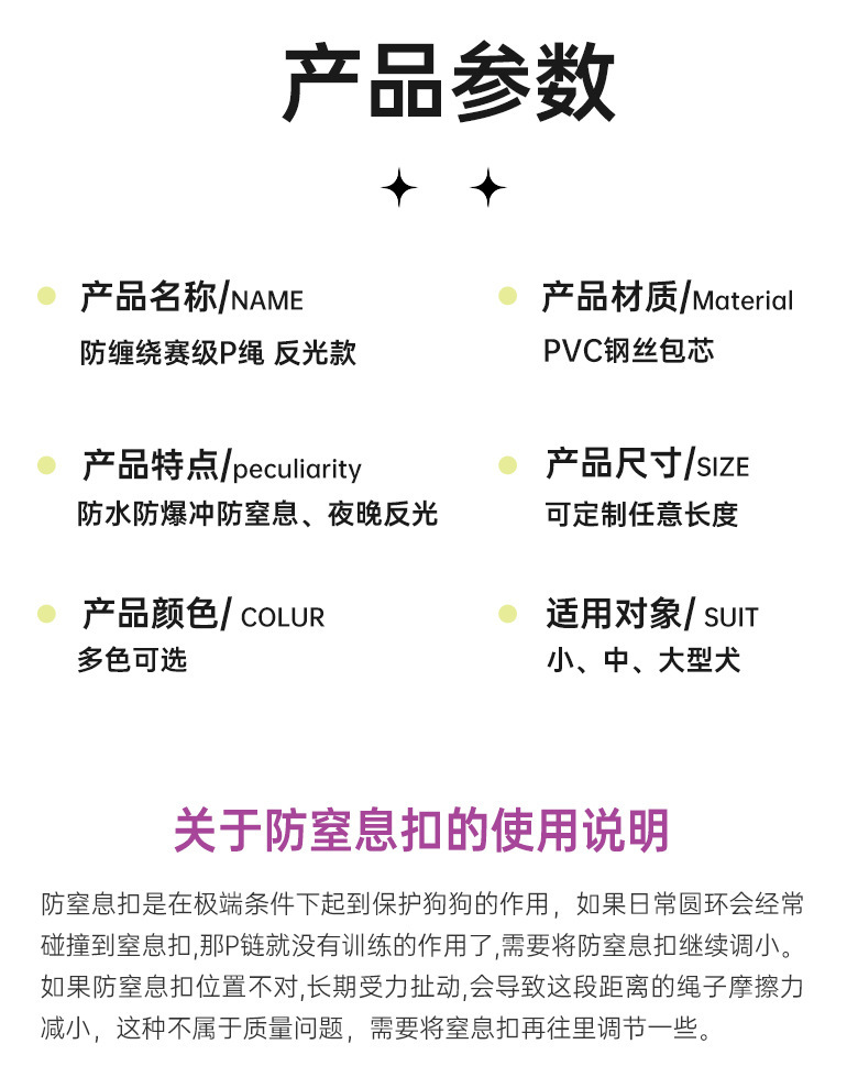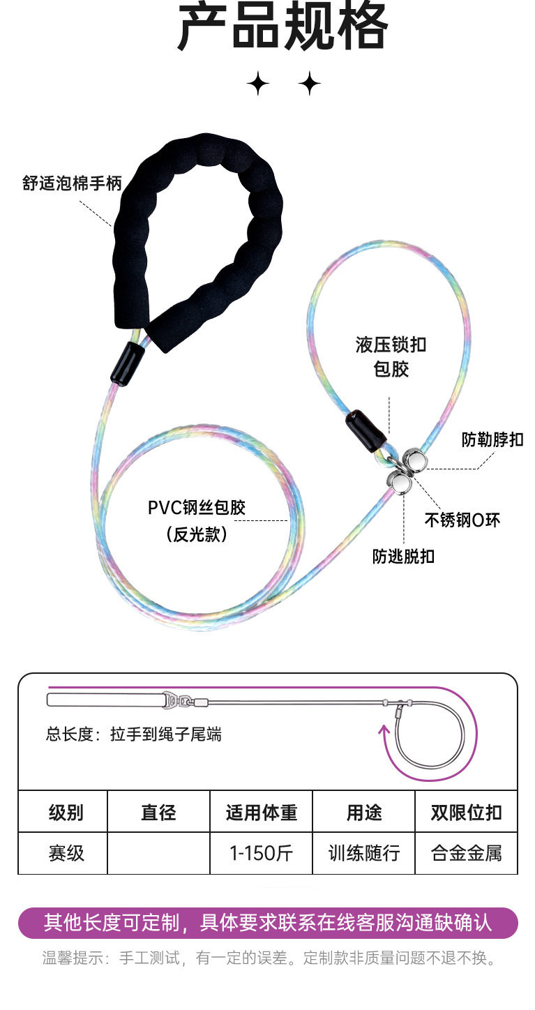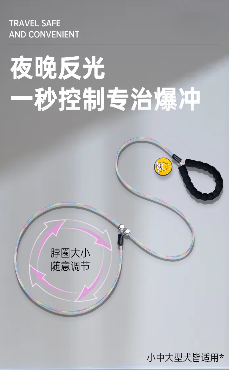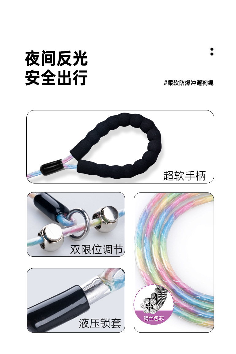 엄선된 경기용 P 로프 야광 강아지 목줄, 폭발 방지 산책용 강철 와이어 로프, 중형견 훈련용 목줄, 목 조임 방지스토어 가기