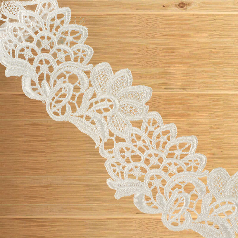 새로운 4cm 폭 프랑스 수용성 폴리 에스터 실크 단일 측면 바코드 로리타 웨딩 드레스 액세서리 흰색 DIY 여성 레이스