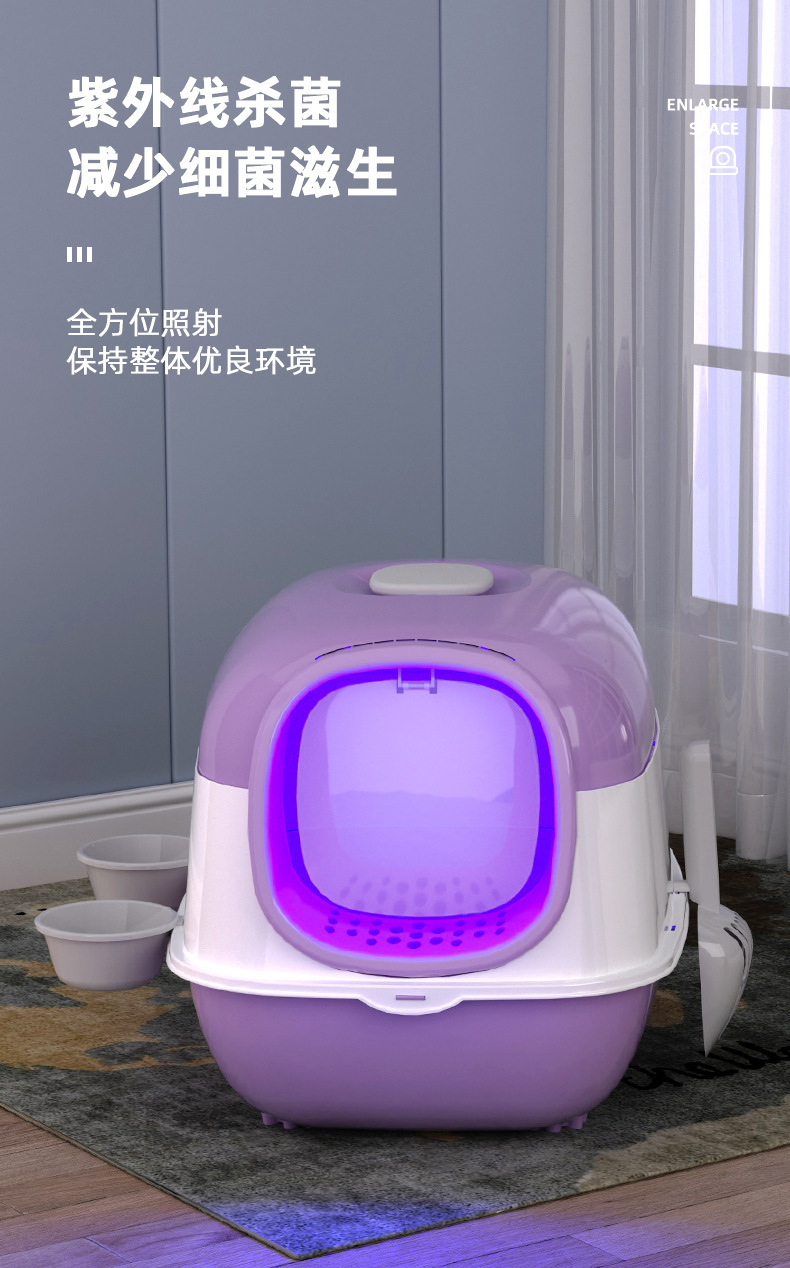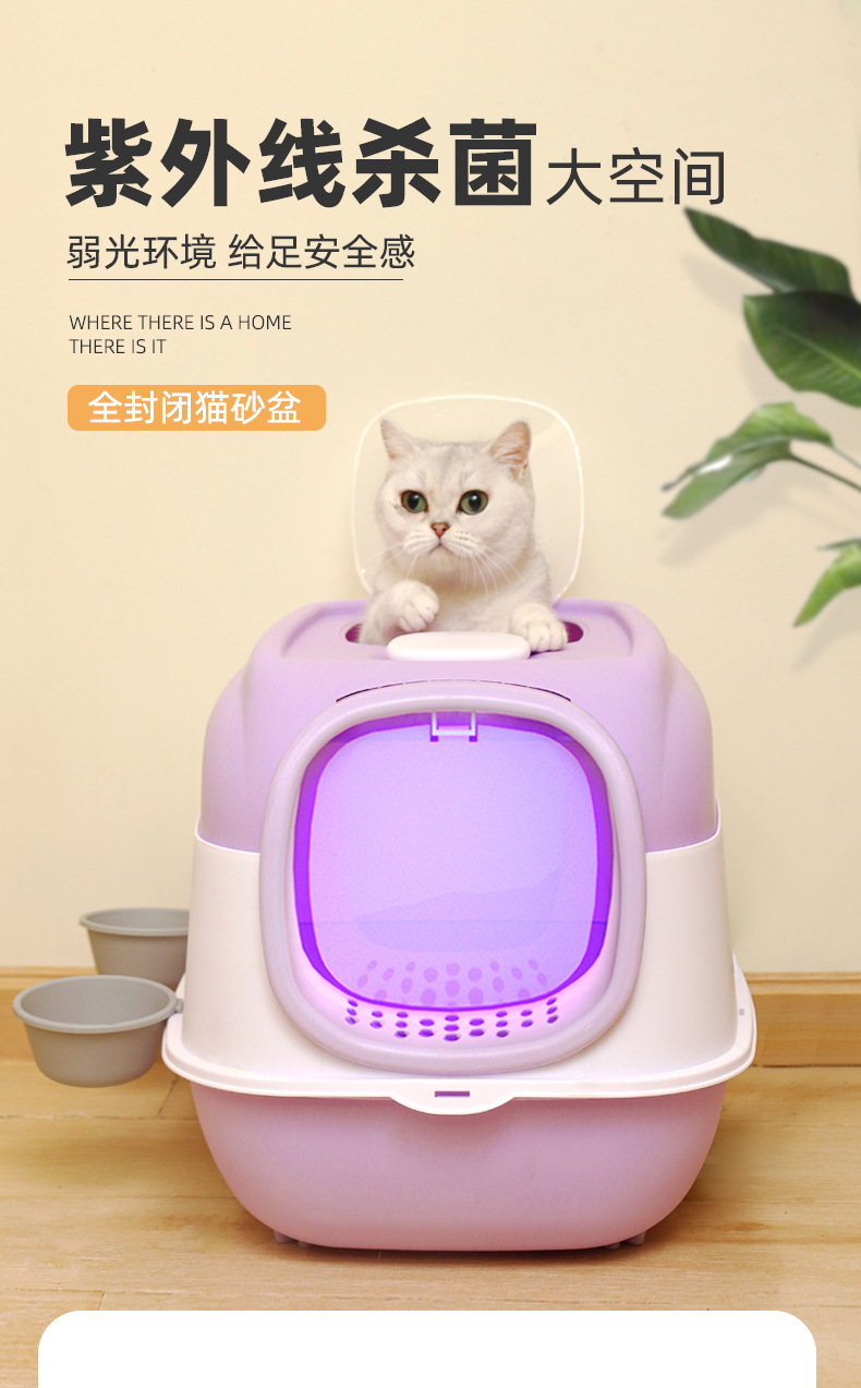 완전 밀폐형 고양이 화장실, 살균 및 탈취 고양이 화장실, 대형, 휴대 방지, 특대형 애완동물 용품 도매, 살균스토어 가기