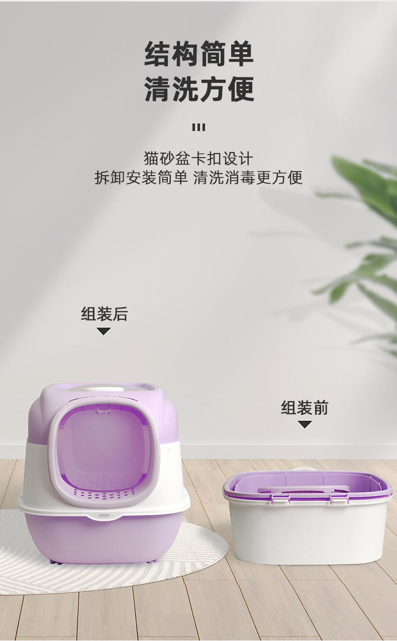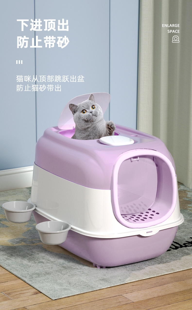 완전 밀폐형 고양이 화장실, 살균 및 탈취 고양이 화장실, 대형, 휴대 방지, 특대형 애완동물 용품 도매, 살균