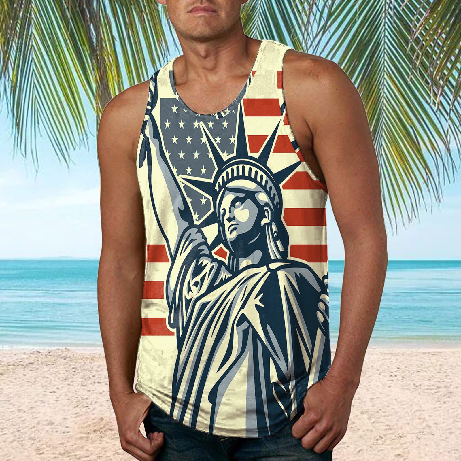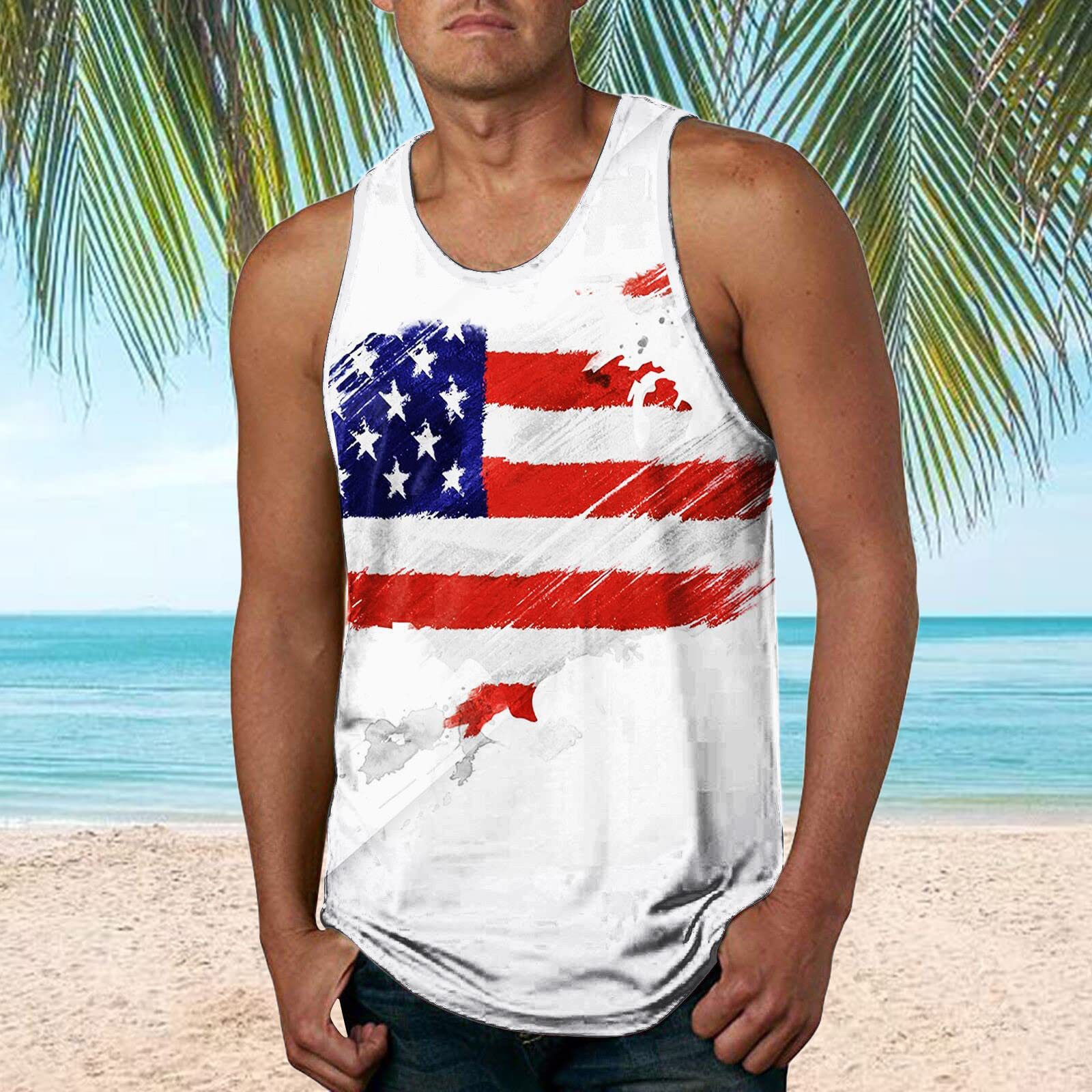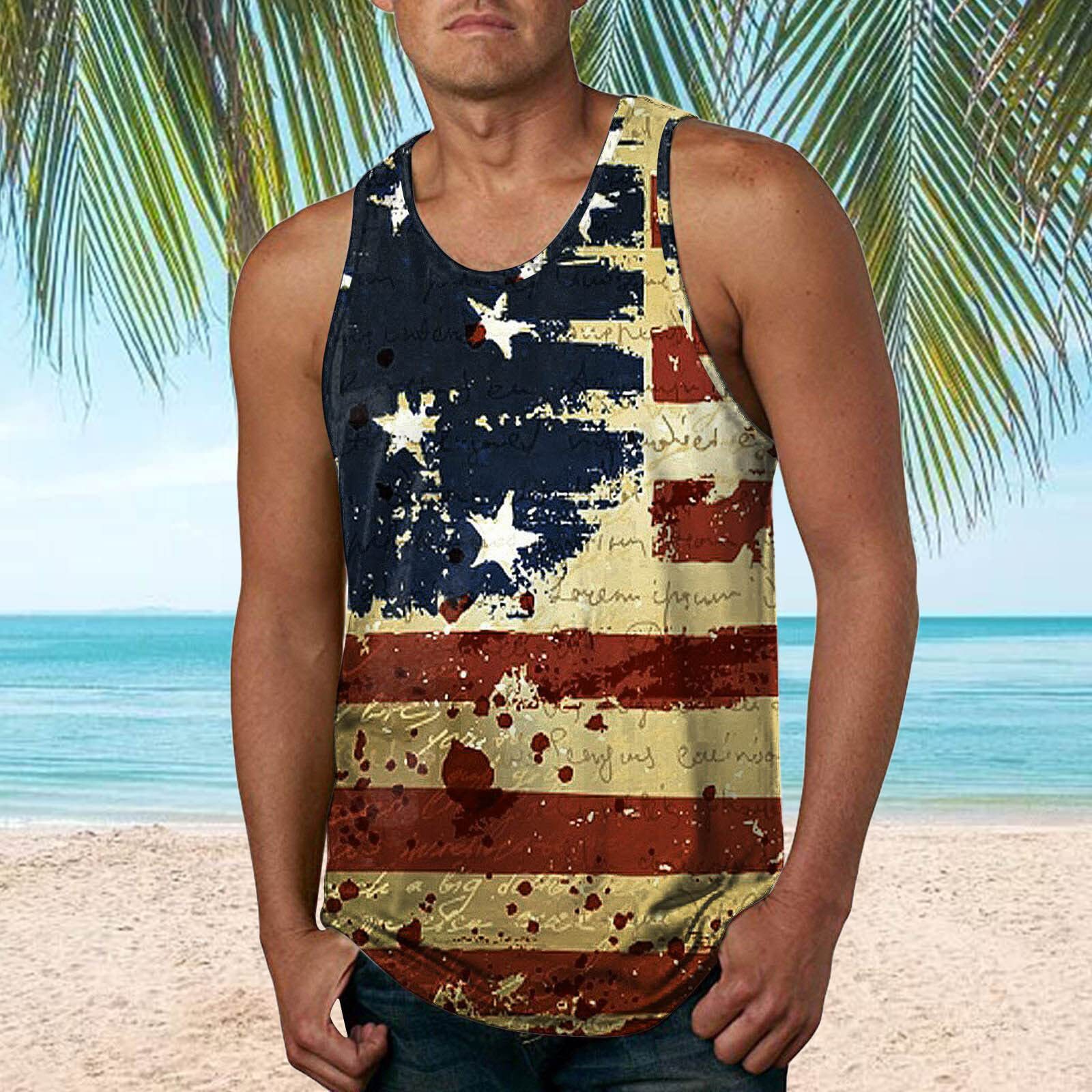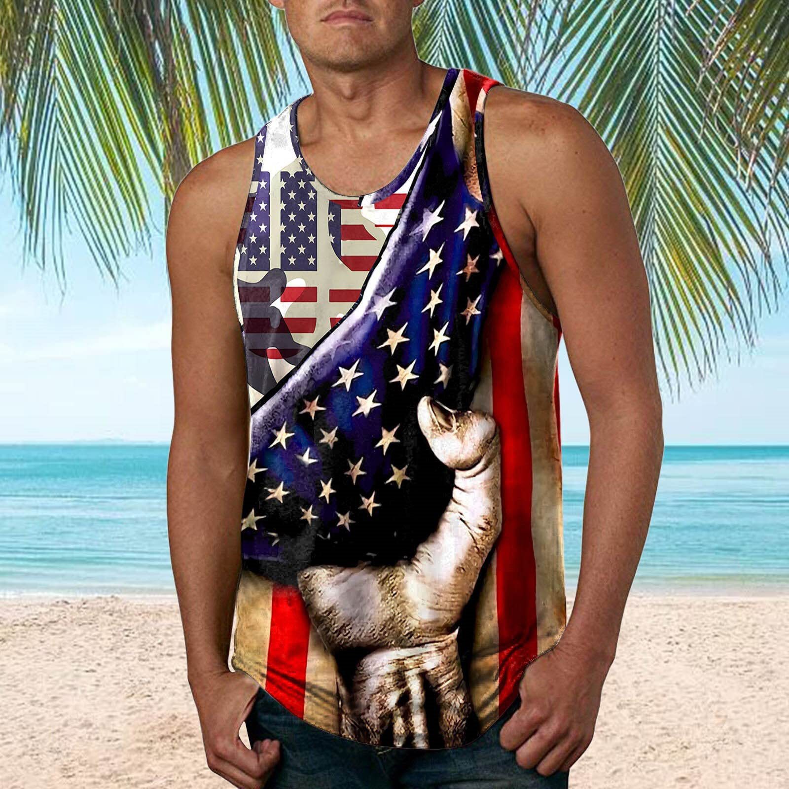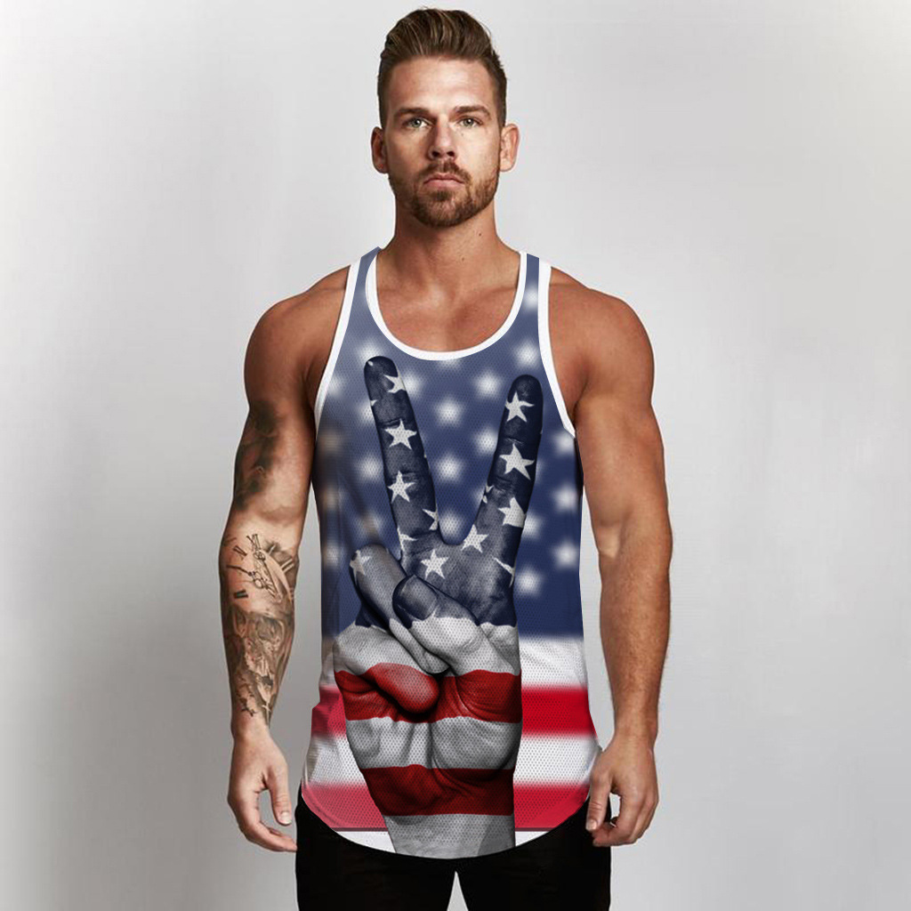 국경 간 유럽 코드 AliExpress 청소년 3d 인쇄 조끼 남자 스포츠 탑 자유의 여신상 독립 기념일 플래그스토어 가기