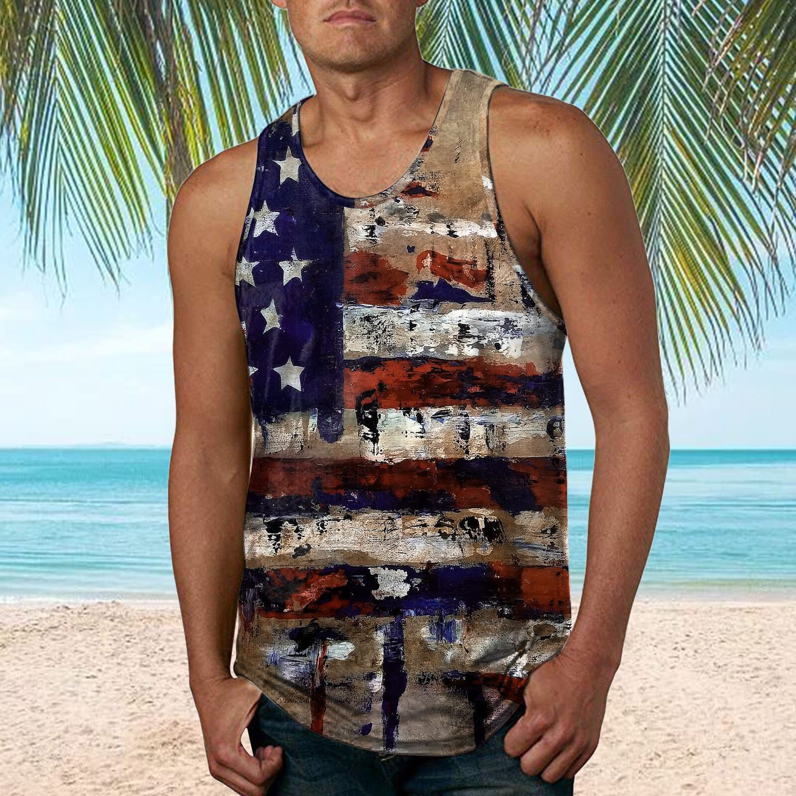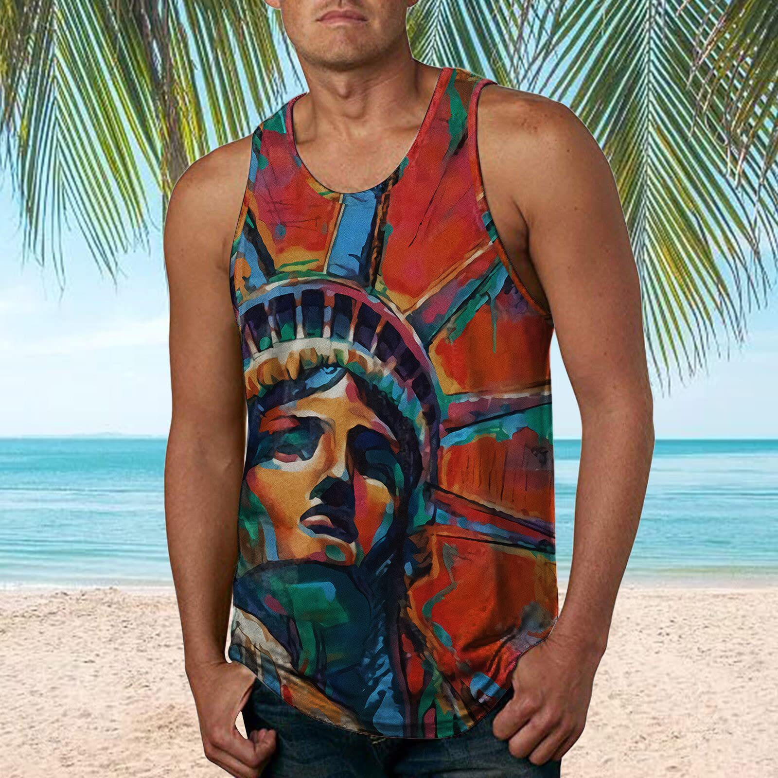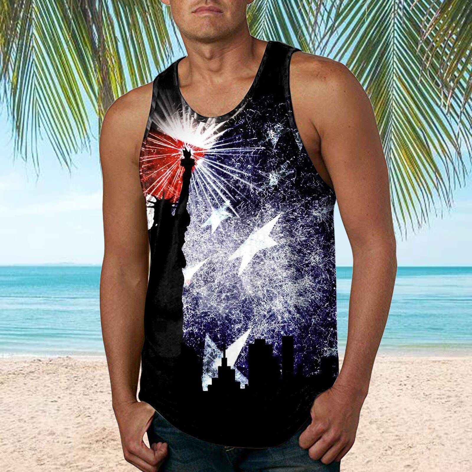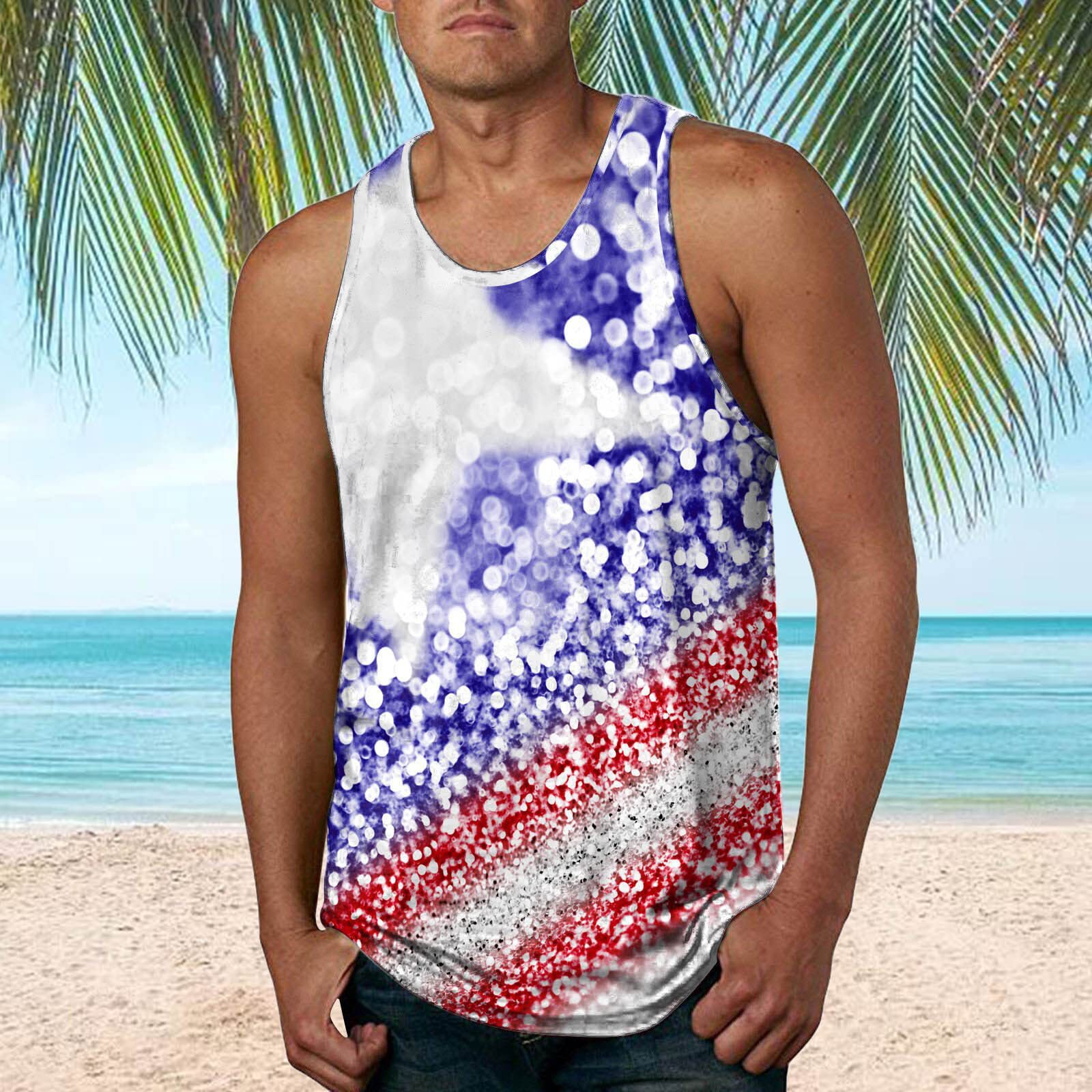 국경 간 유럽 코드 AliExpress 청소년 3d 인쇄 조끼 남자 스포츠 탑 자유의 여신상 독립 기념일 플래그스토어 가기