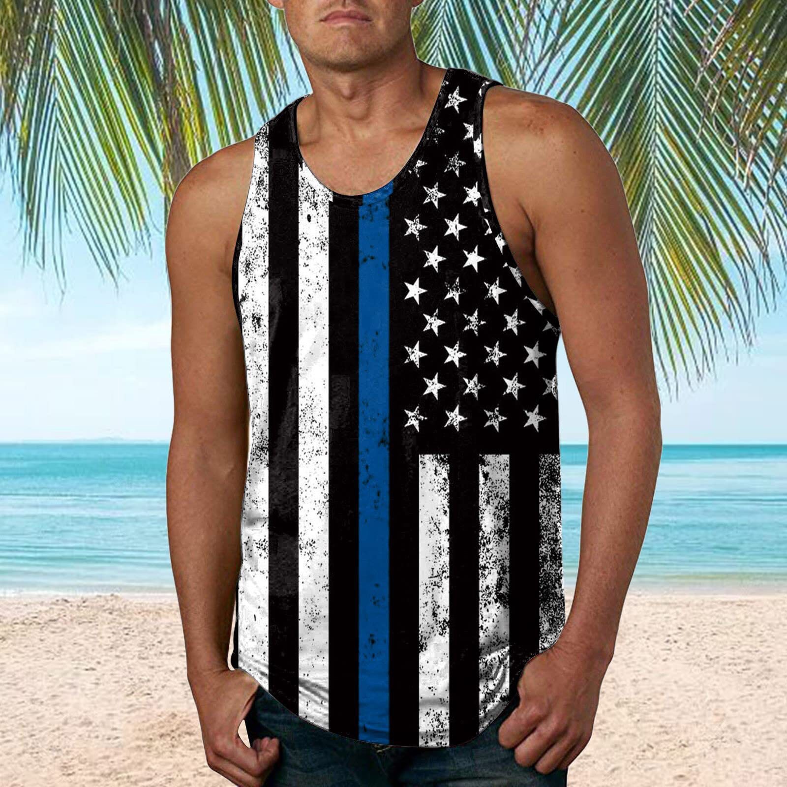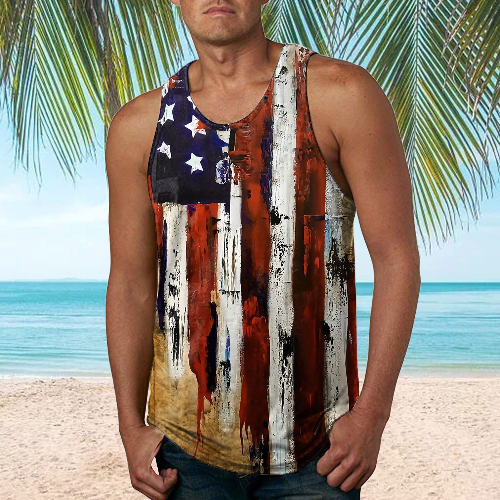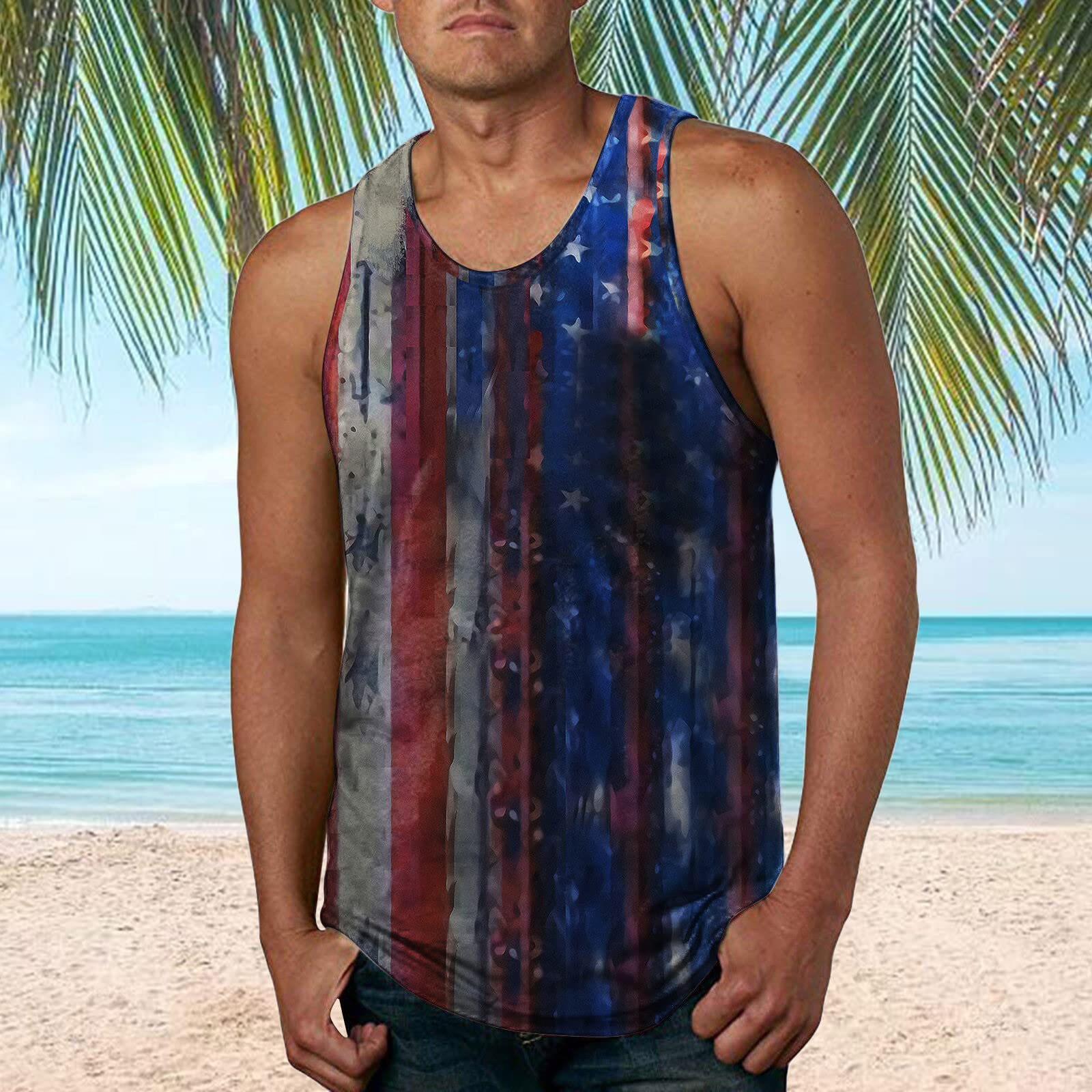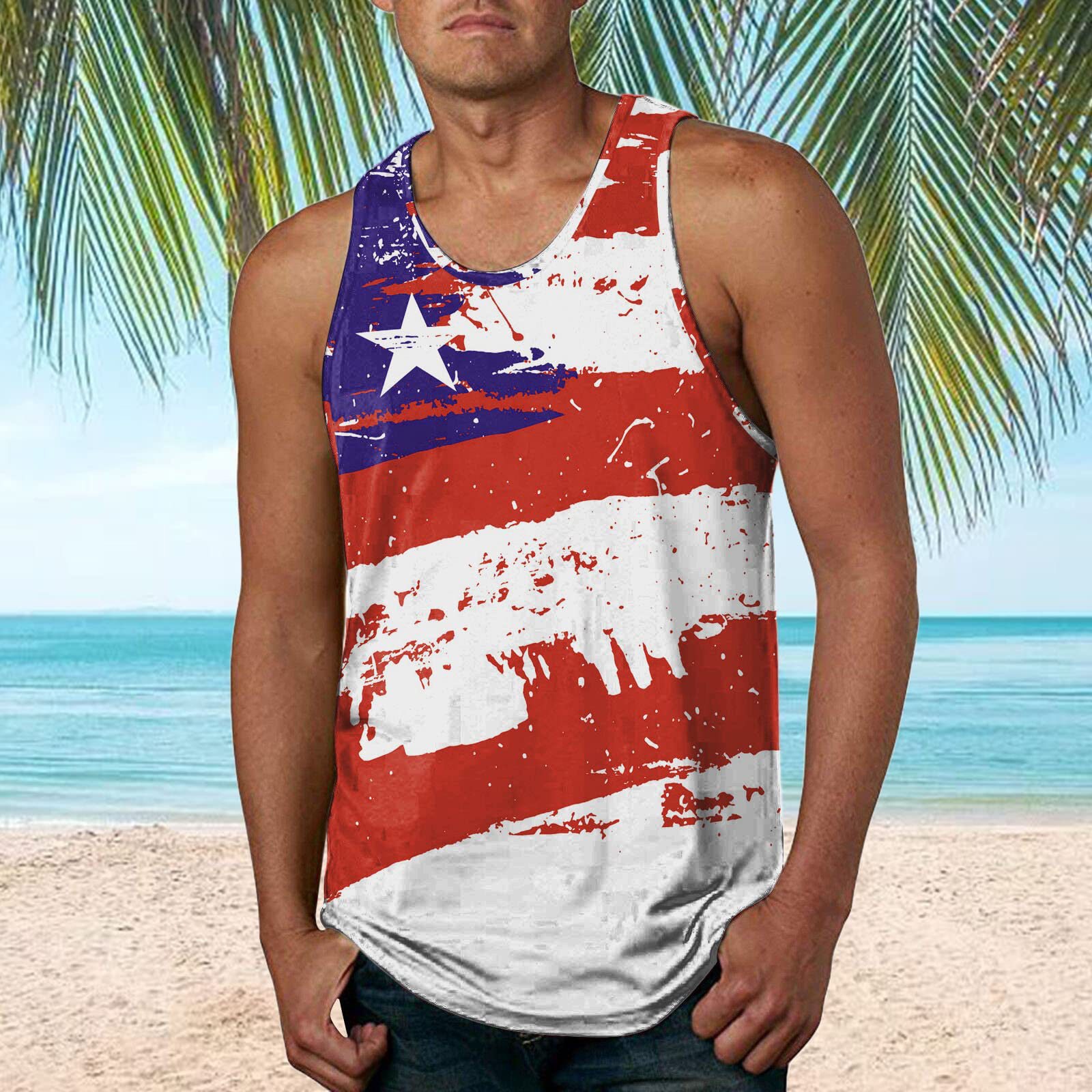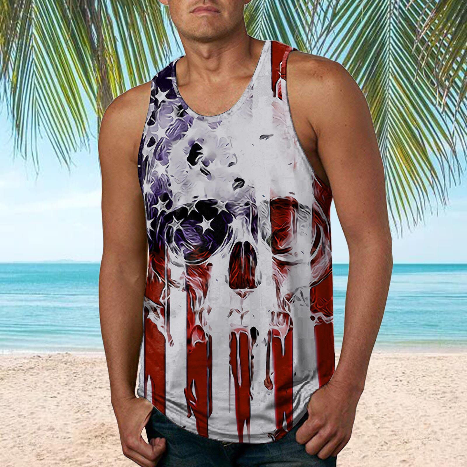 국경 간 유럽 코드 AliExpress 청소년 3d 인쇄 조끼 남자 스포츠 탑 자유의 여신상 독립 기념일 플래그스토어 가기