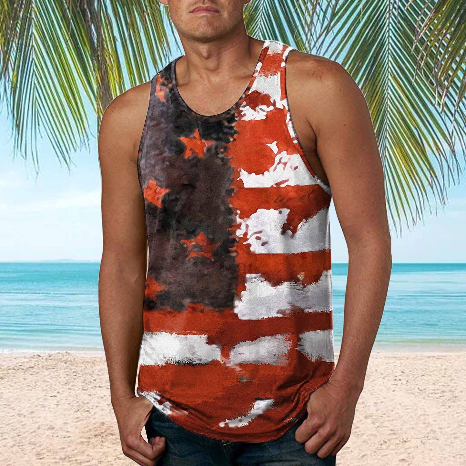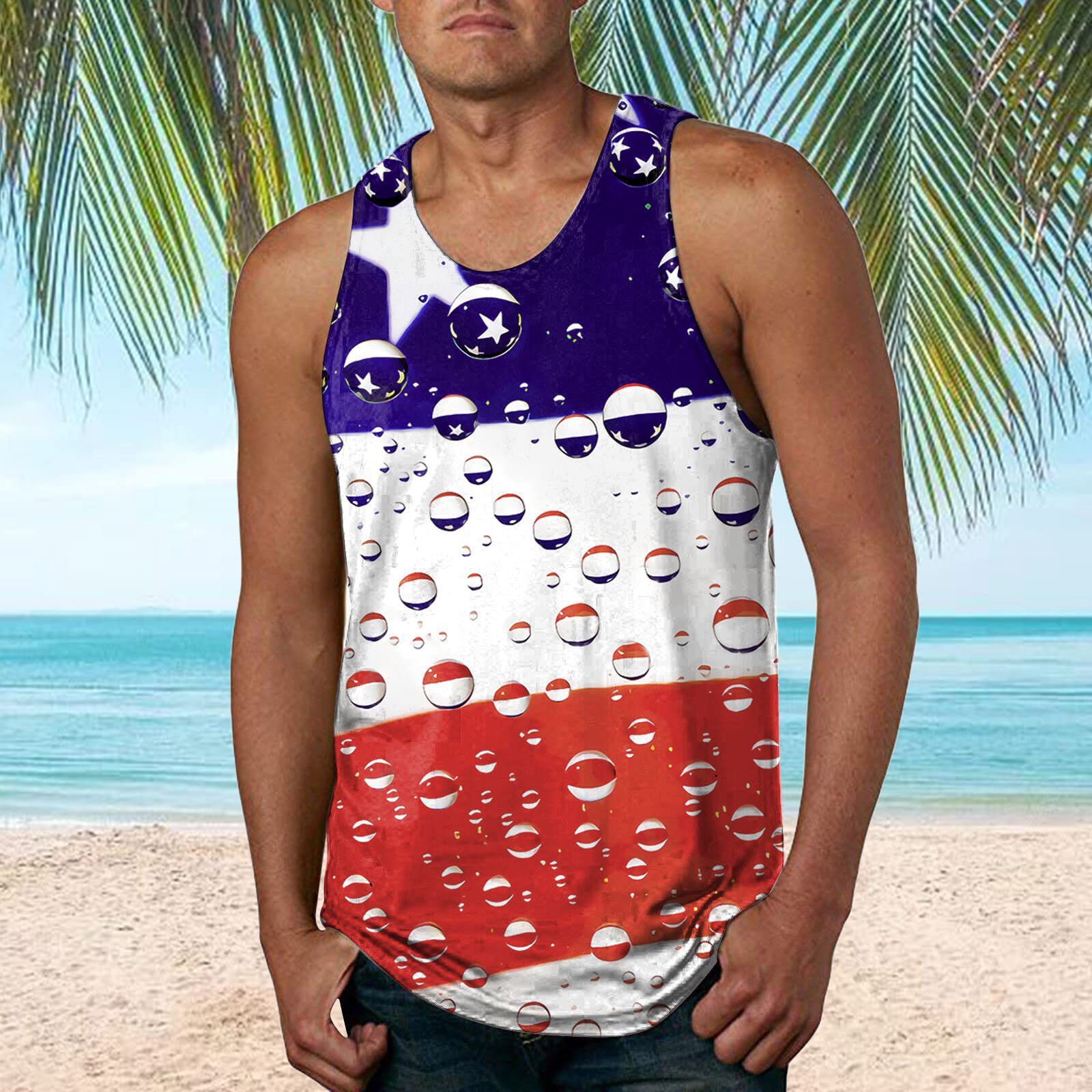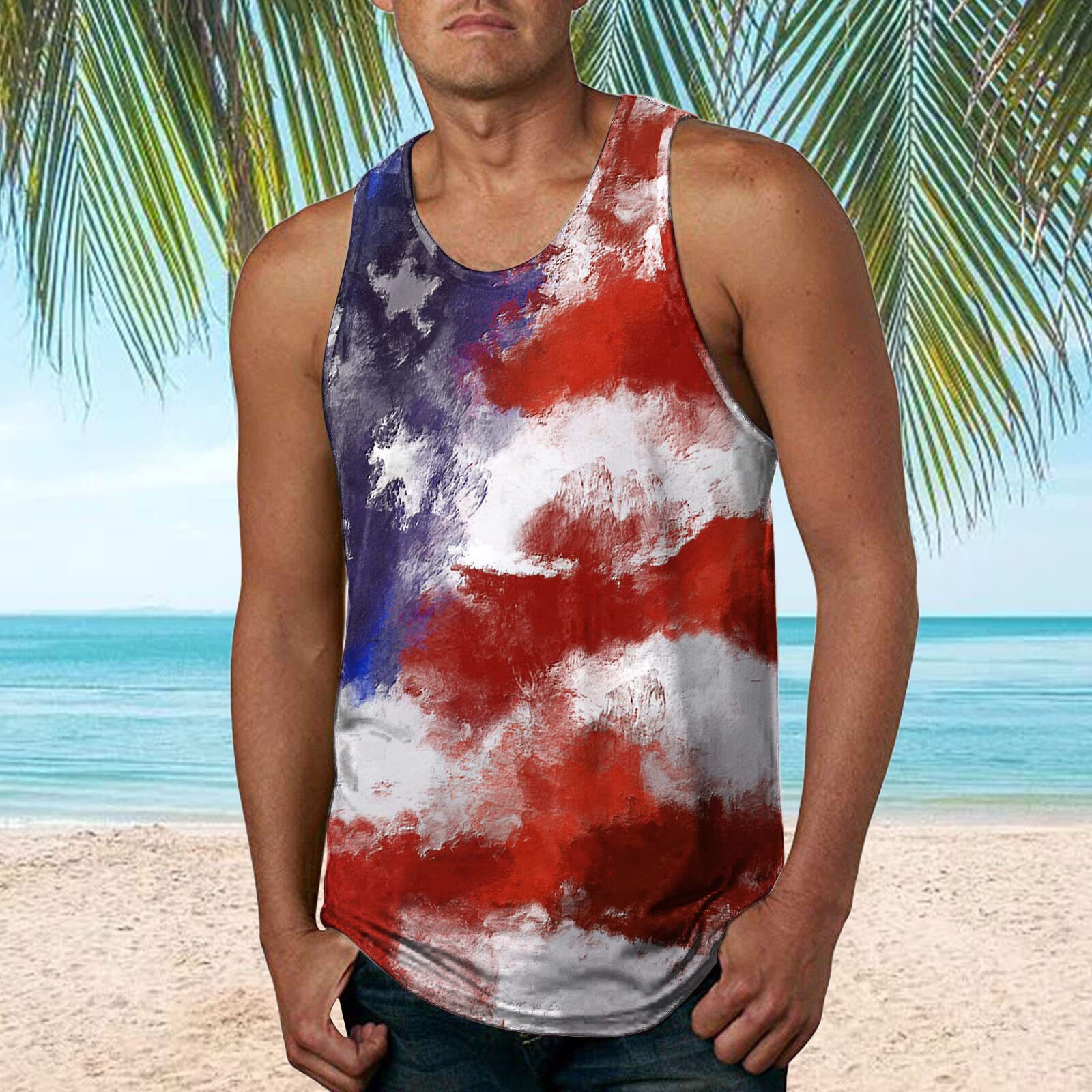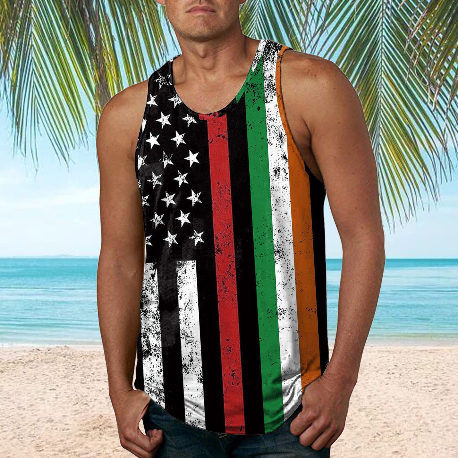 국경 간 유럽 코드 AliExpress 청소년 3d 인쇄 조끼 남자 스포츠 탑 자유의 여신상 독립 기념일 플래그스토어 가기